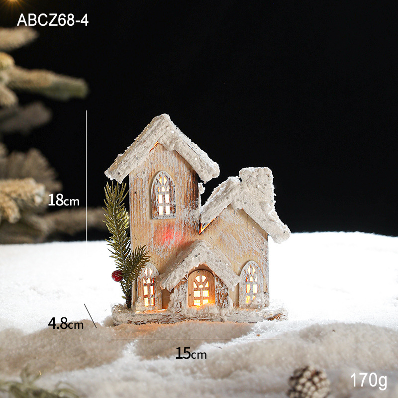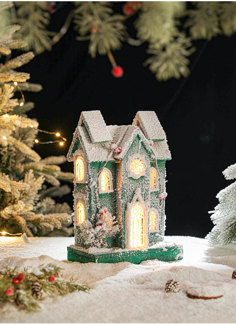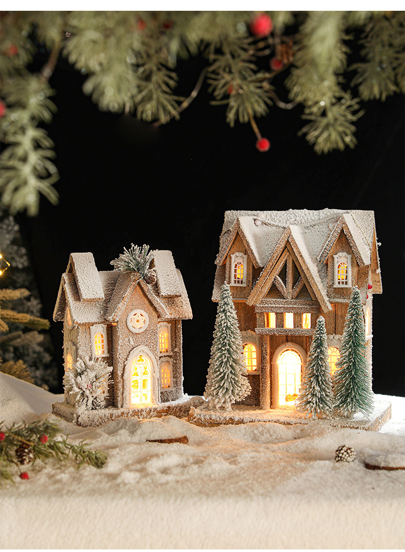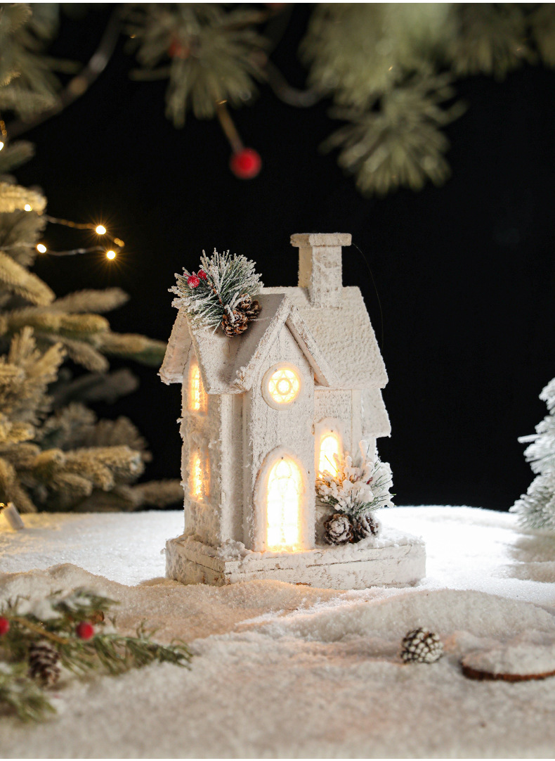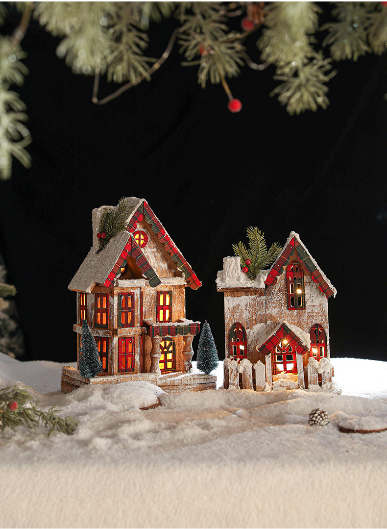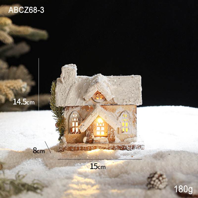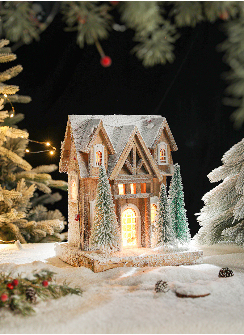 Christmas Chalet Wooden Glow Snow Landscape Snow House Chalet Ornament European Vintage Log Snow House