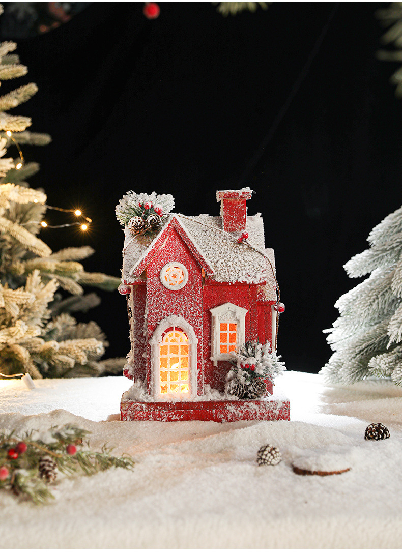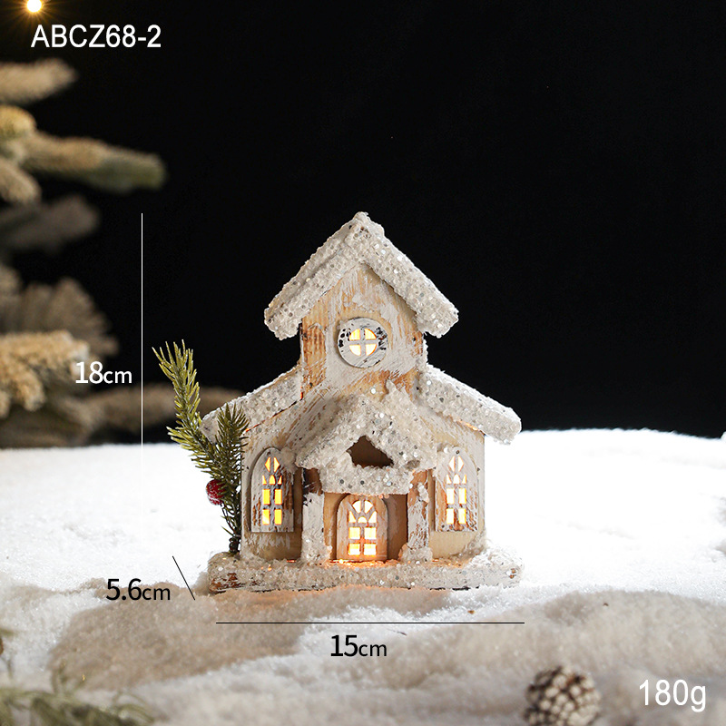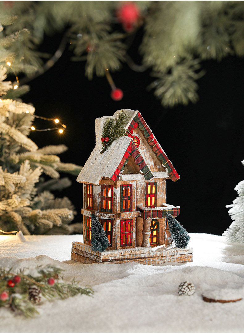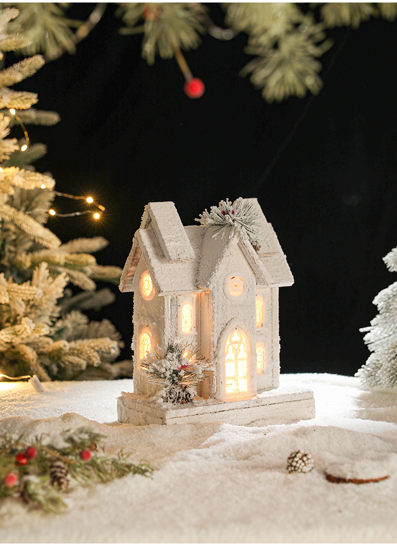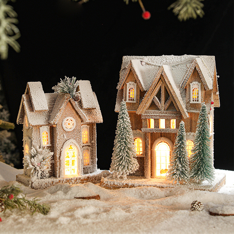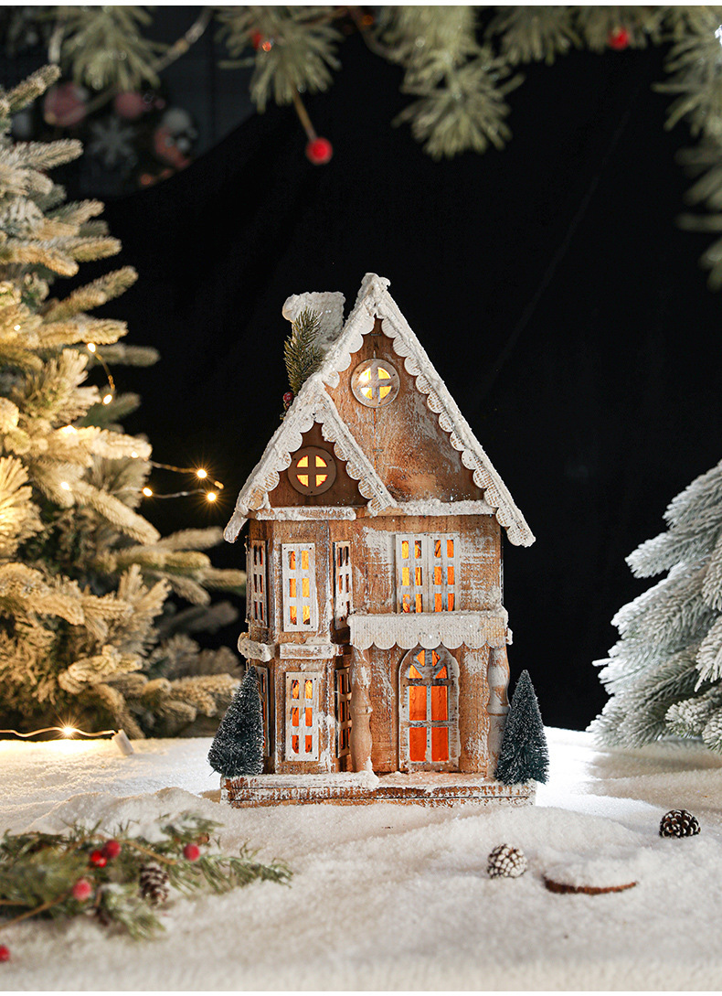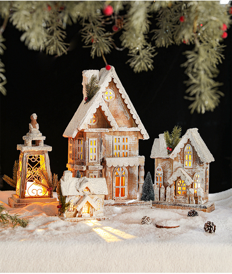 Christmas Chalet Wooden Glow Snow Landscape Snow House Chalet Ornament European Vintage Log Snow House