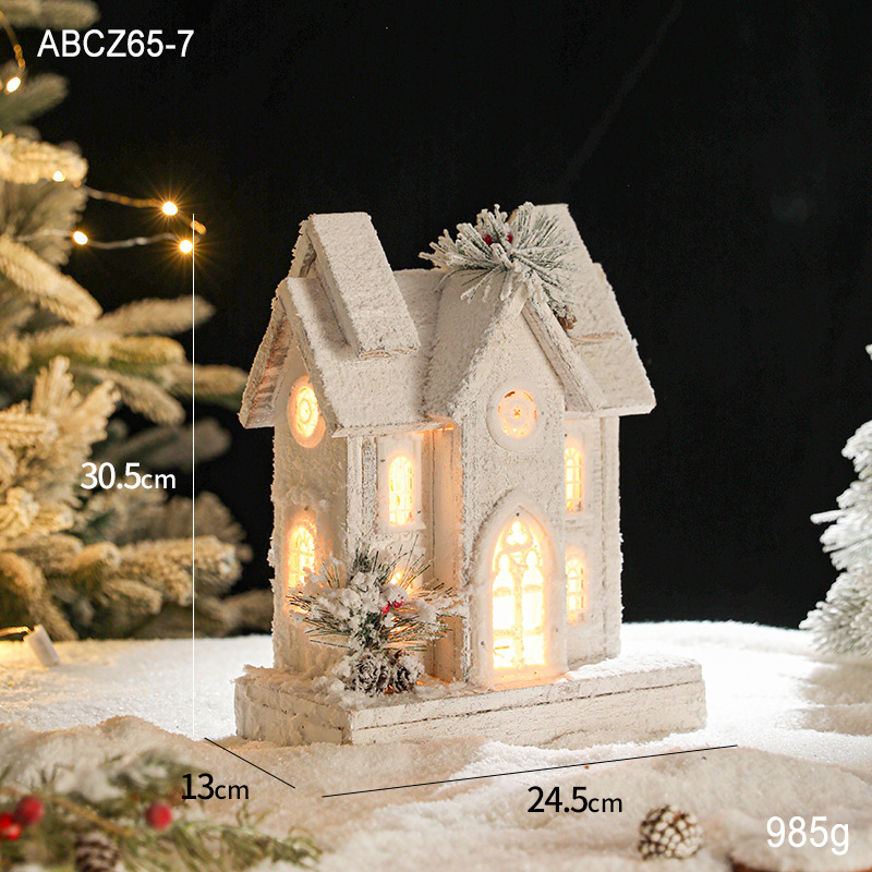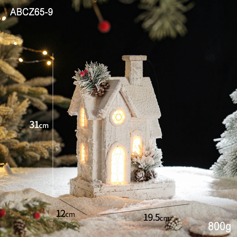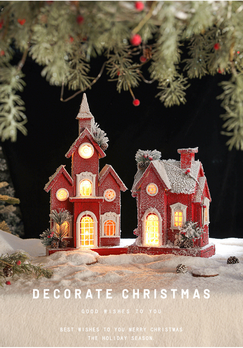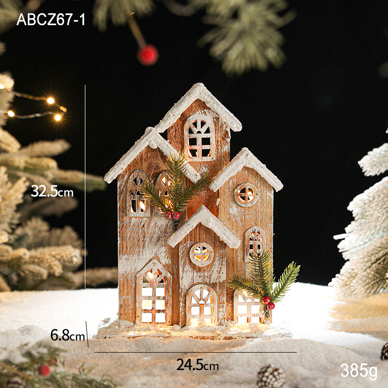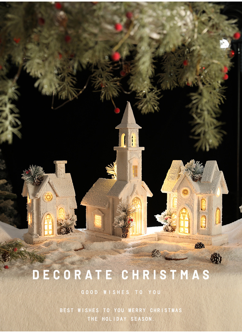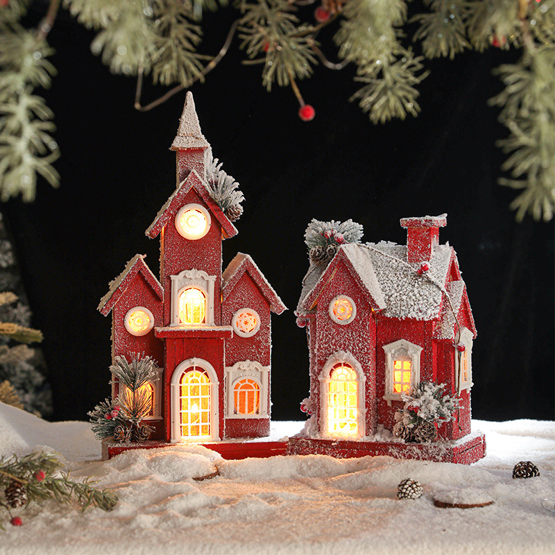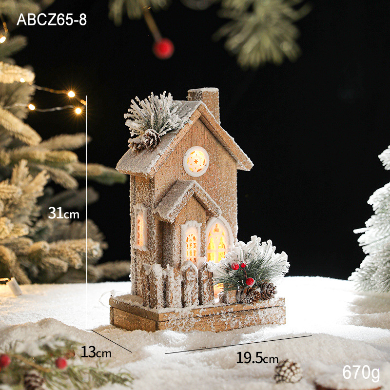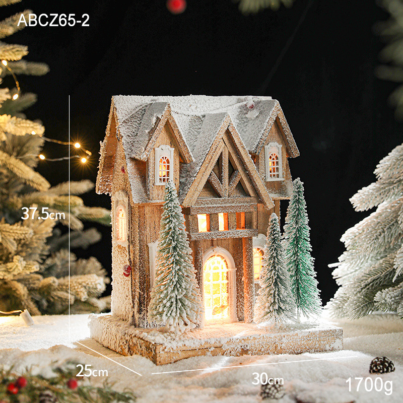 Christmas Chalet Wooden Glow Snow Landscape Snow House Chalet Ornament European Vintage Log Snow House