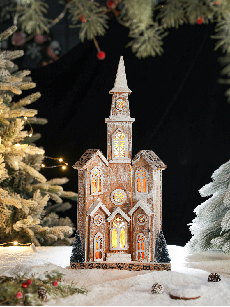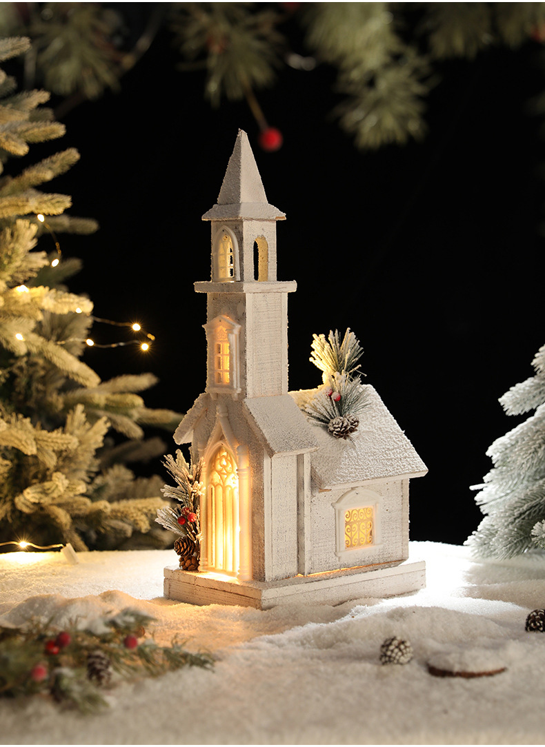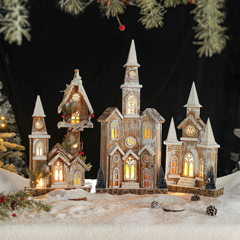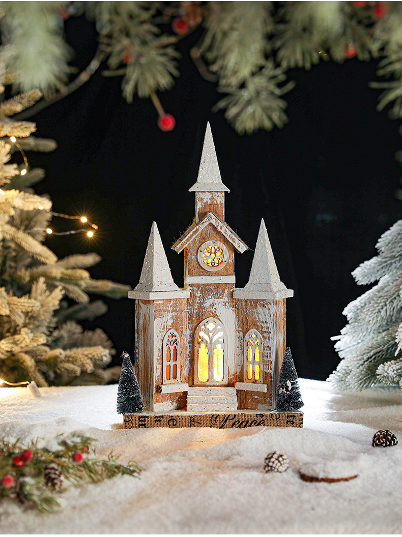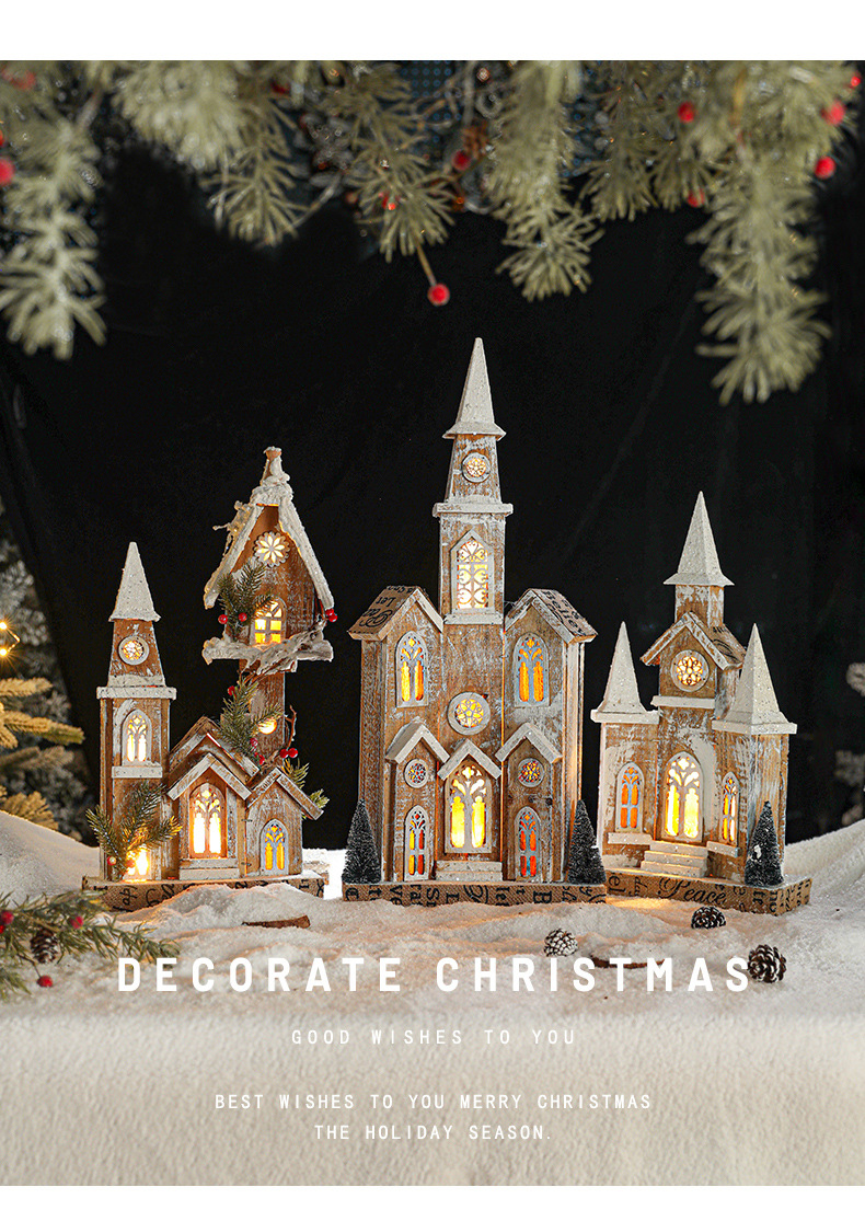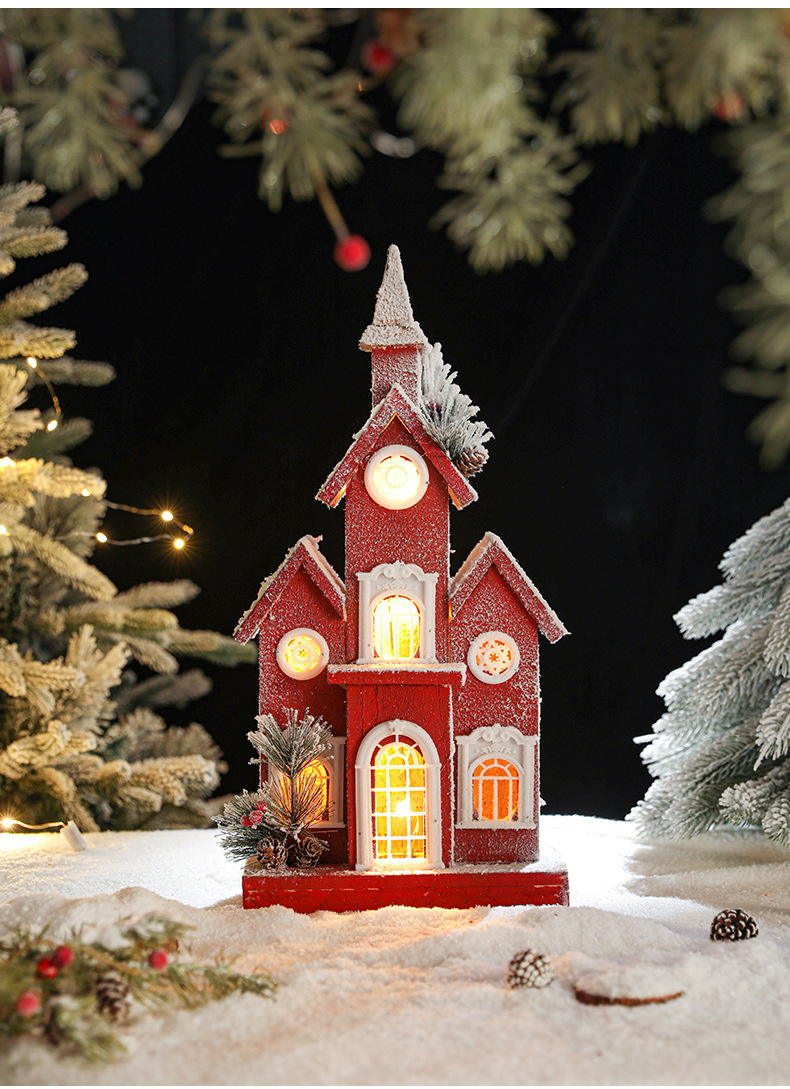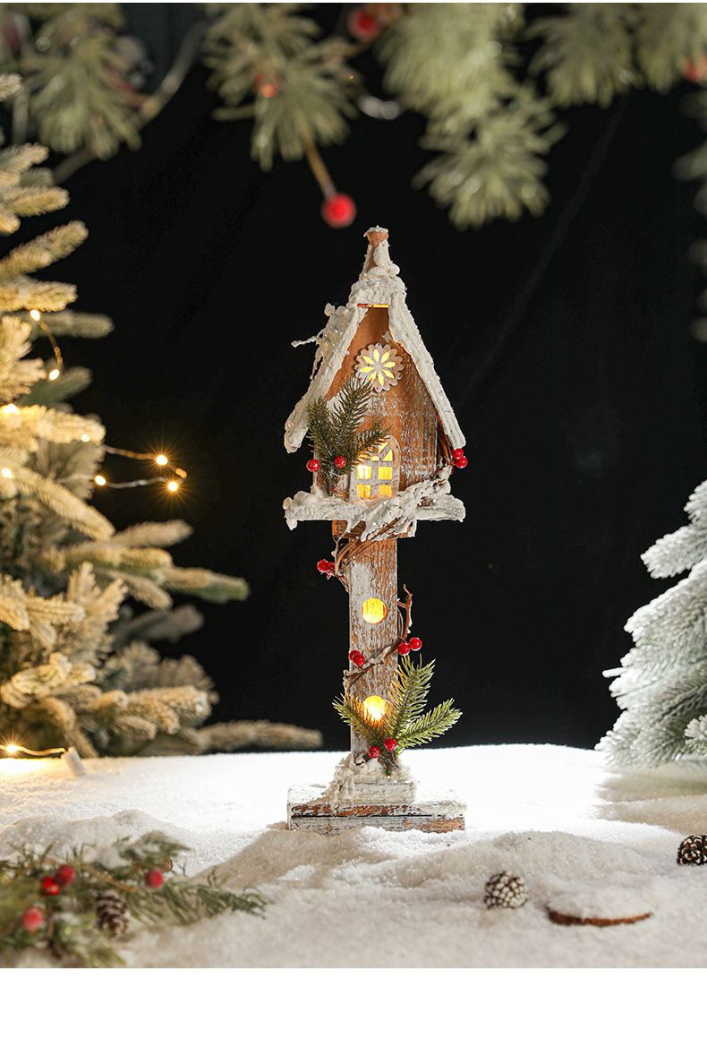 Christmas Chalet Wooden Glow Snow Landscape Snow House Chalet Ornament European Vintage Log Snow House
