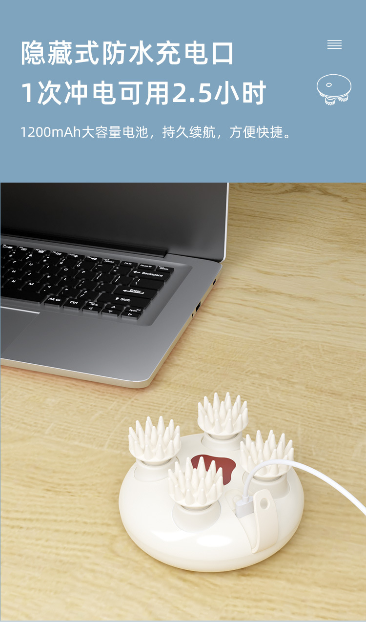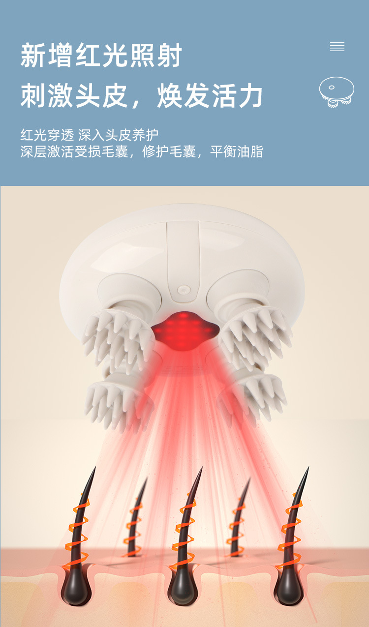 Cross-border explosive head massager, rechargeable waterproof scalp massager, red light irradiation, head massager, massage claws