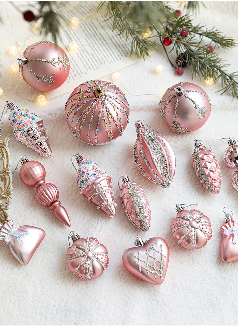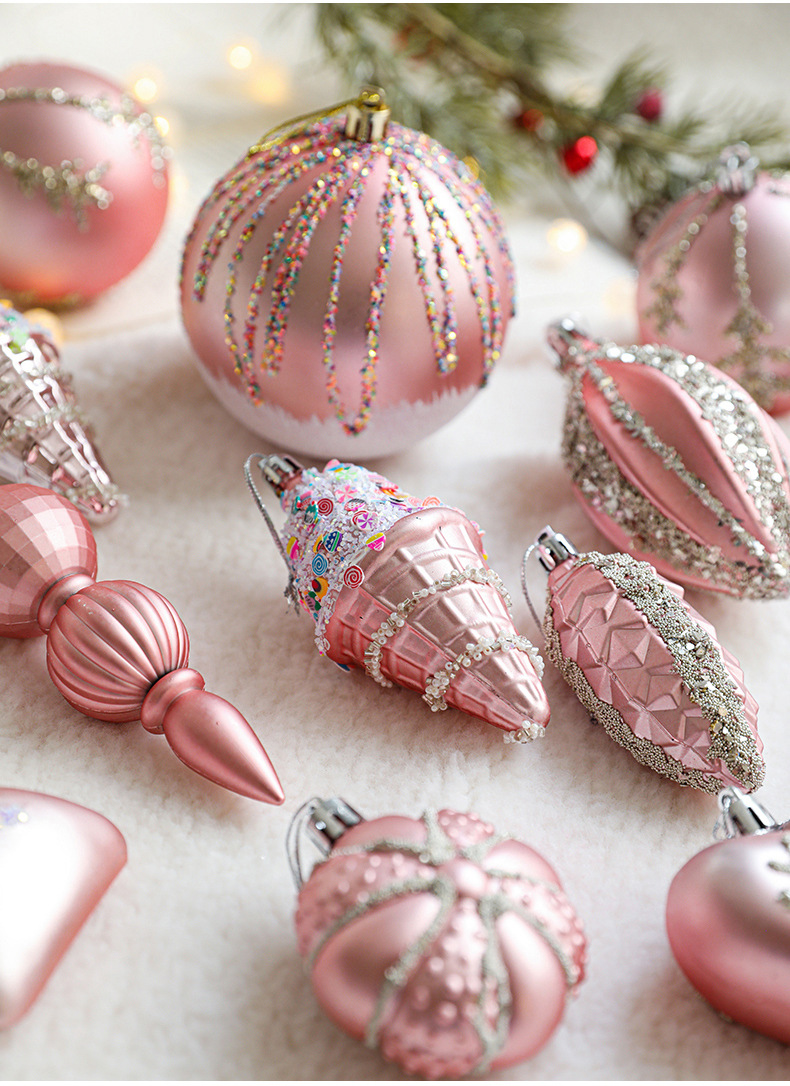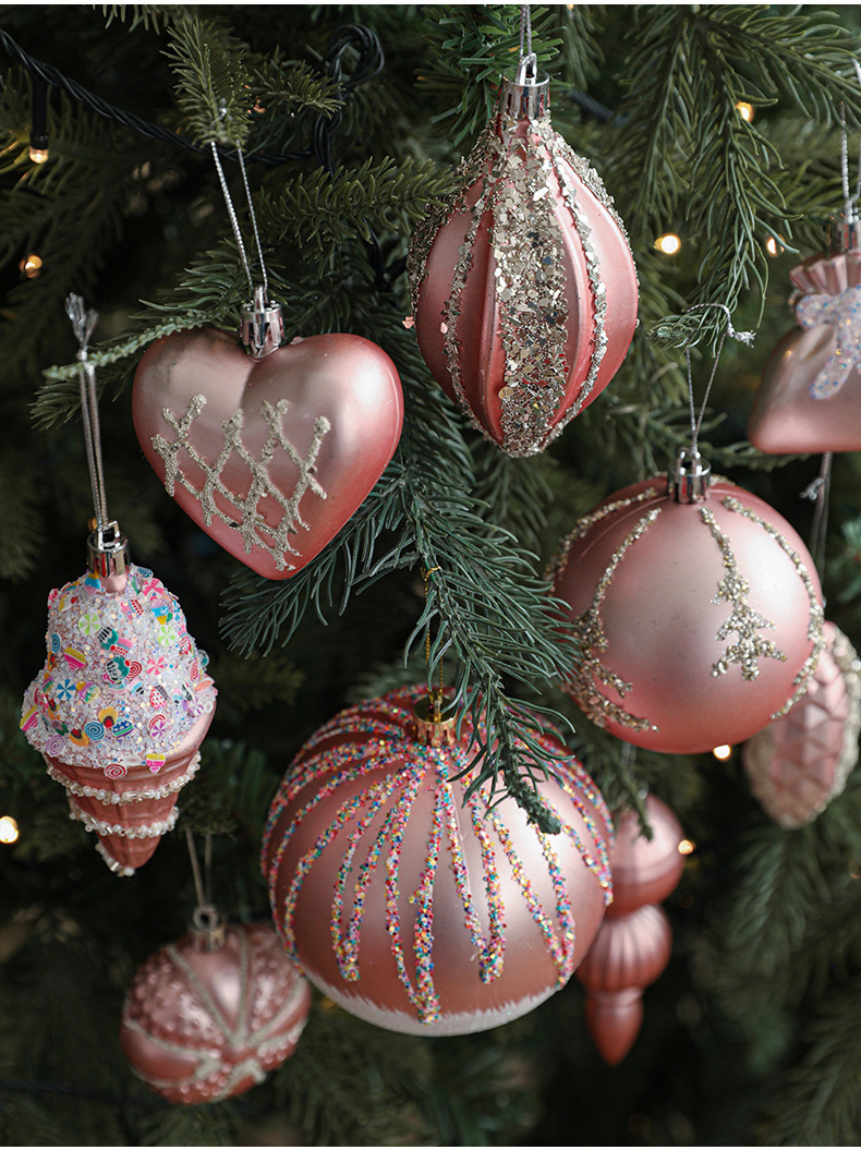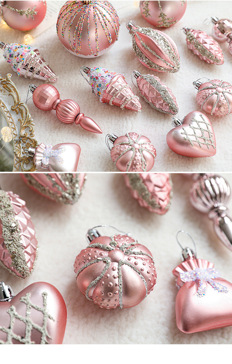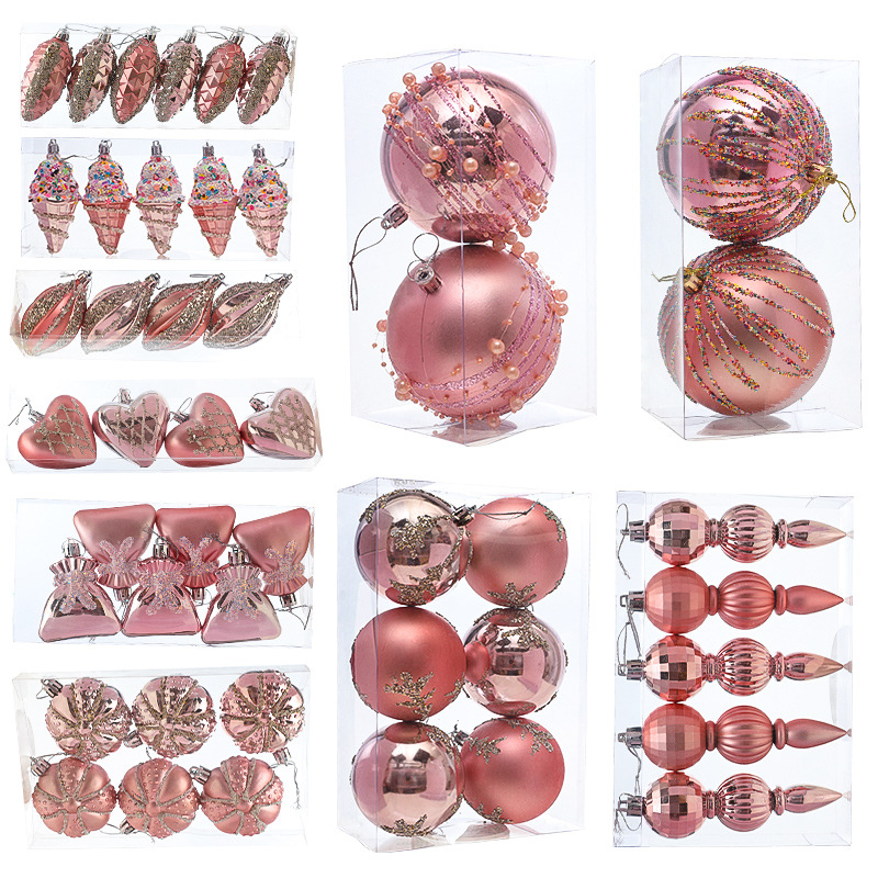 Pink Christmas Ball Shaped Pendant Box Set Starfruit Love Christmas Tree Decorative Charm Electroplating Colorful Christmas