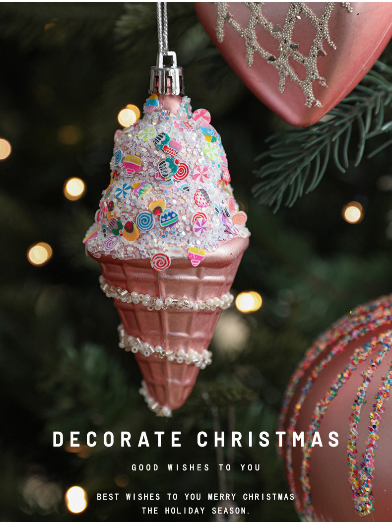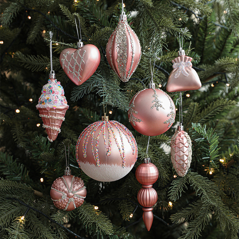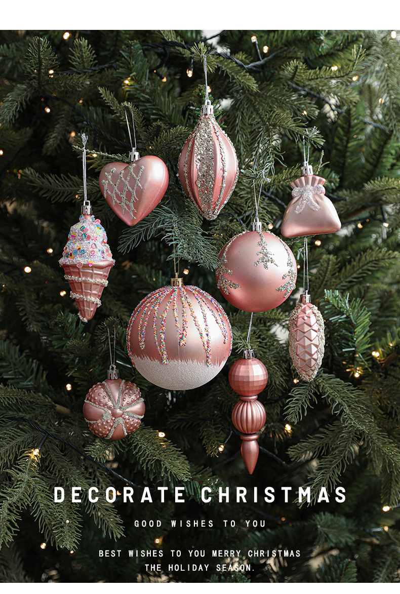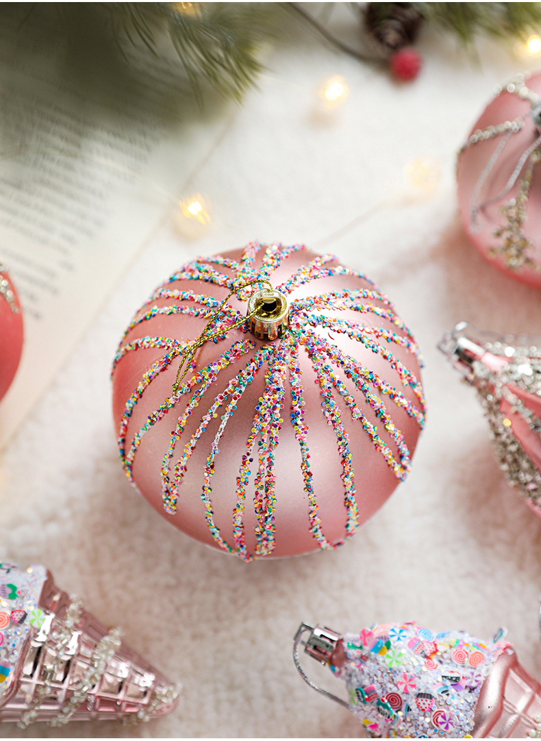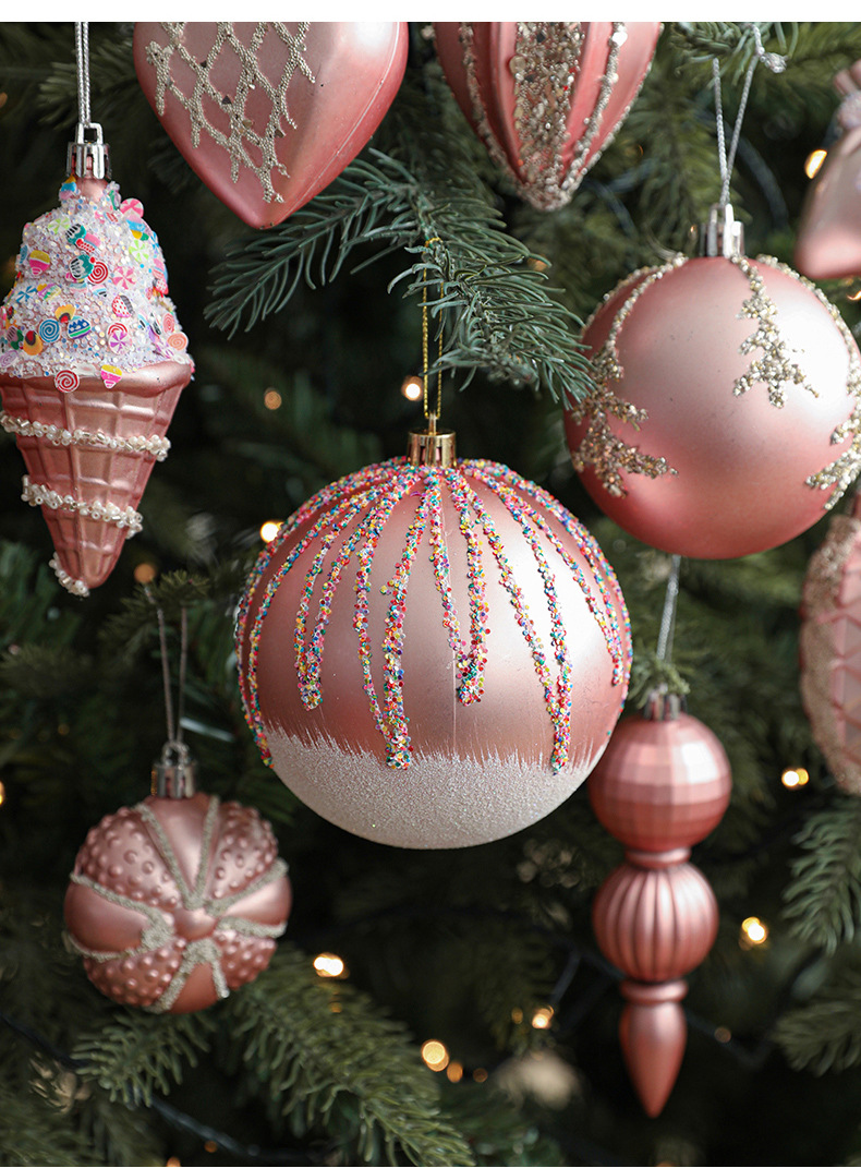 Pink Christmas Ball Shaped Pendant Box Set Starfruit Love Christmas Tree Decorative Charm Electroplating Colorful Christmas