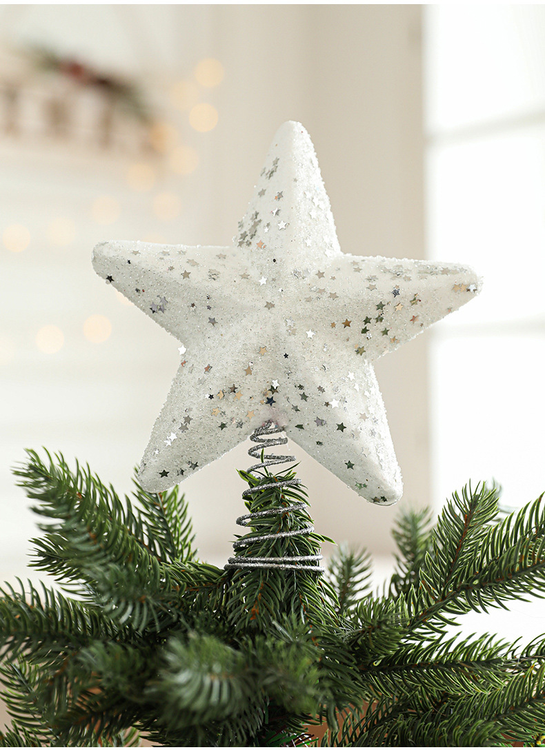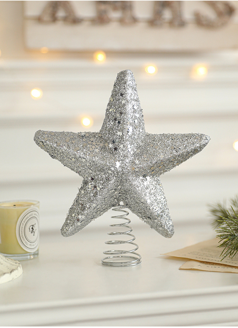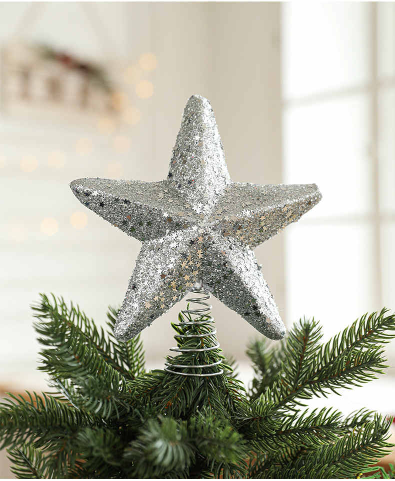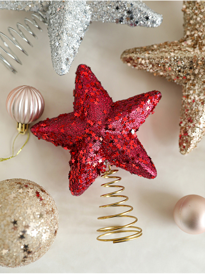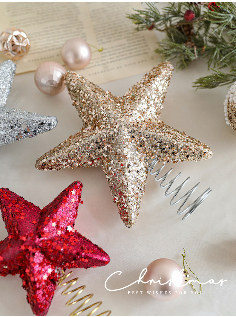 New cross-border sticky powder Christmas tree top star explosion star five-pointed star decoration Christmas scene decoration in stock