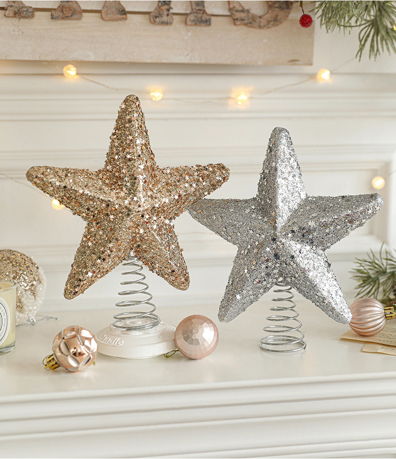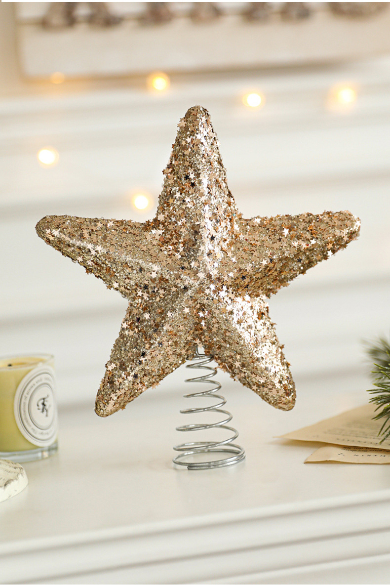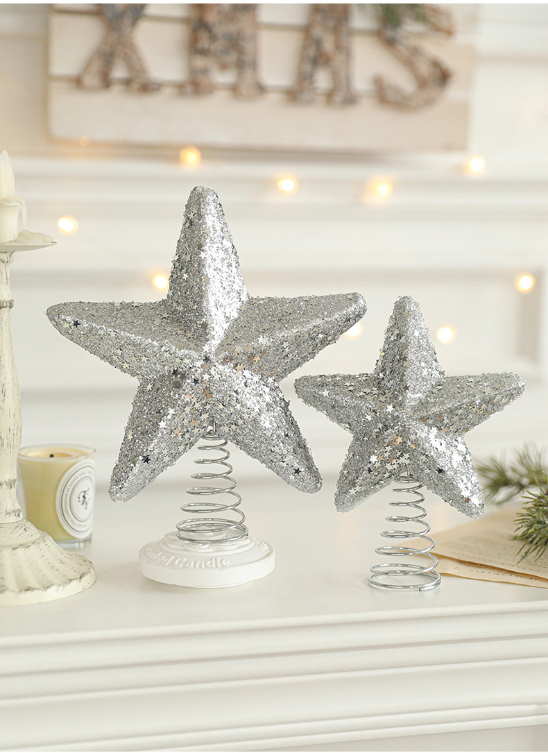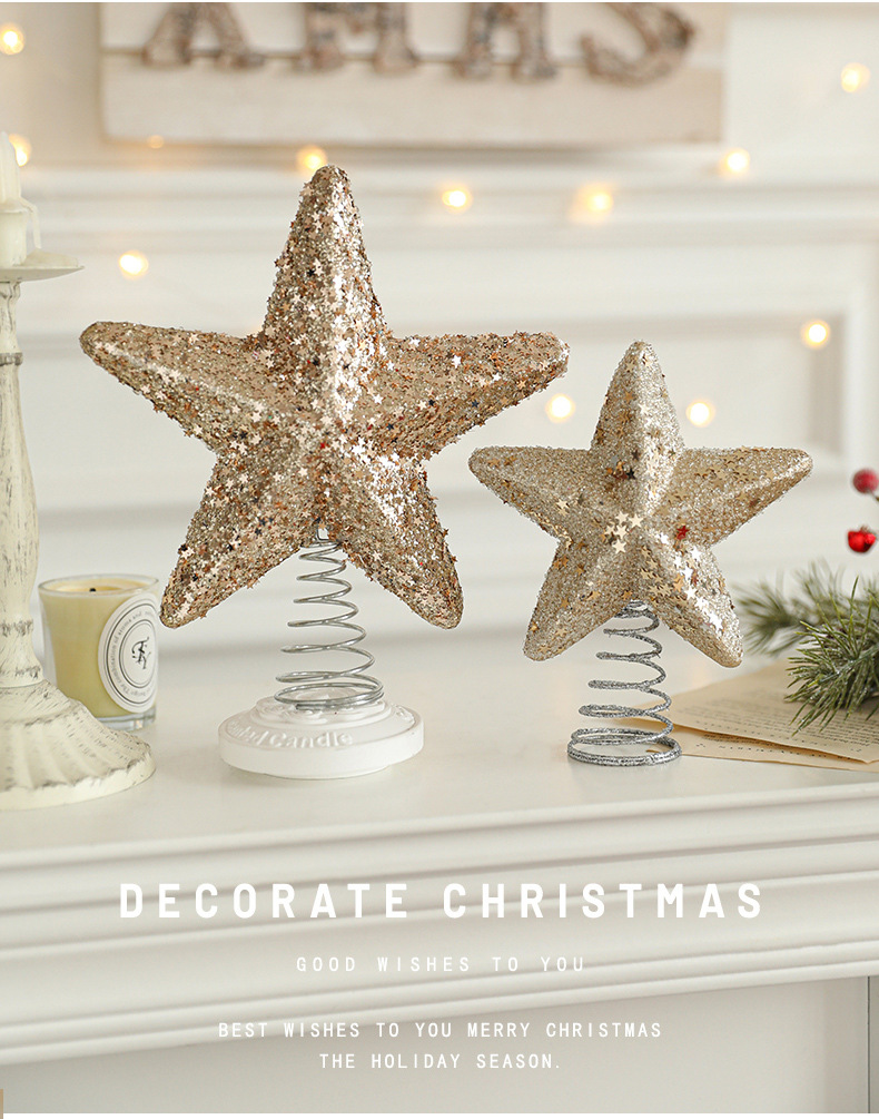 New cross-border sticky powder Christmas tree top star explosion star five-pointed star decoration Christmas scene decoration in stock
