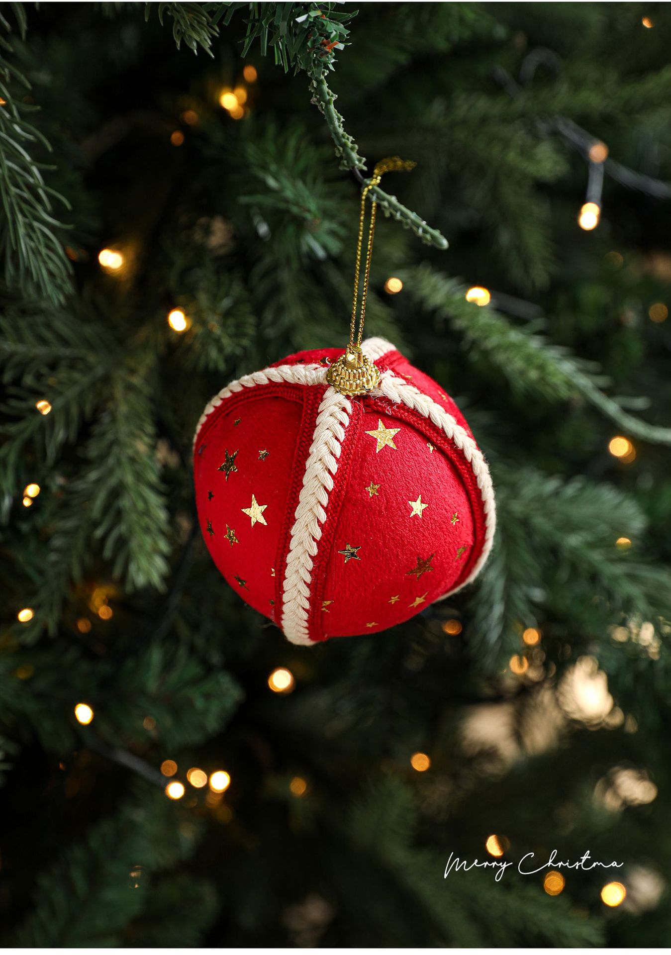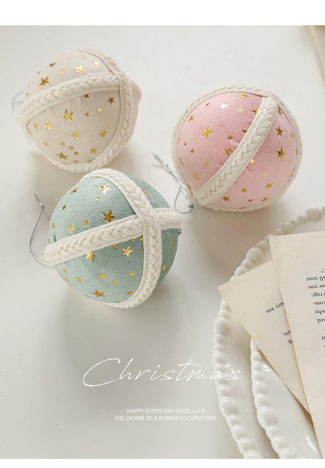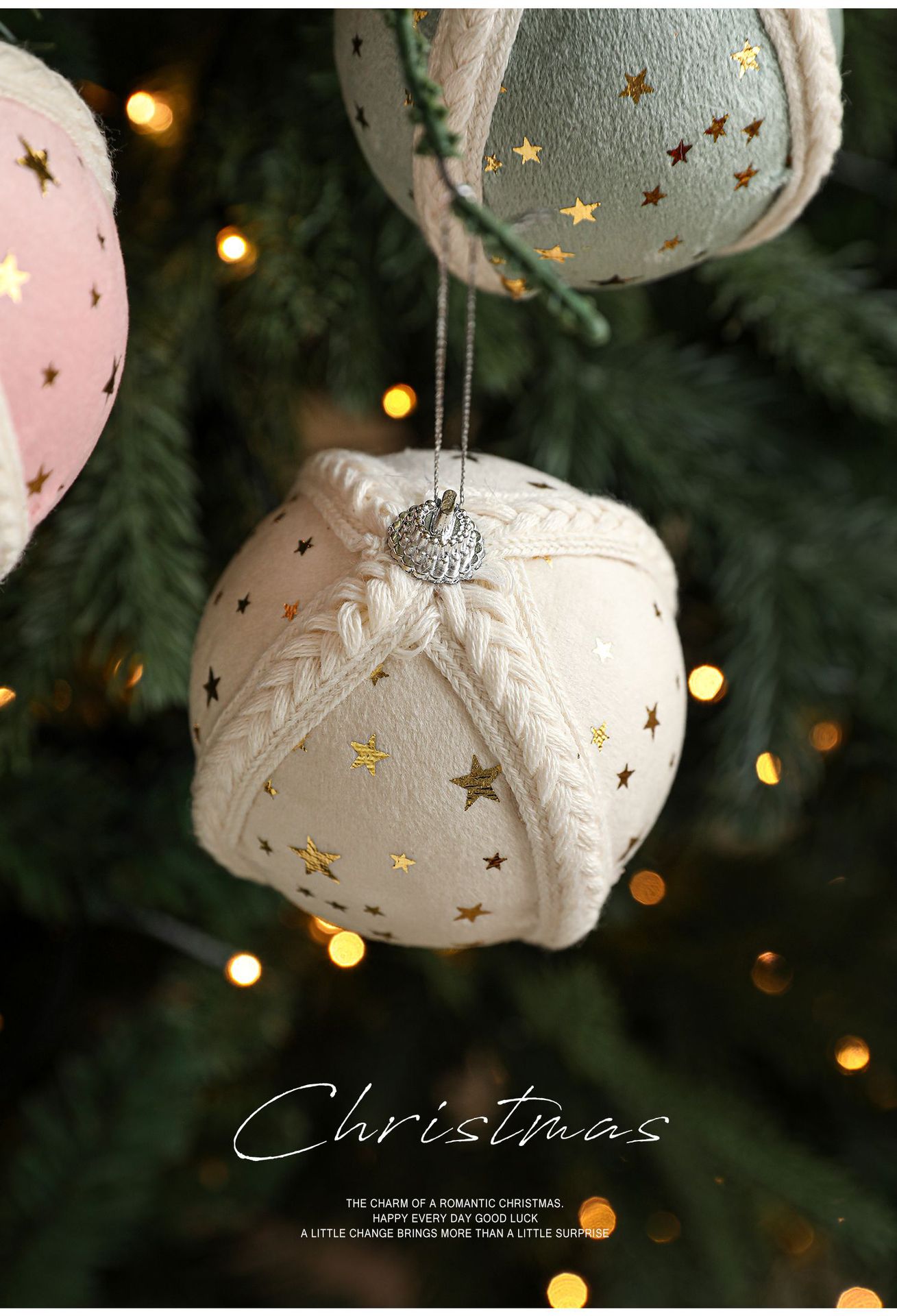 Cross-border new product 8CM foam ball Christmas tree pendant ornament hanging ball star fabric printed ball decoration arrangement