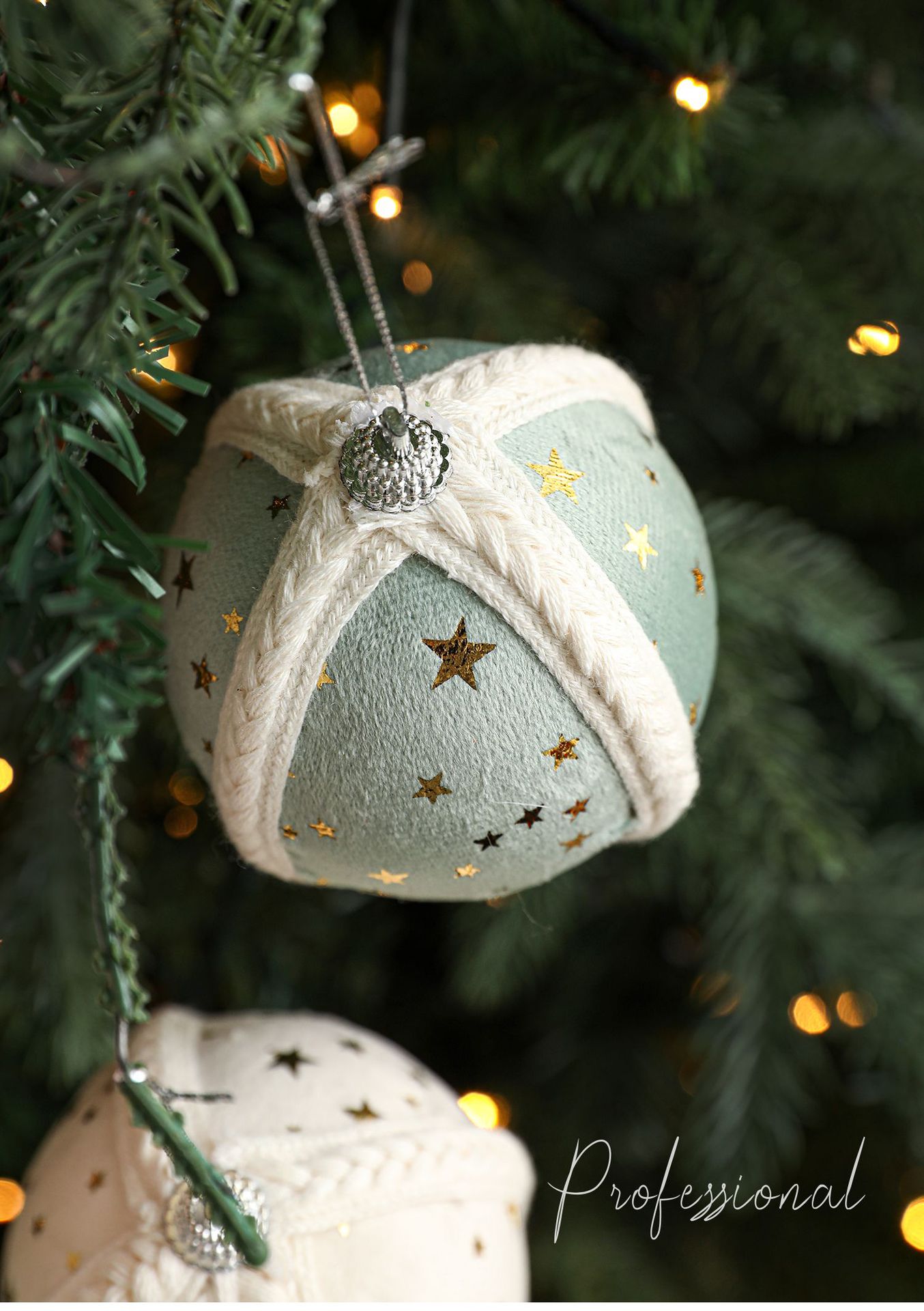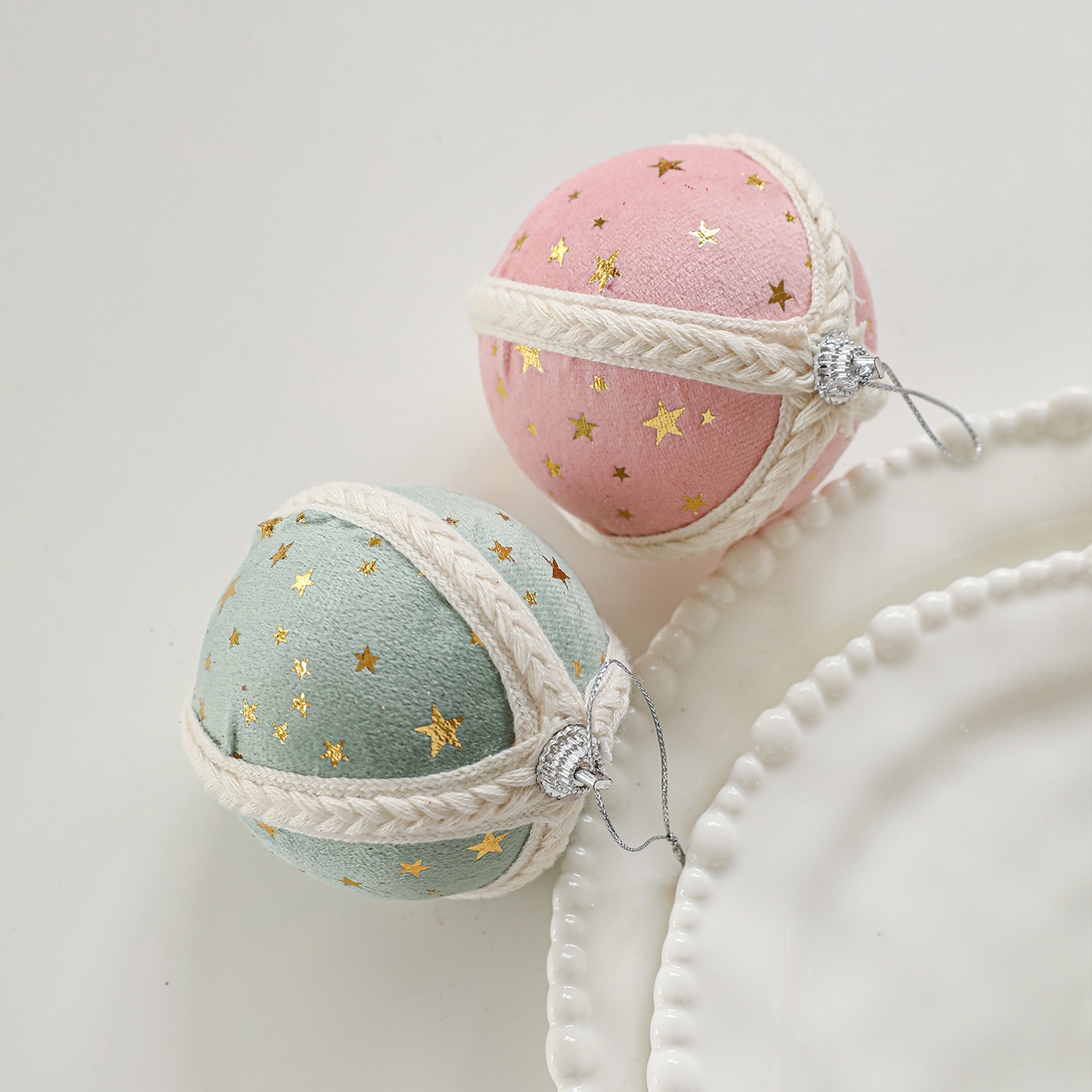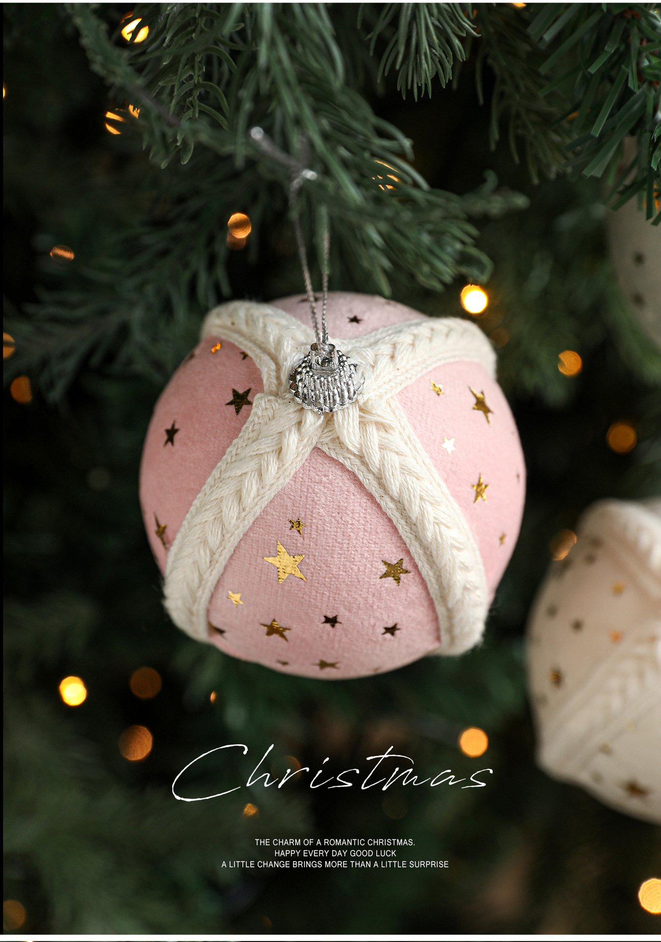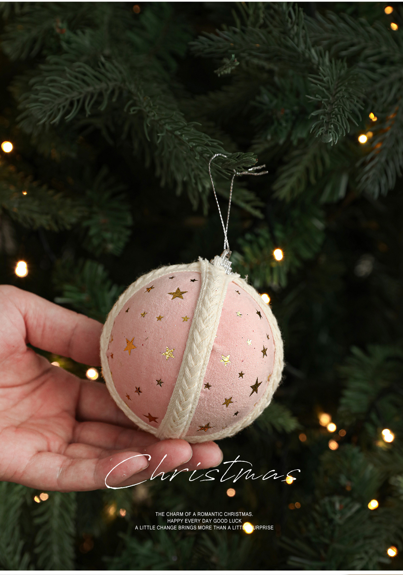 Cross-border new product 8CM foam ball Christmas tree pendant ornament hanging ball star fabric printed ball decoration arrangement