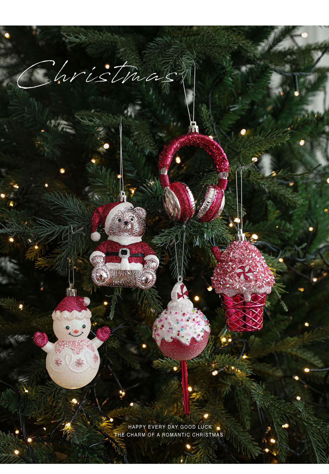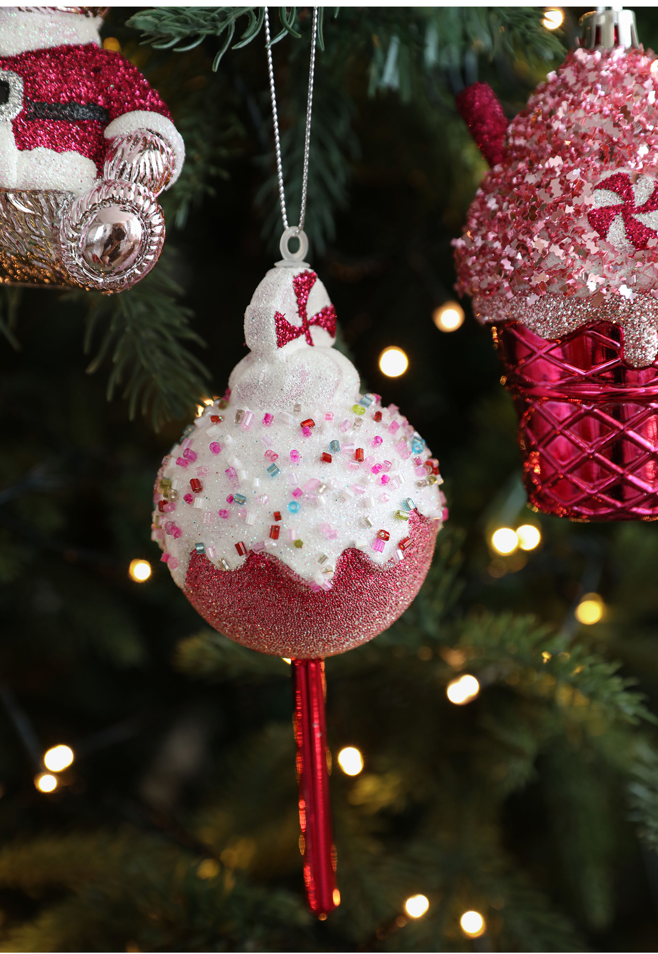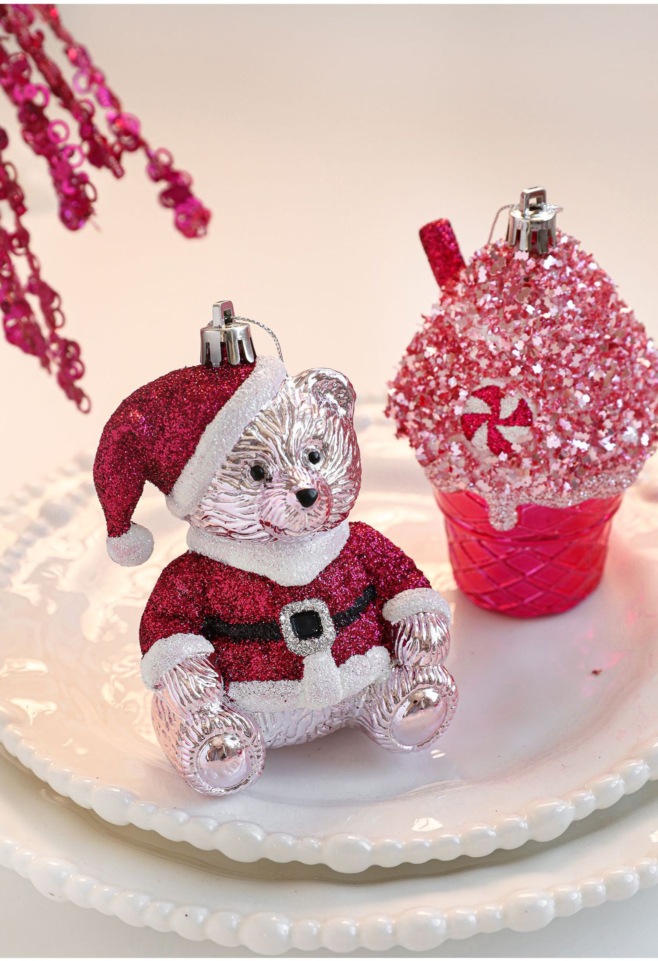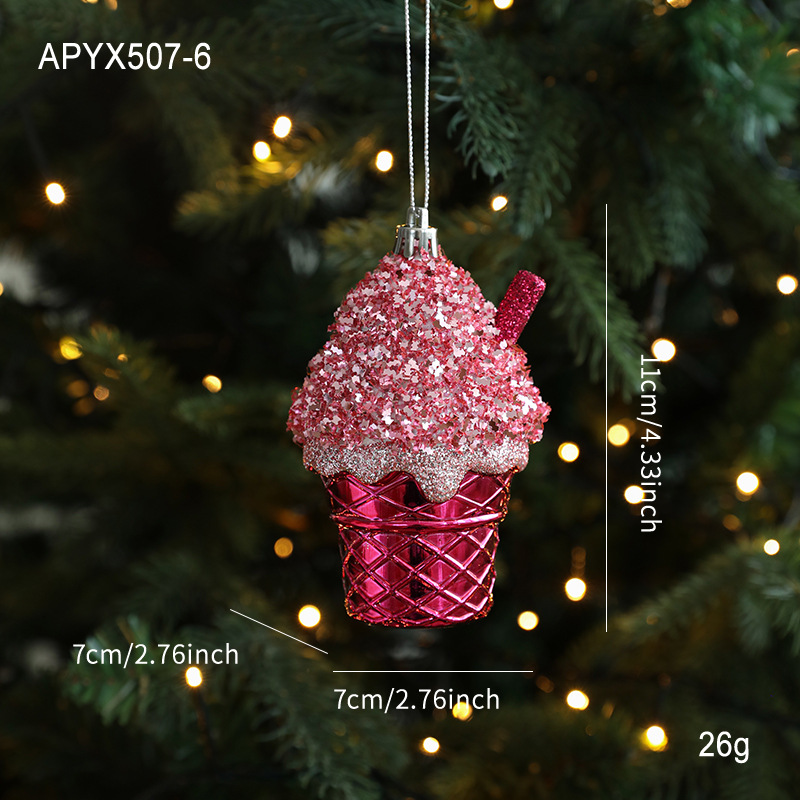 New finsellow red sticky powder plastic pendant color pink cartoon pendant cake bear Christmas tree window ornament decoration