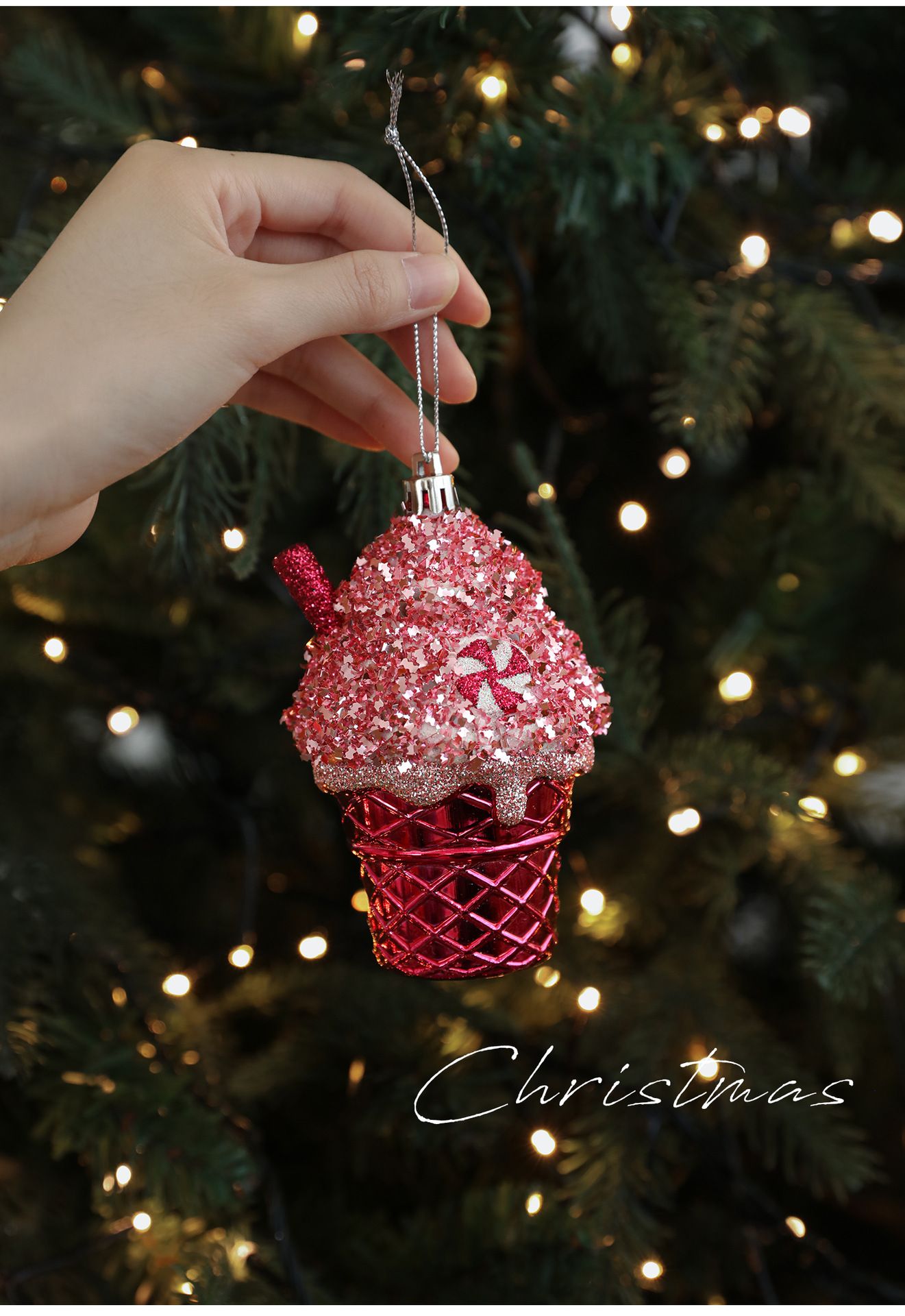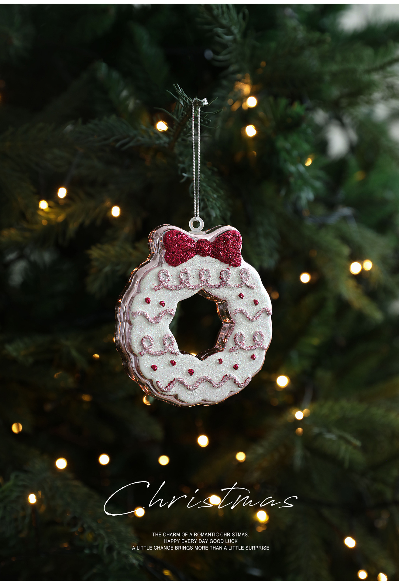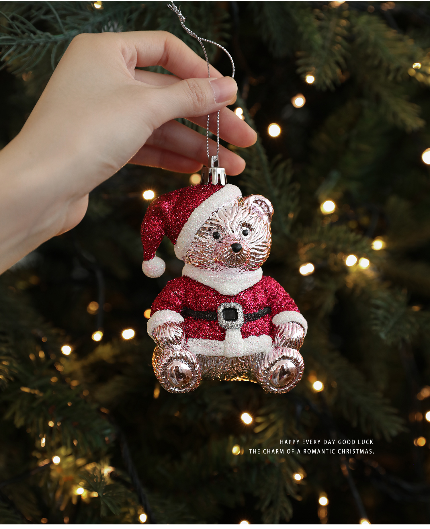 New finsellow red sticky powder plastic pendant color pink cartoon pendant cake bear Christmas tree window ornament decoration