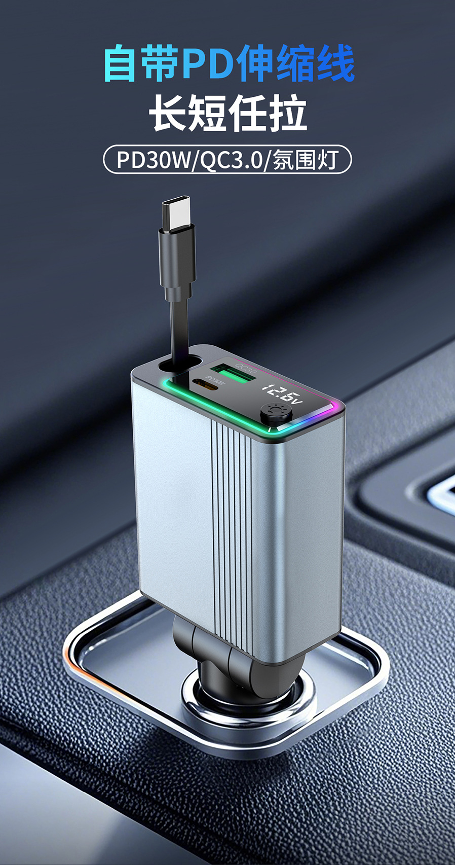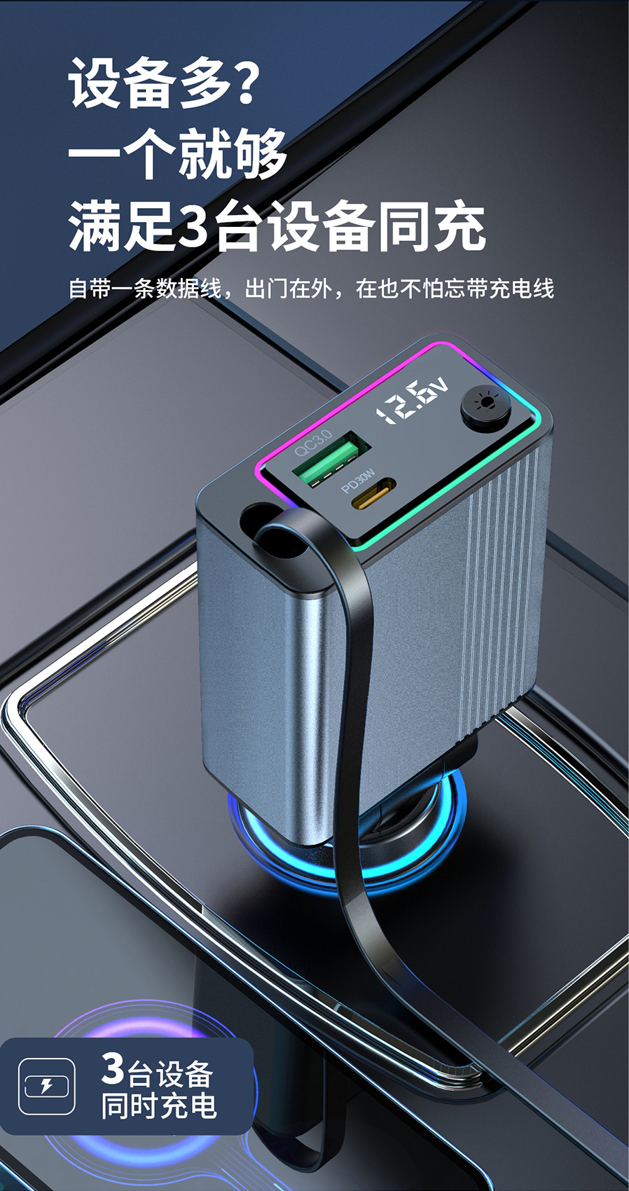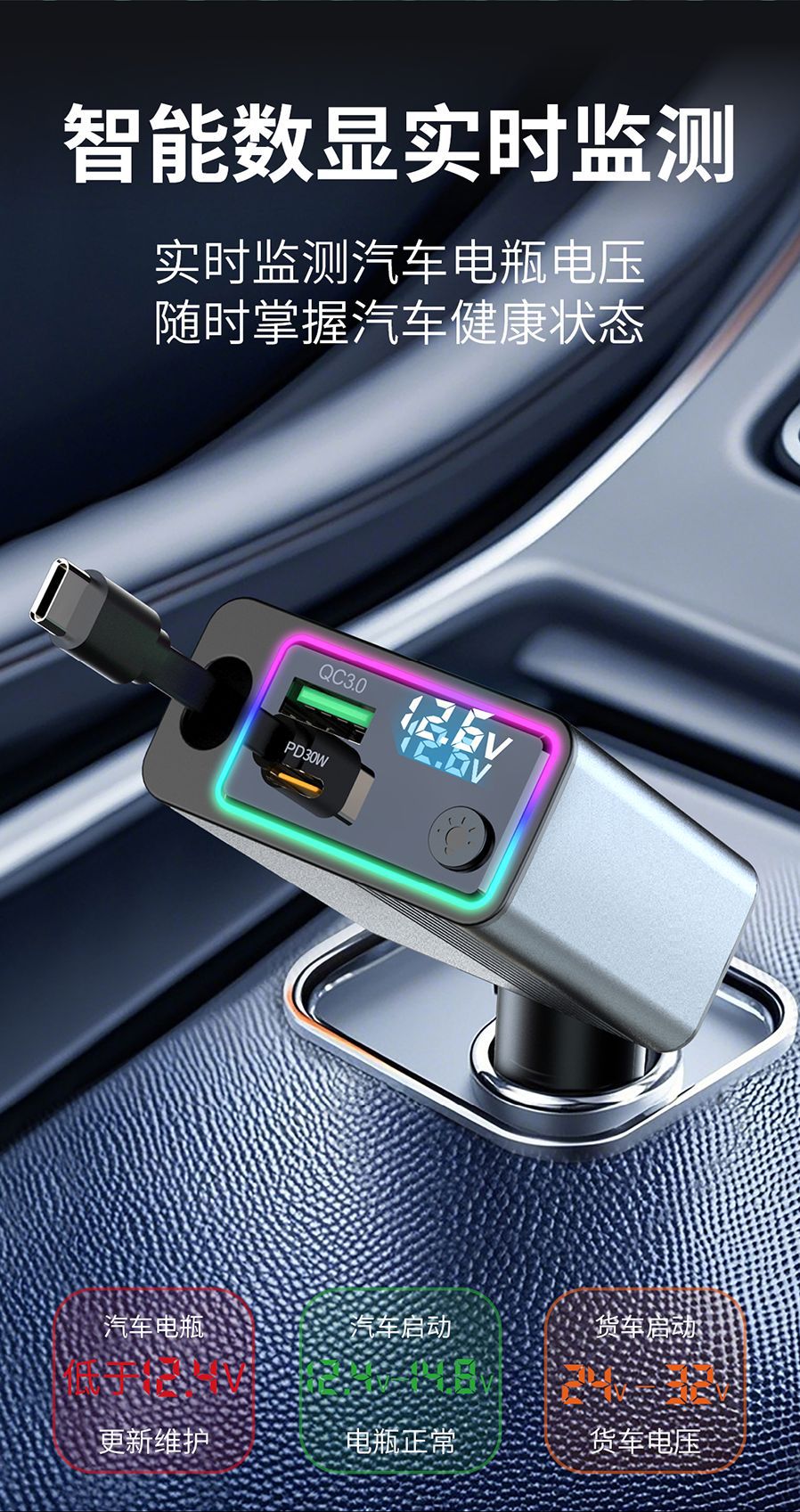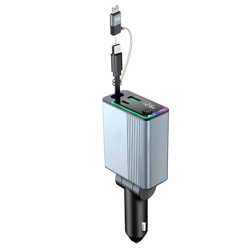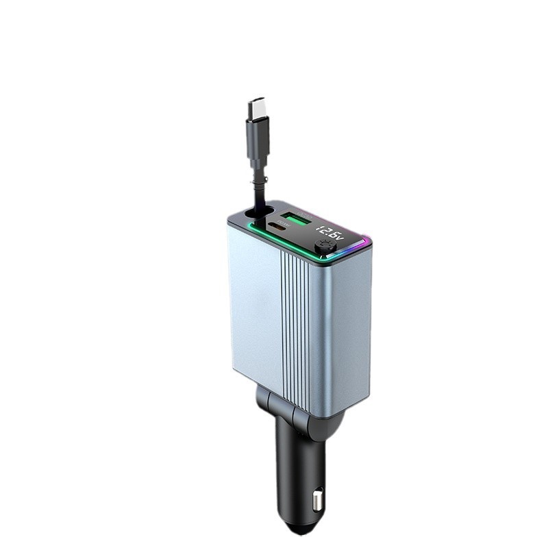New Cross-border Telescopic Cable Car Charging Digital Display Fast Charging Metal Cigarette Lighting Car Charger CE FCC ROHS certification