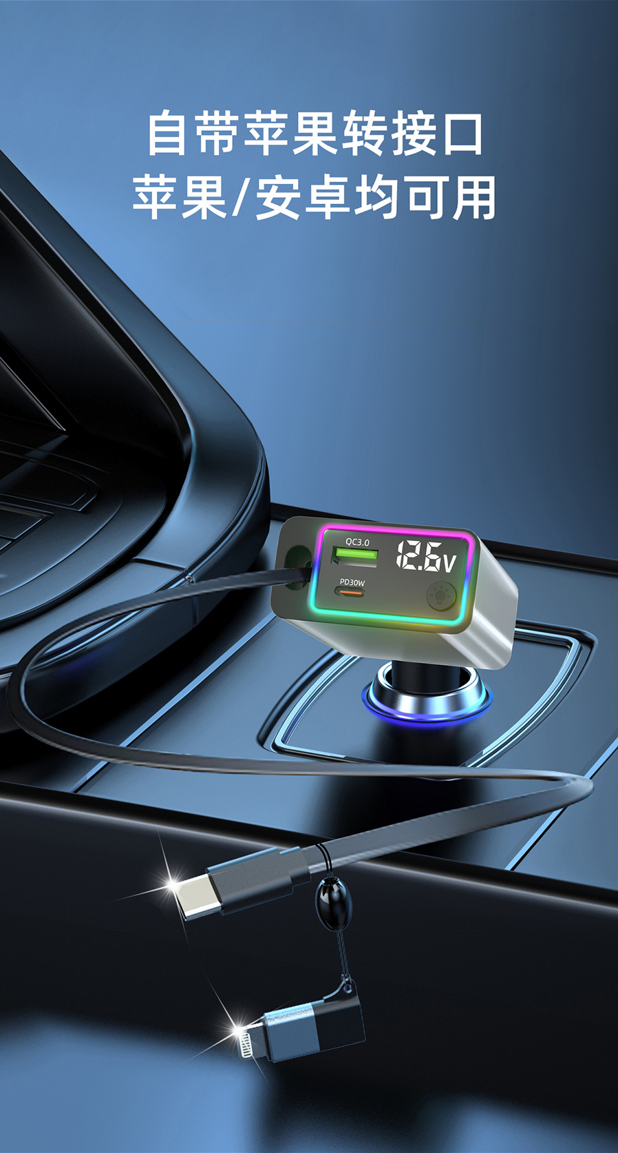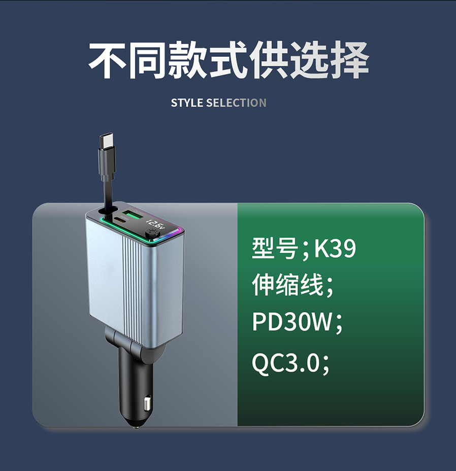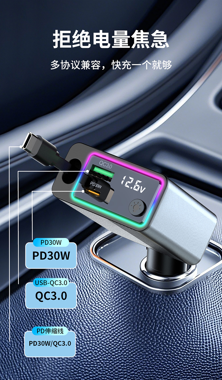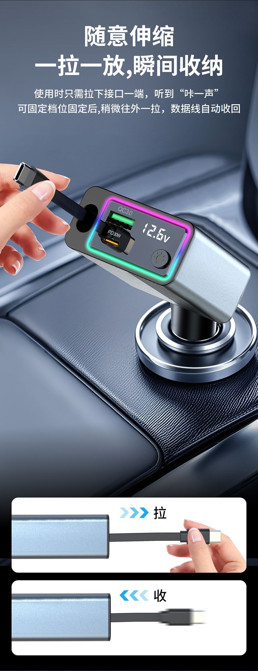 New Cross-border Telescopic Cable Car Charging Digital Display Fast Charging Metal Cigarette Lighting Car Charger CE FCC ROHS certification