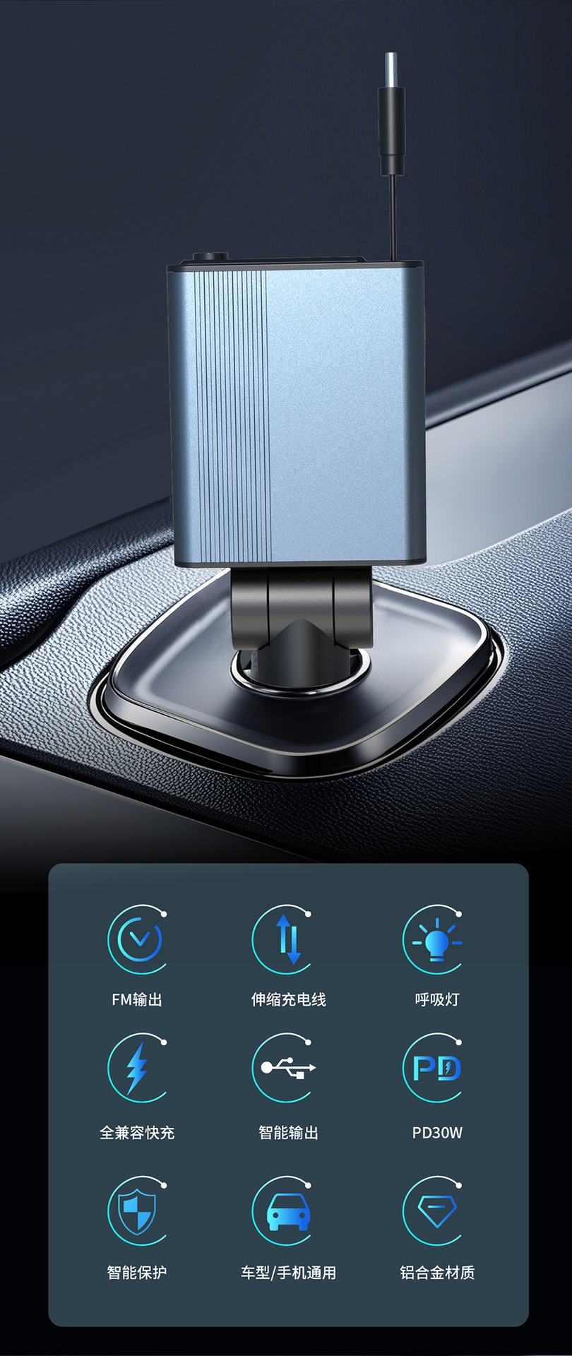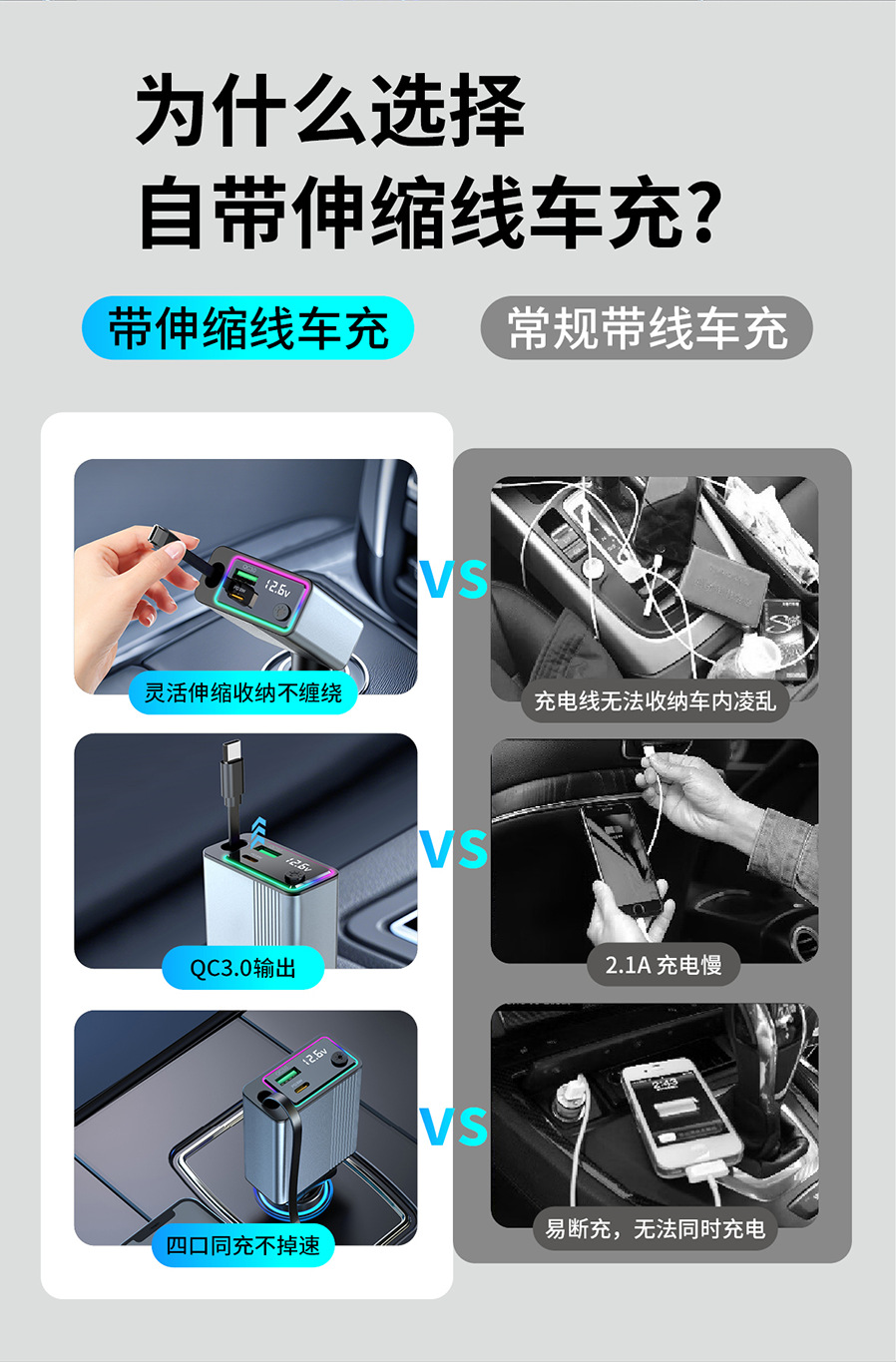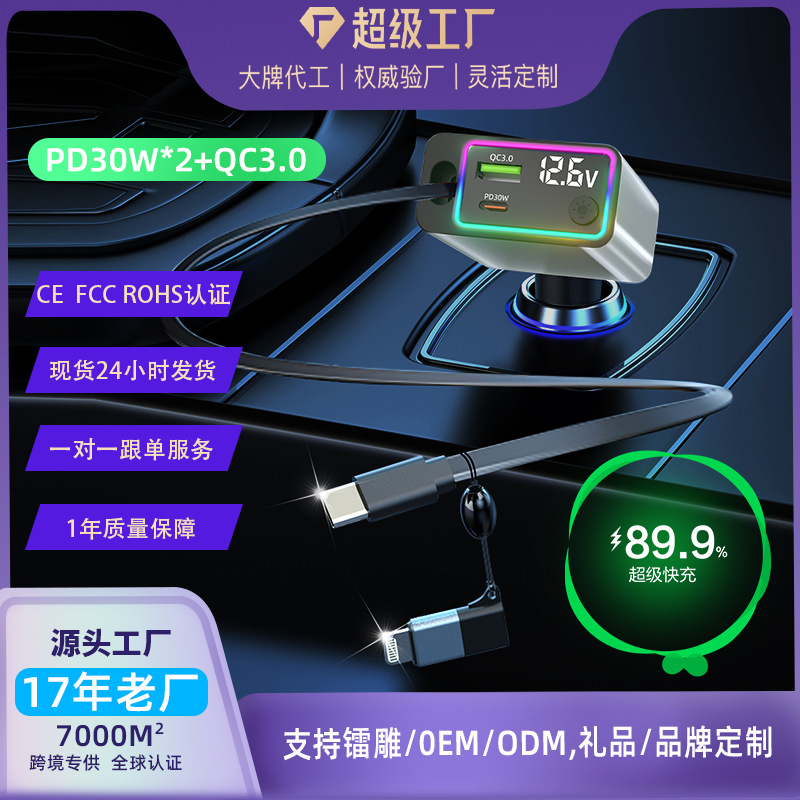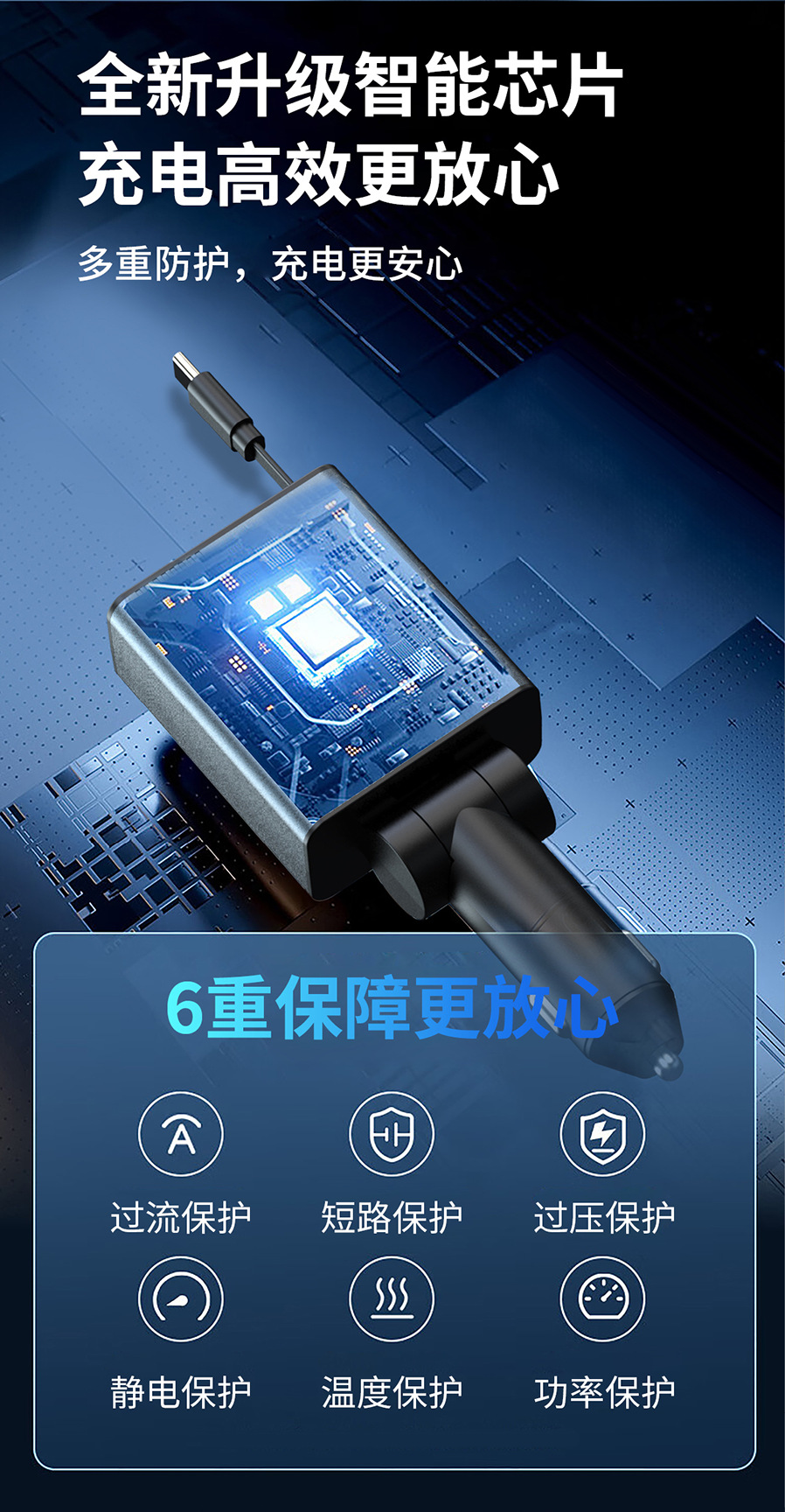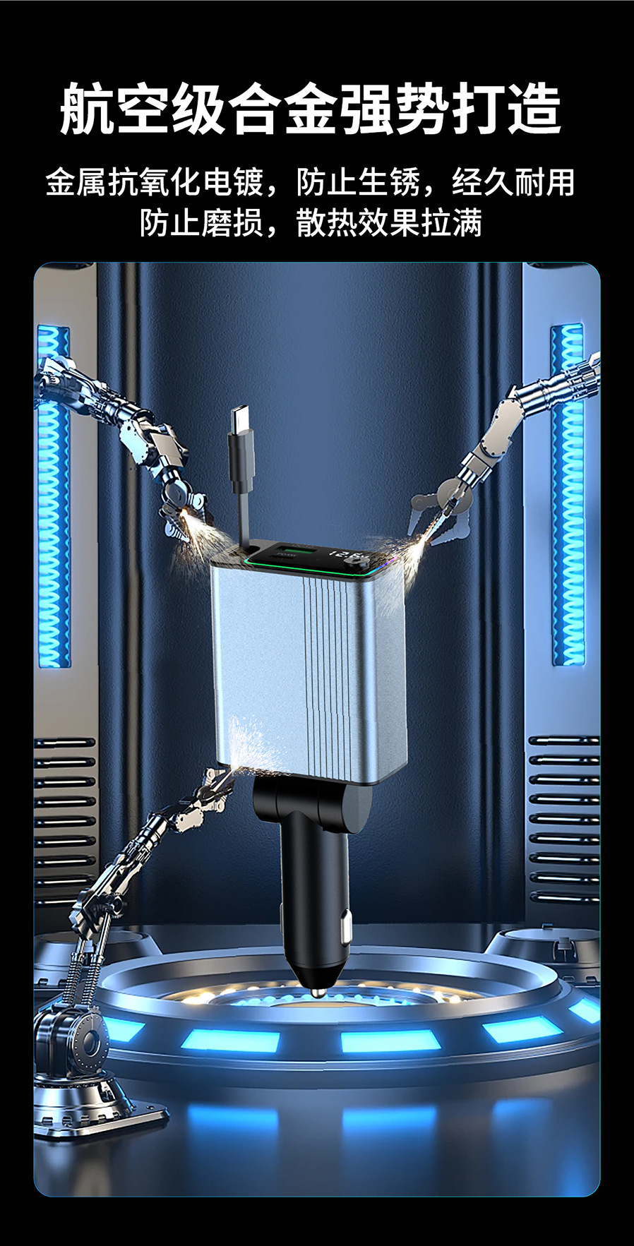 New Cross-border Telescopic Cable Car Charging Digital Display Fast Charging Metal Cigarette Lighting Car Charger CE FCC ROHS certification