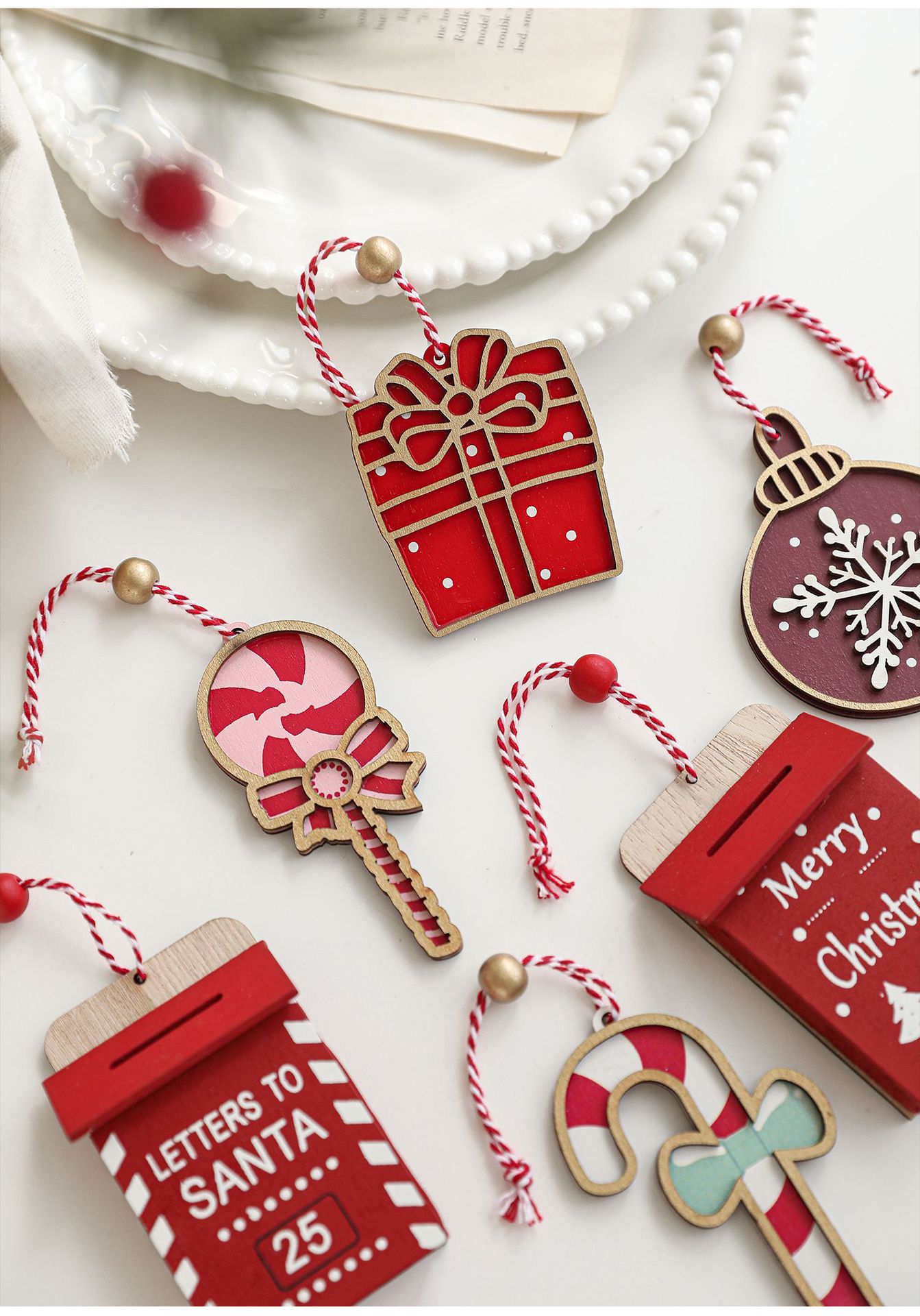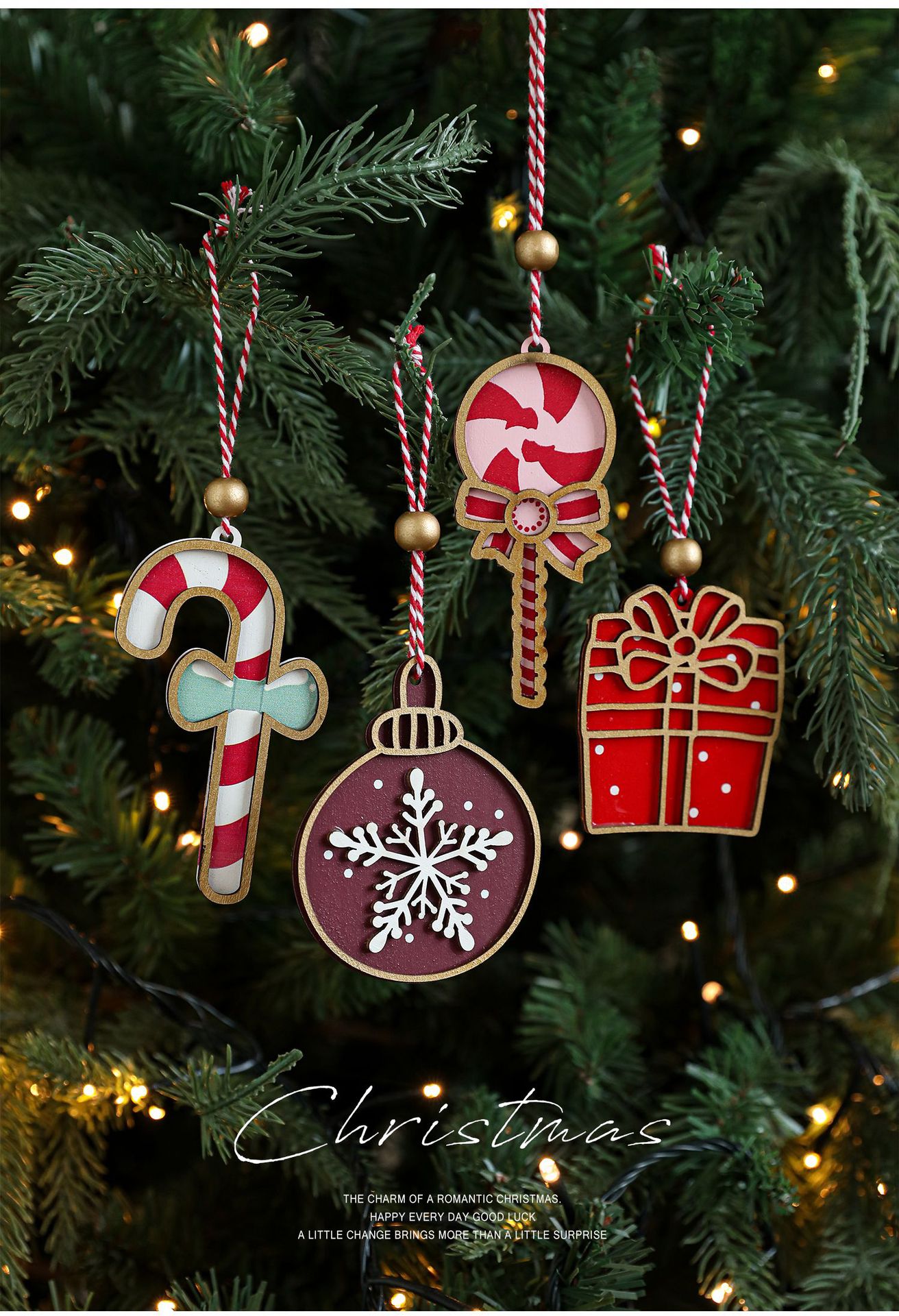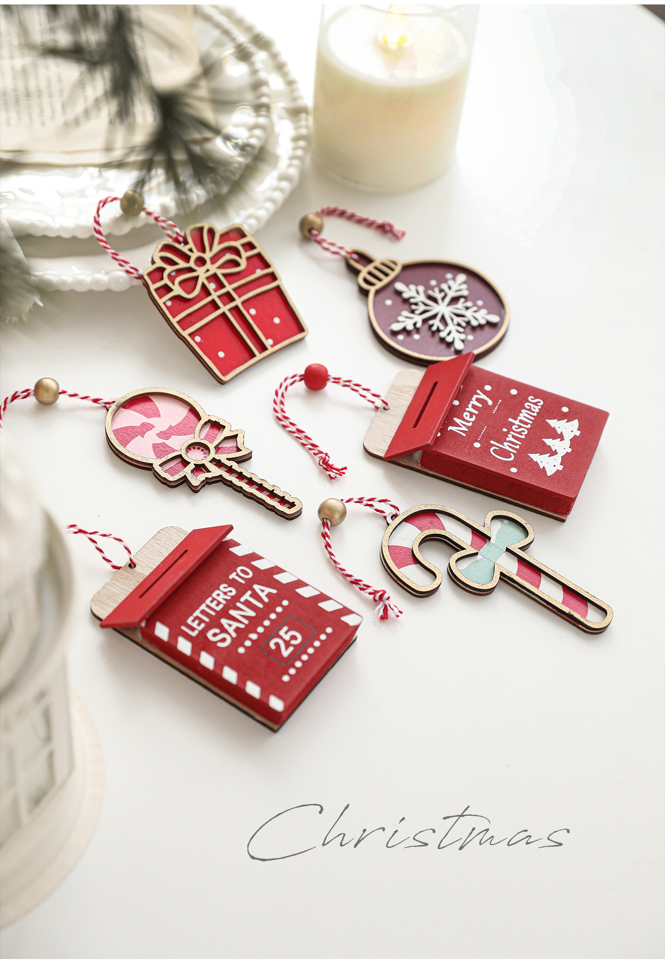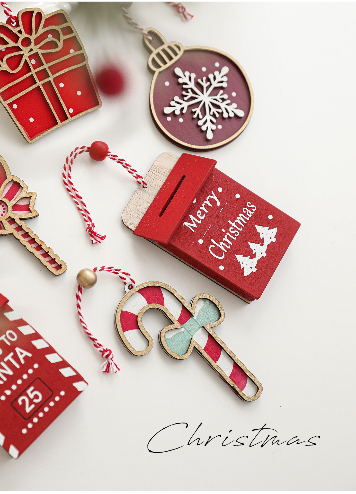 New Red Wooden Wood Chip Pendant Wooden Christmas Tree Ornament Decorative Painted Scene Decoration Spot Wholesale