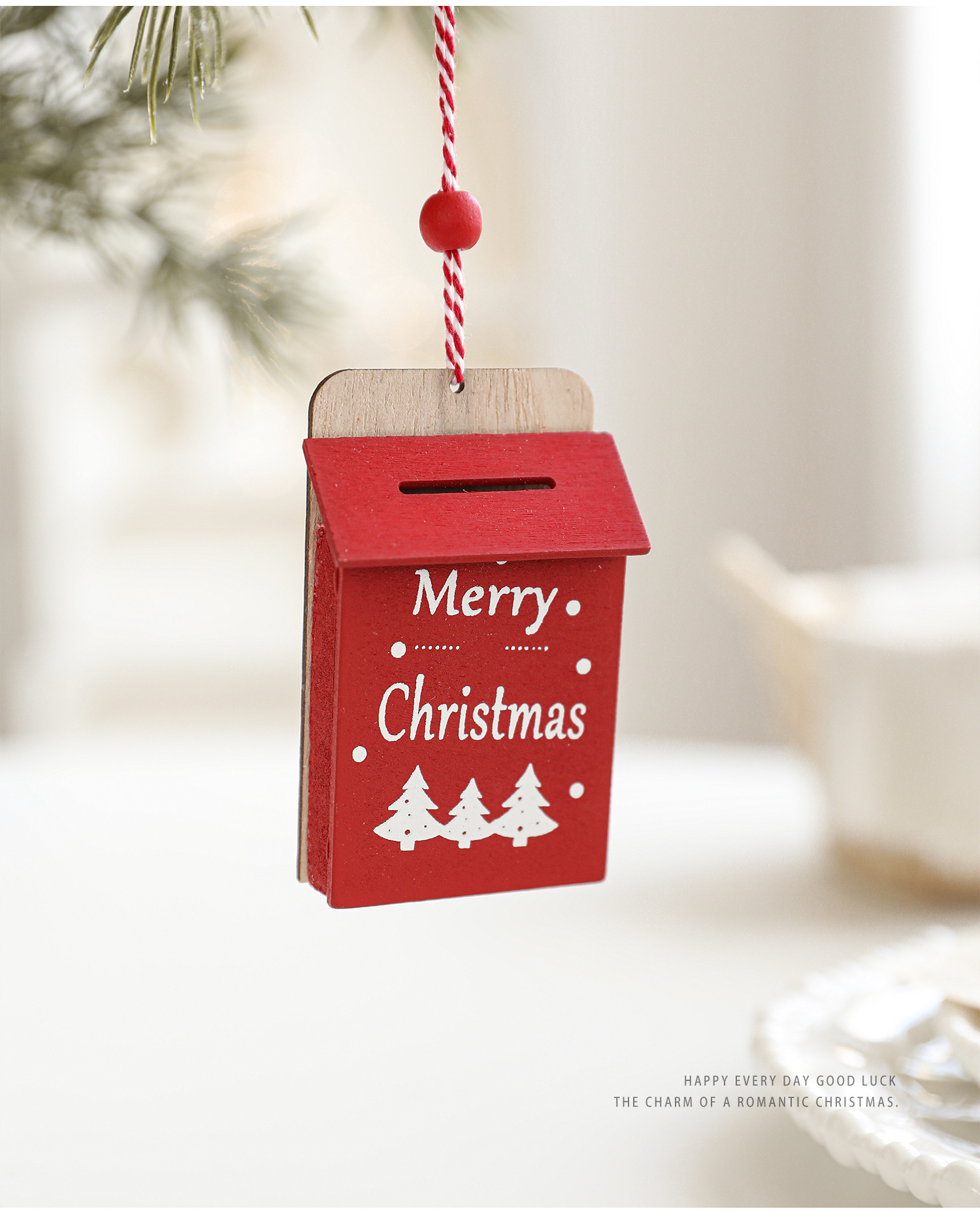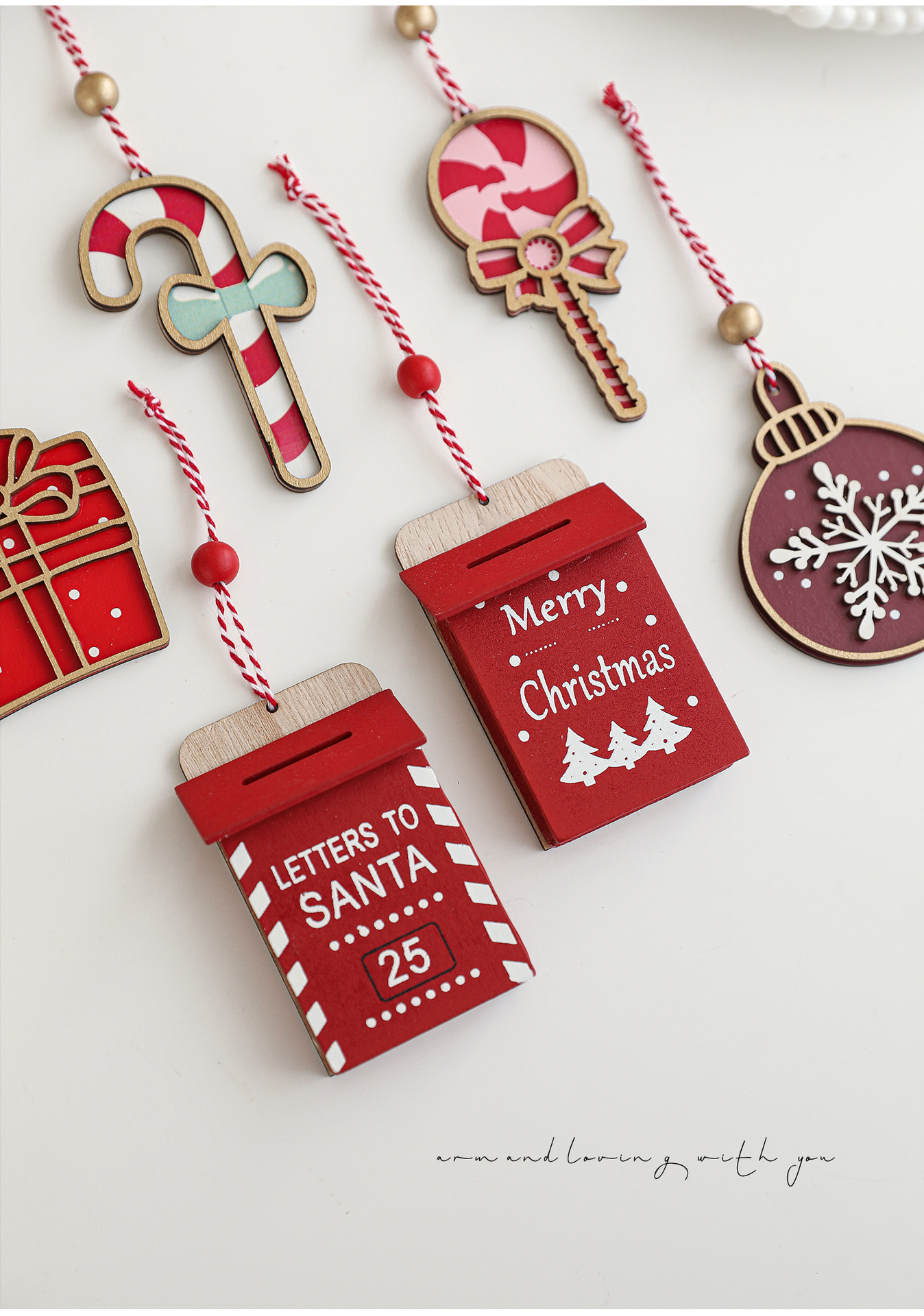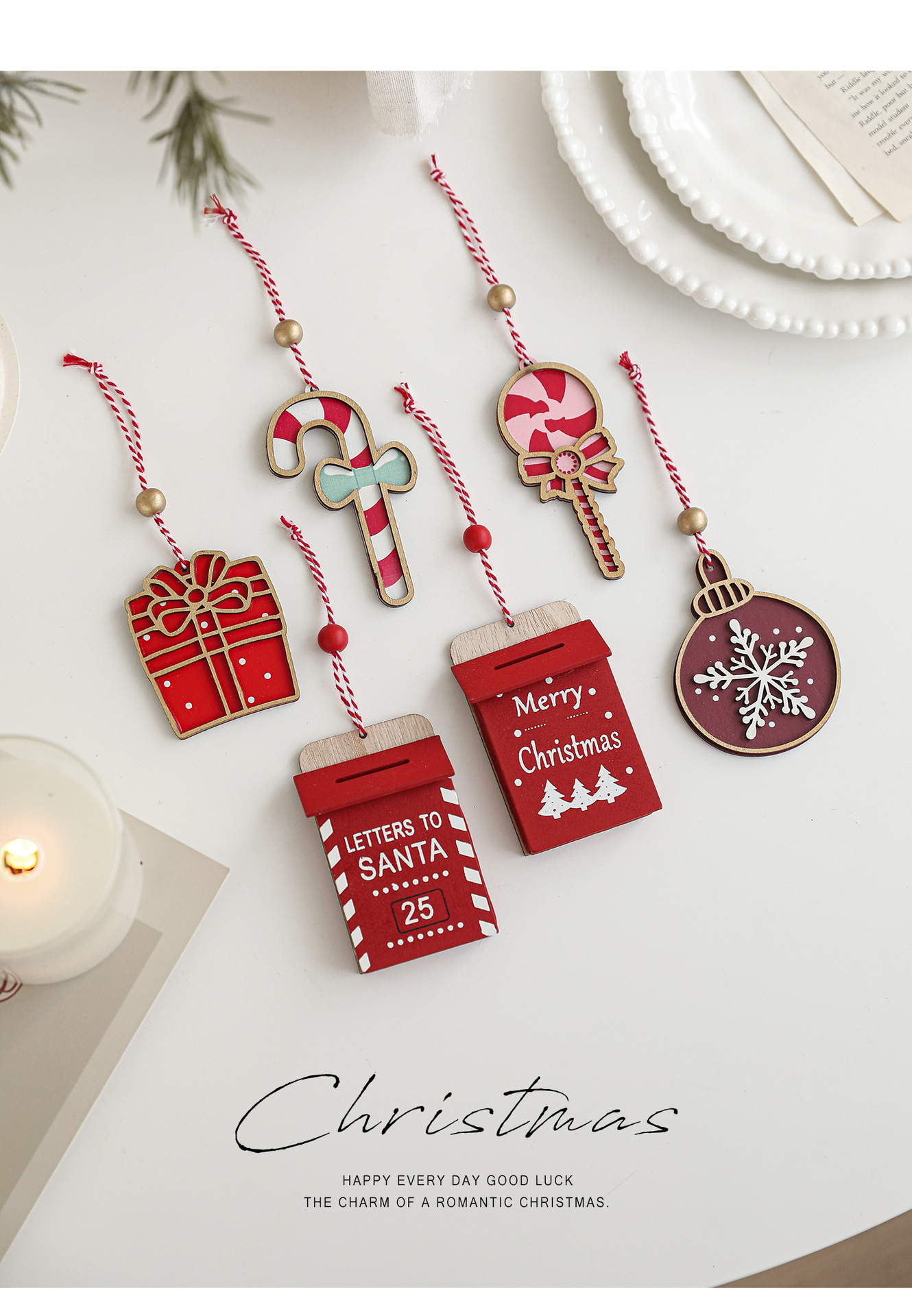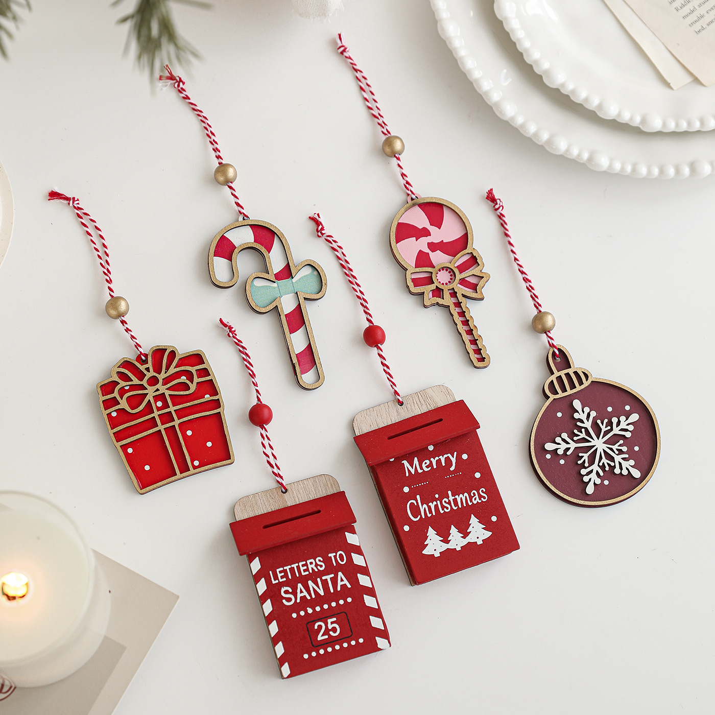 New Red Wooden Wood Chip Pendant Wooden Christmas Tree Ornament Decorative Painted Scene Decoration Spot Wholesale