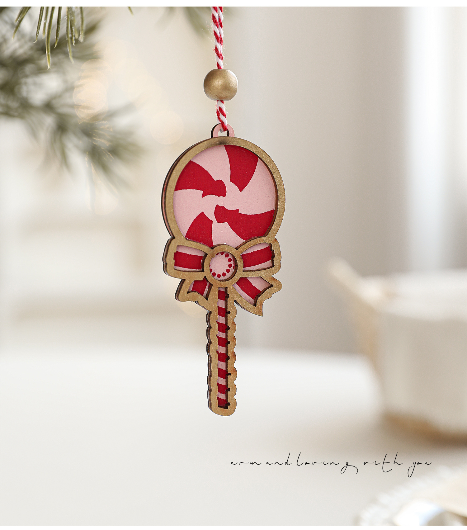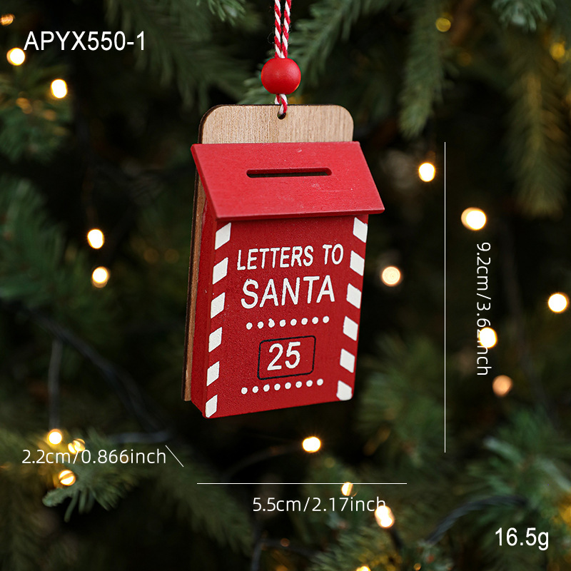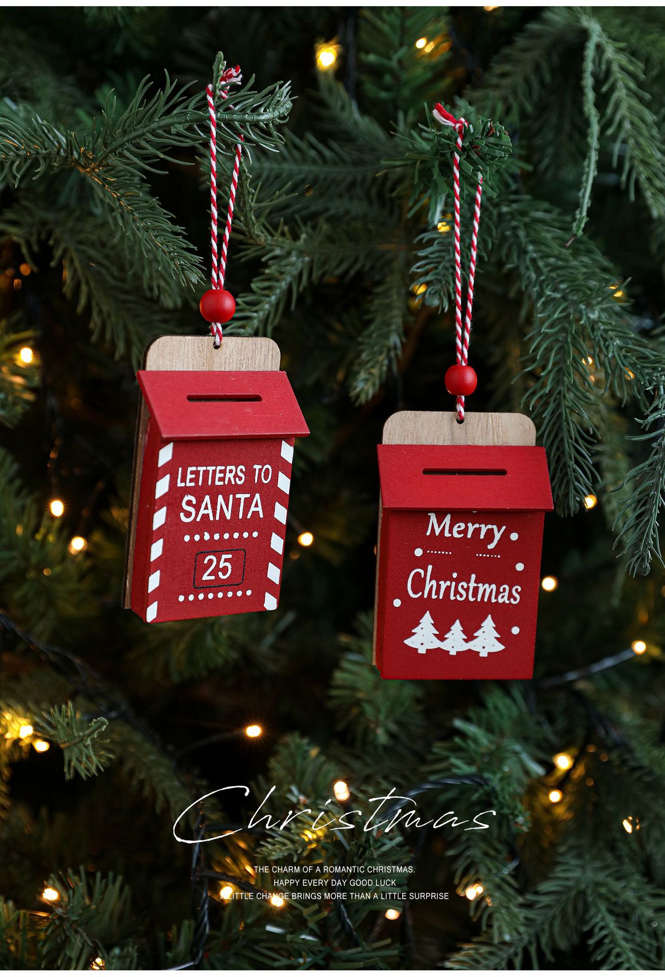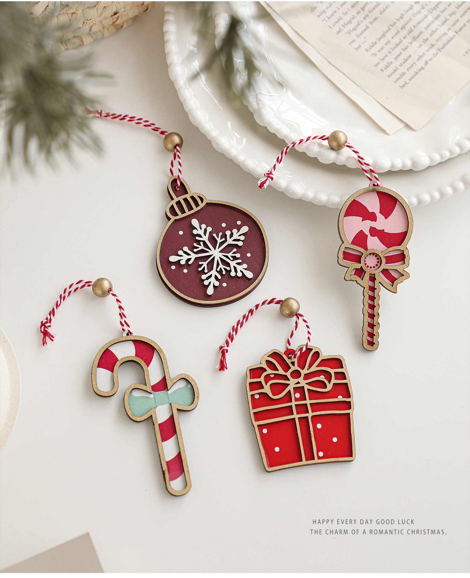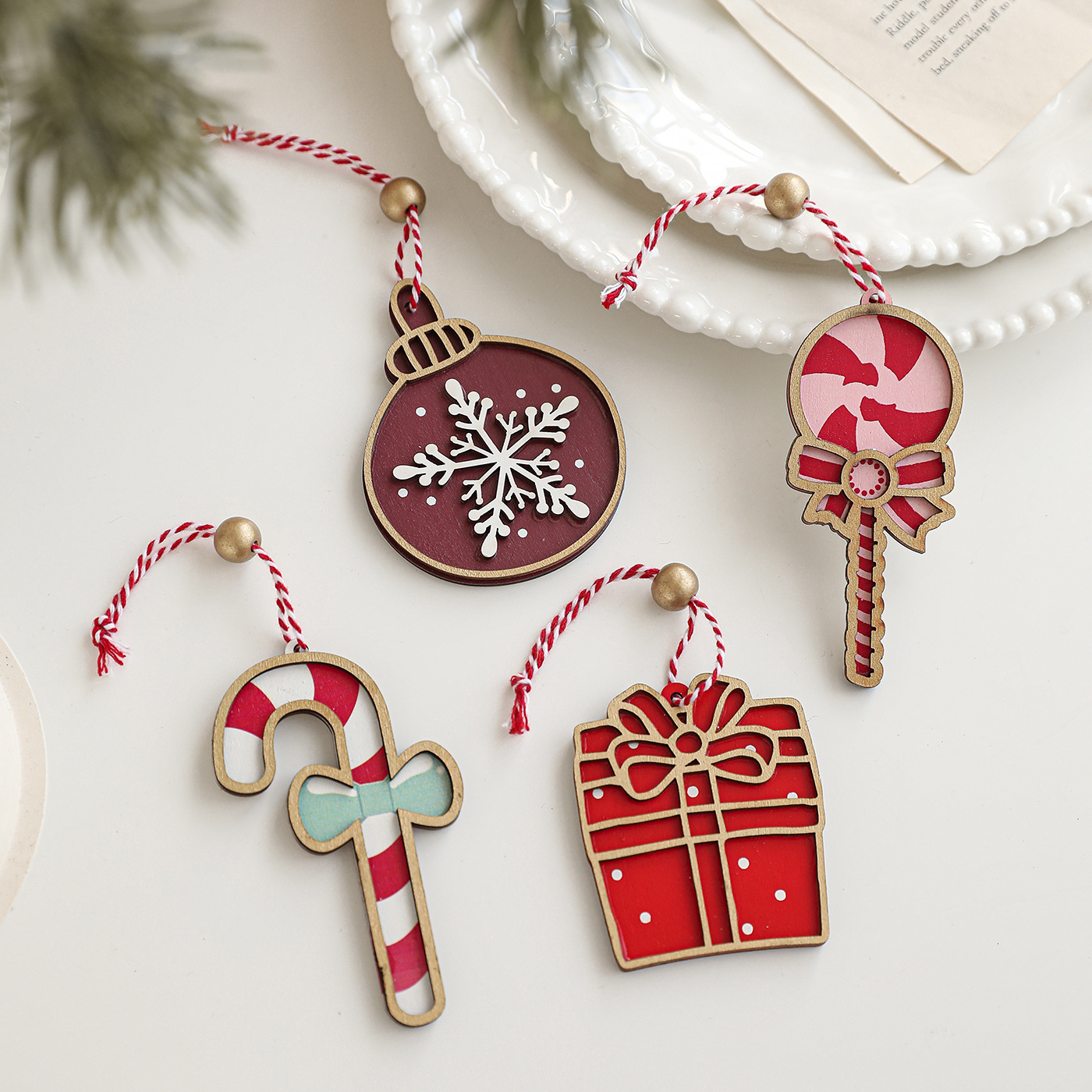 New Red Wooden Wood Chip Pendant Wooden Christmas Tree Ornament Decorative Painted Scene Decoration Spot Wholesale