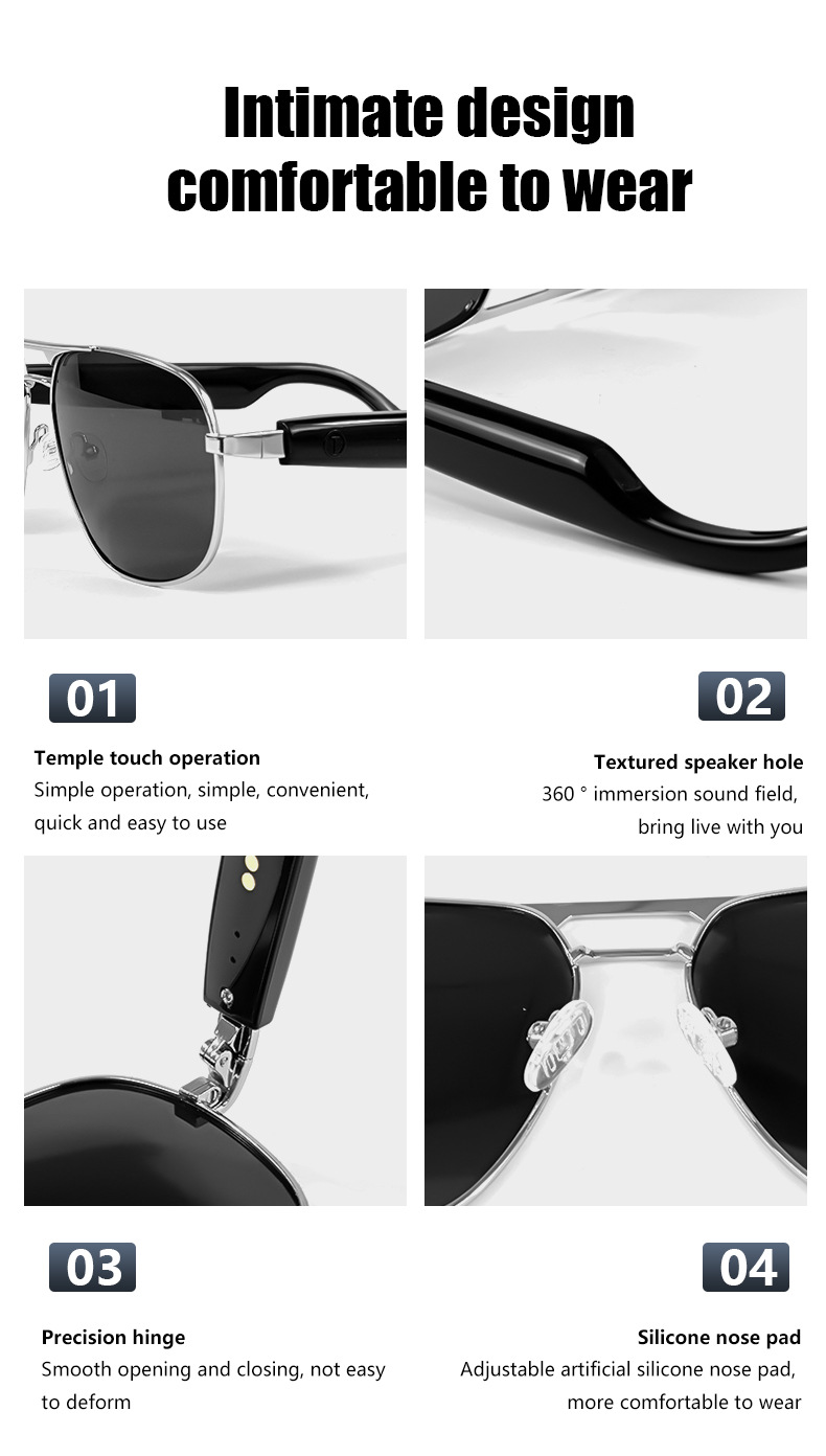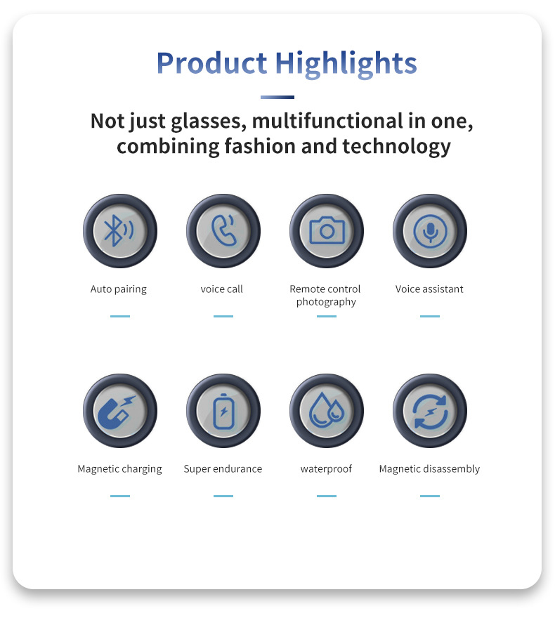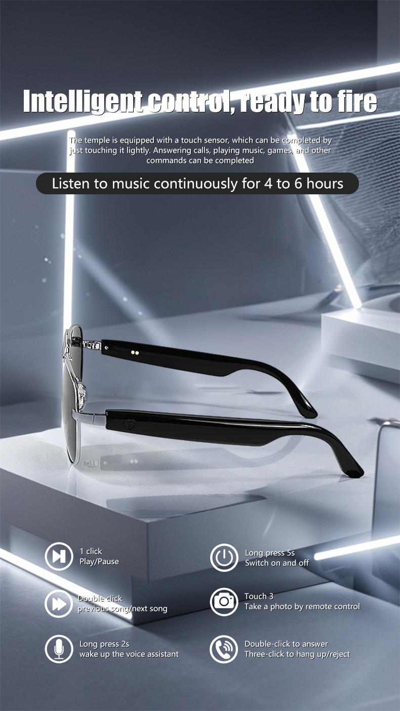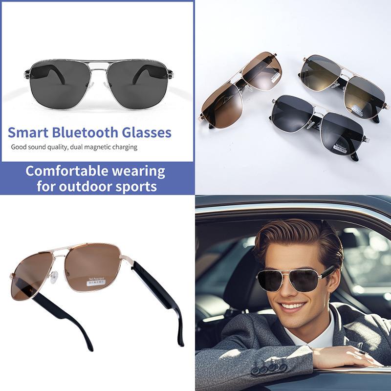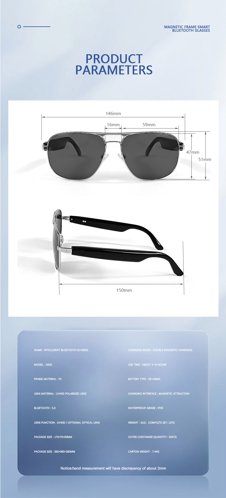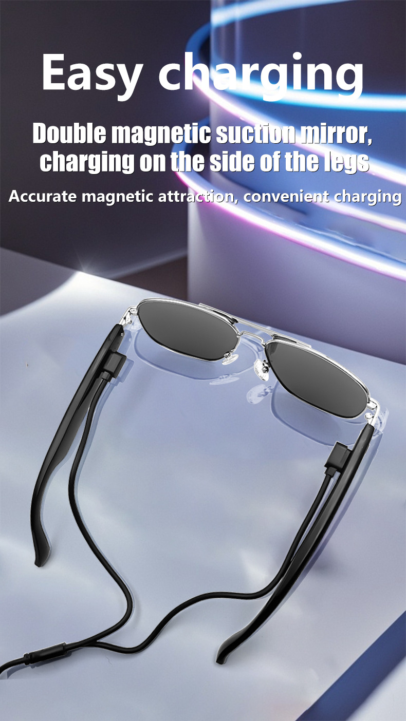 Cross-border smart Bluetooth audio glasses GS02 remote control camera magnetic charging classic frame sunglasses listen to music calls