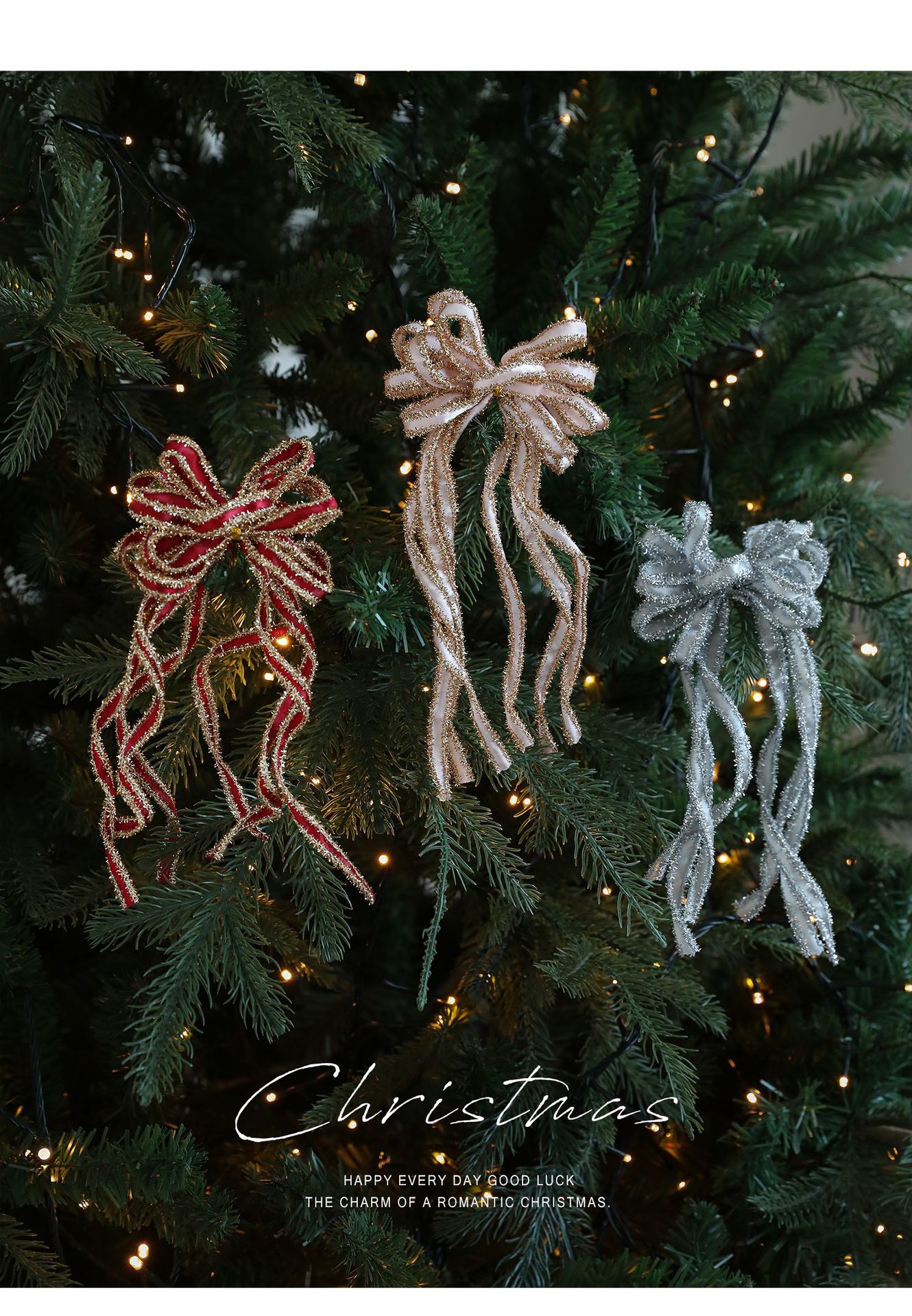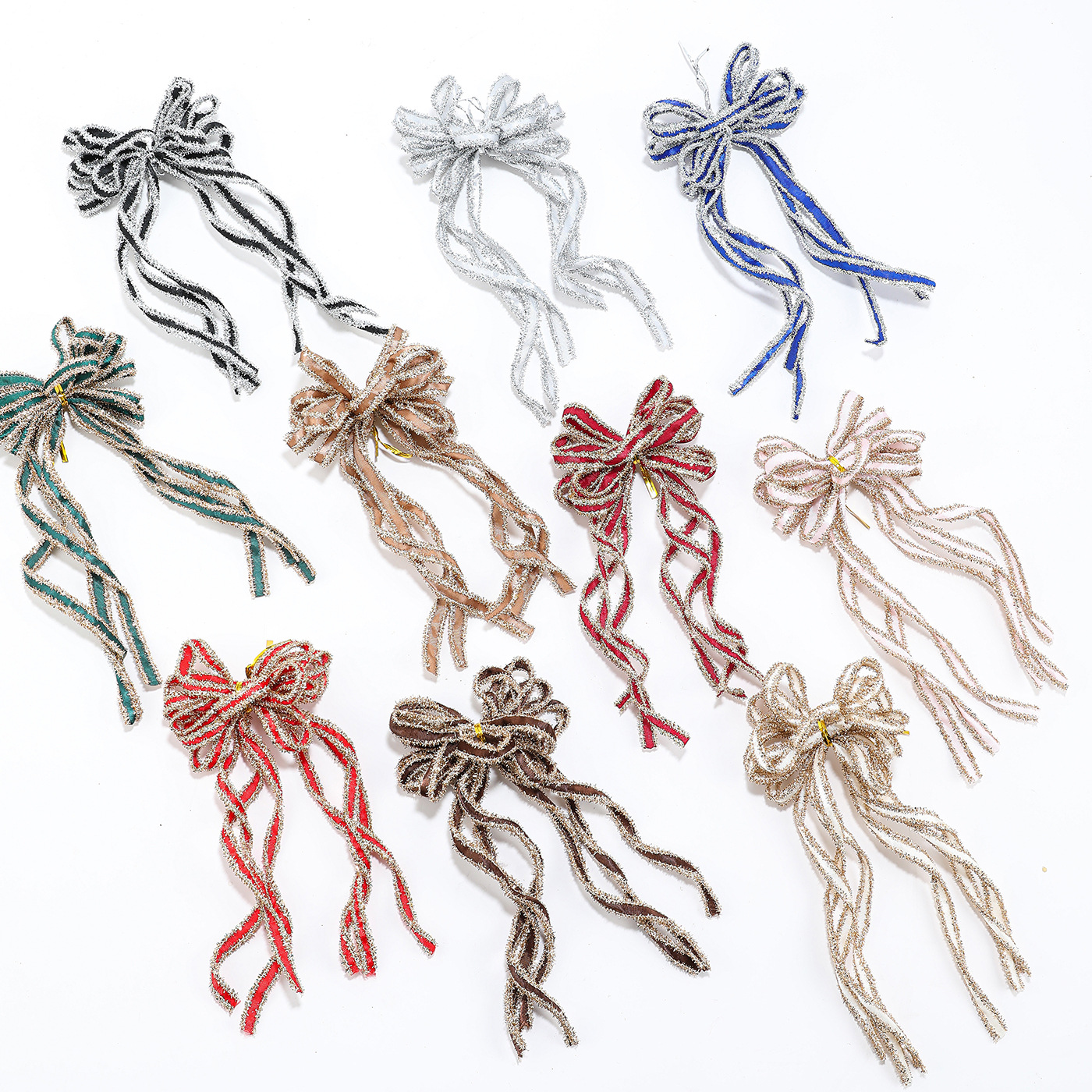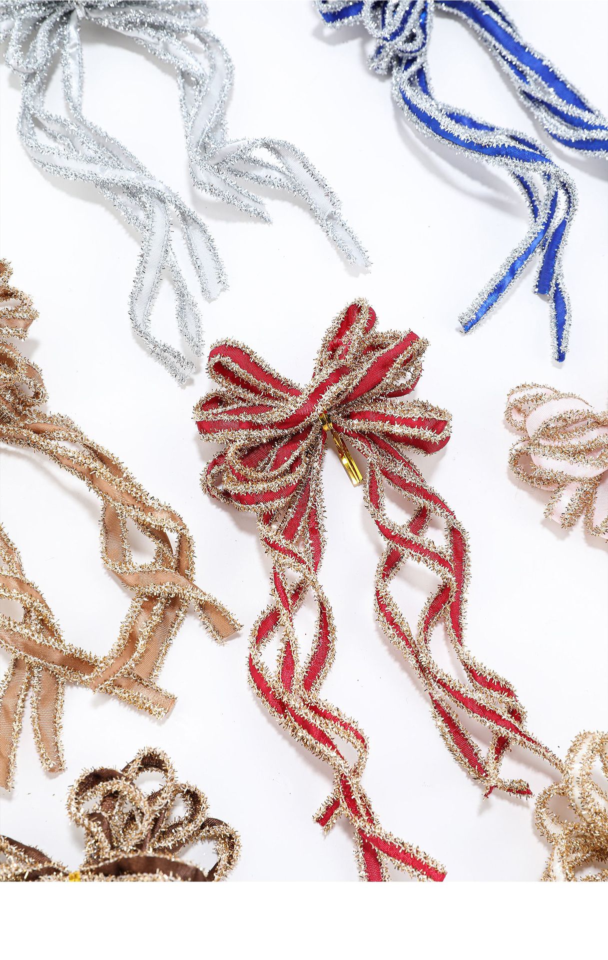 New Christmas Bow Holiday Decorative Props: Christmas Tree Decorative Pendant, Ornament Bow Polyester Ribbon