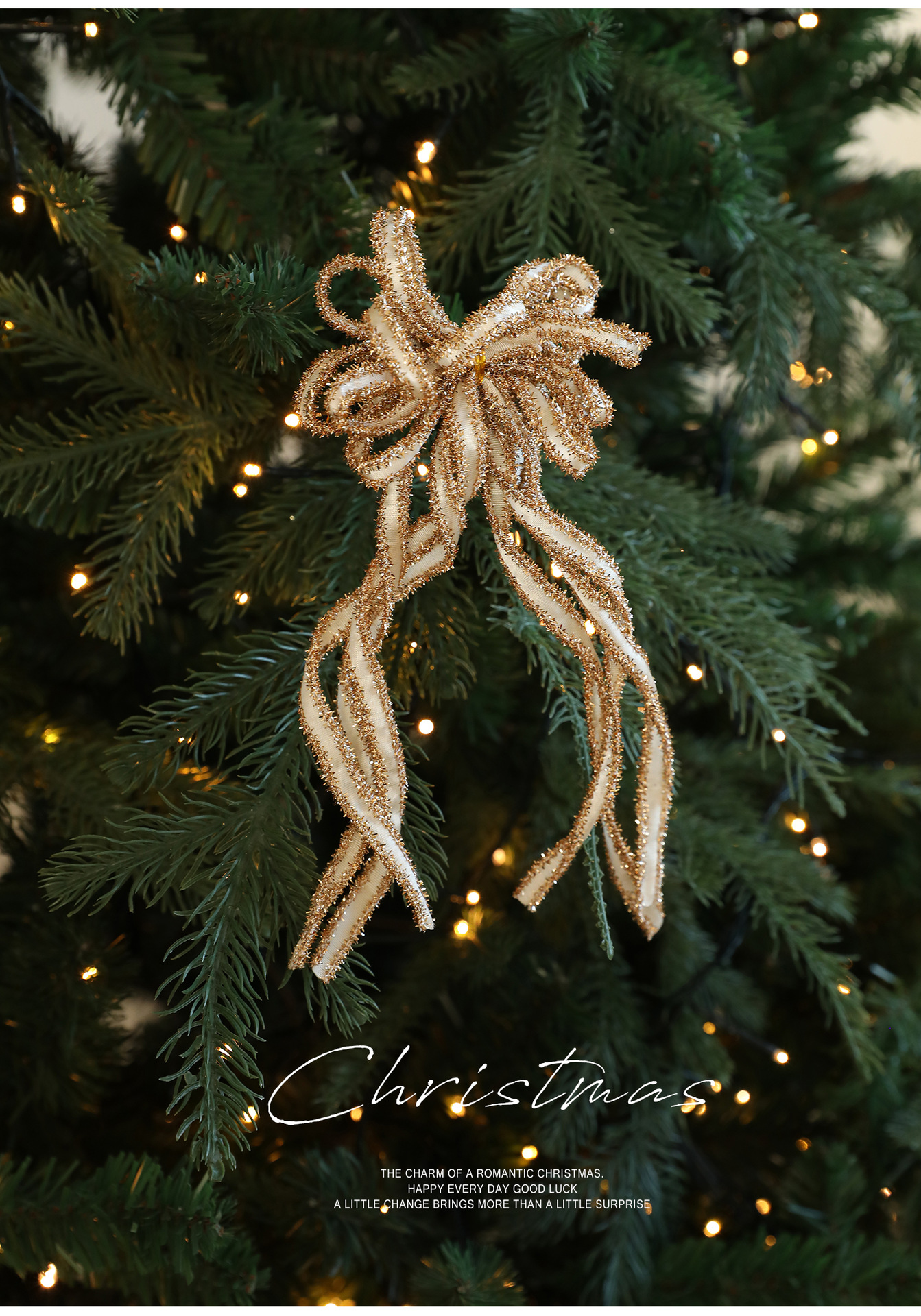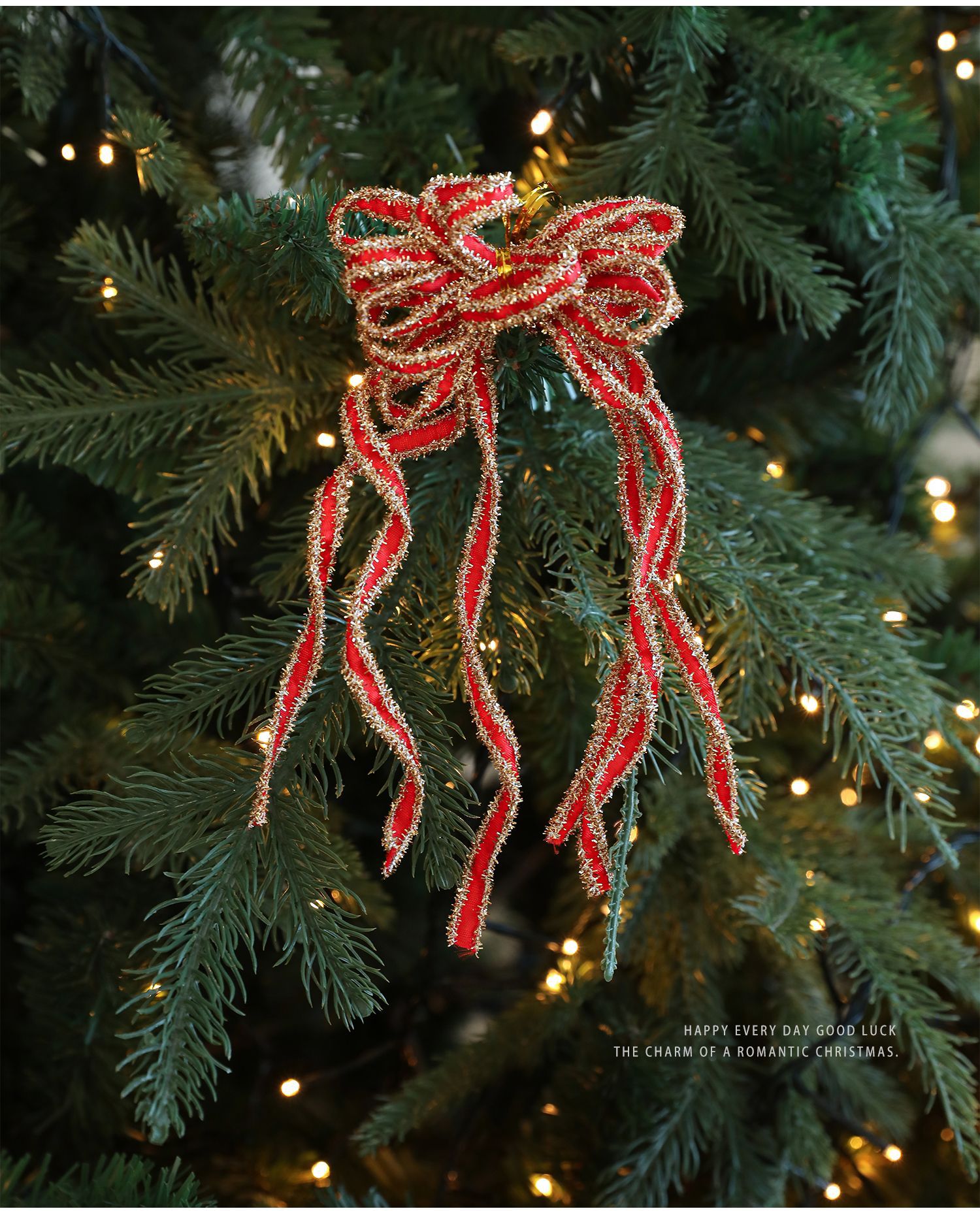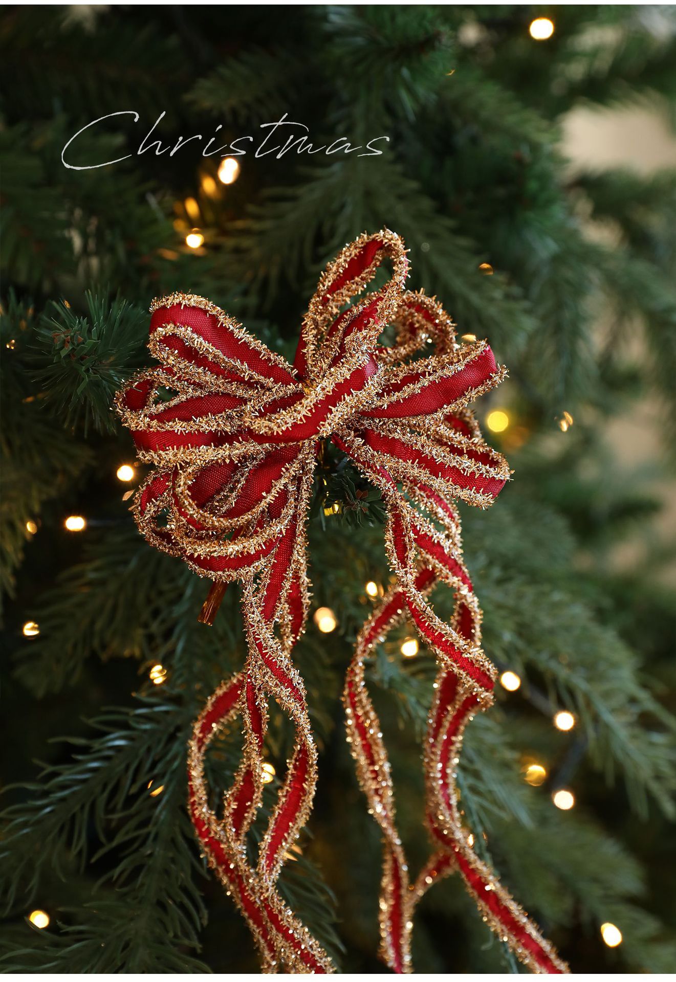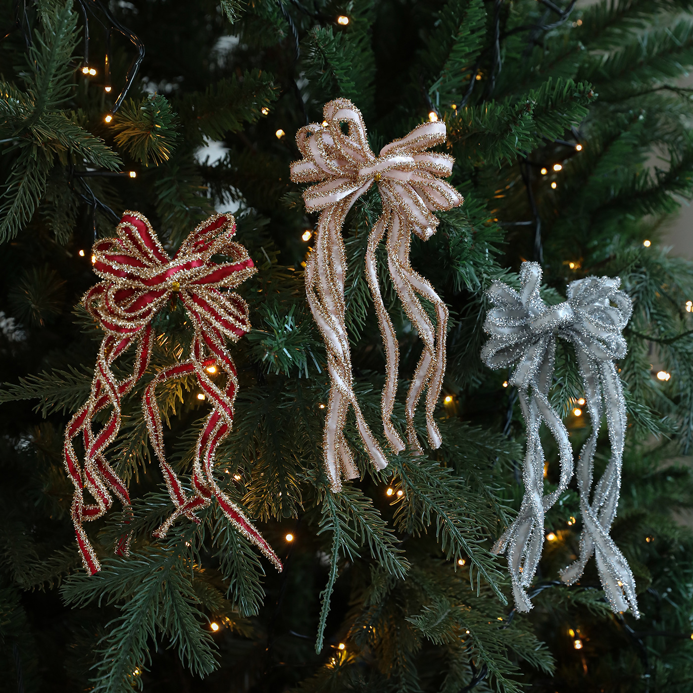 New Christmas Bow Holiday Decorative Props: Christmas Tree Decorative Pendant, Ornament Bow Polyester Ribbon