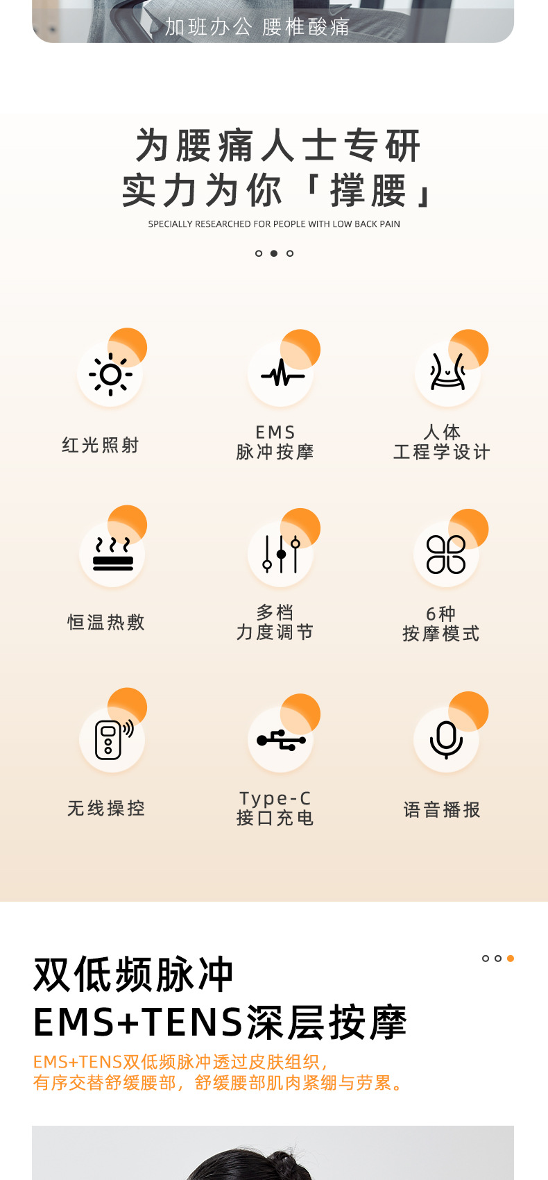 Waist massager, lumbar massager, infrared hot compress, lumbar and abdominal massager, home low-frequency pulse lumbar massager