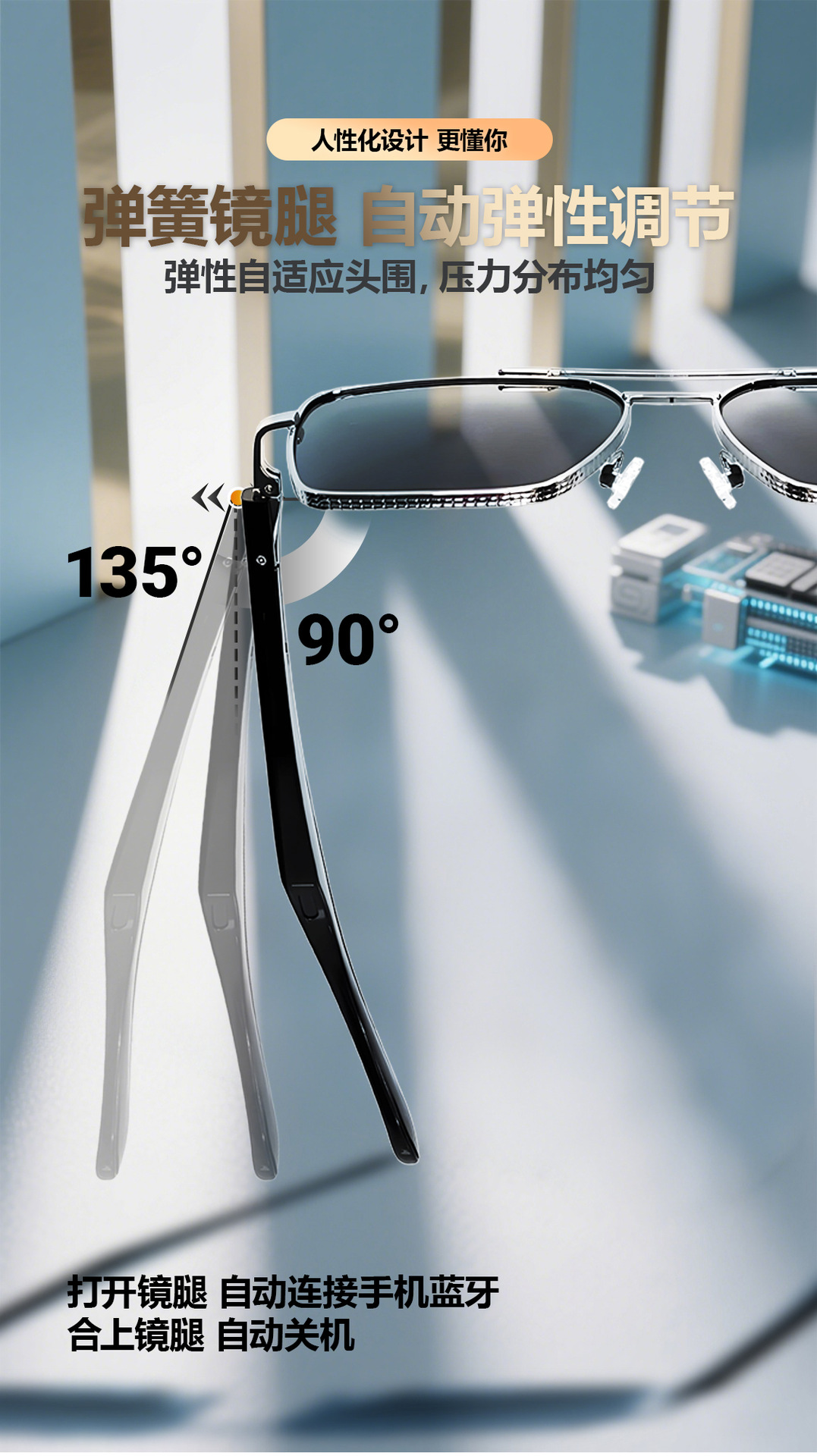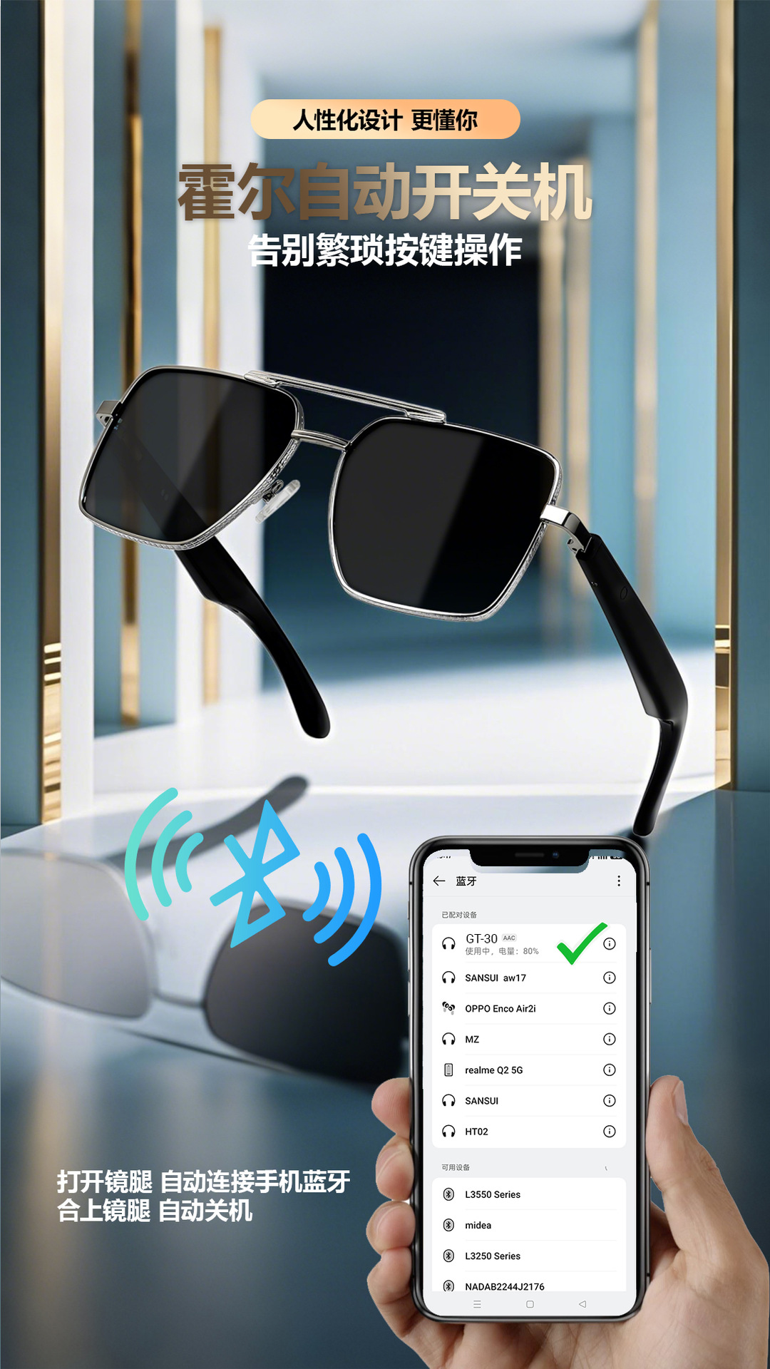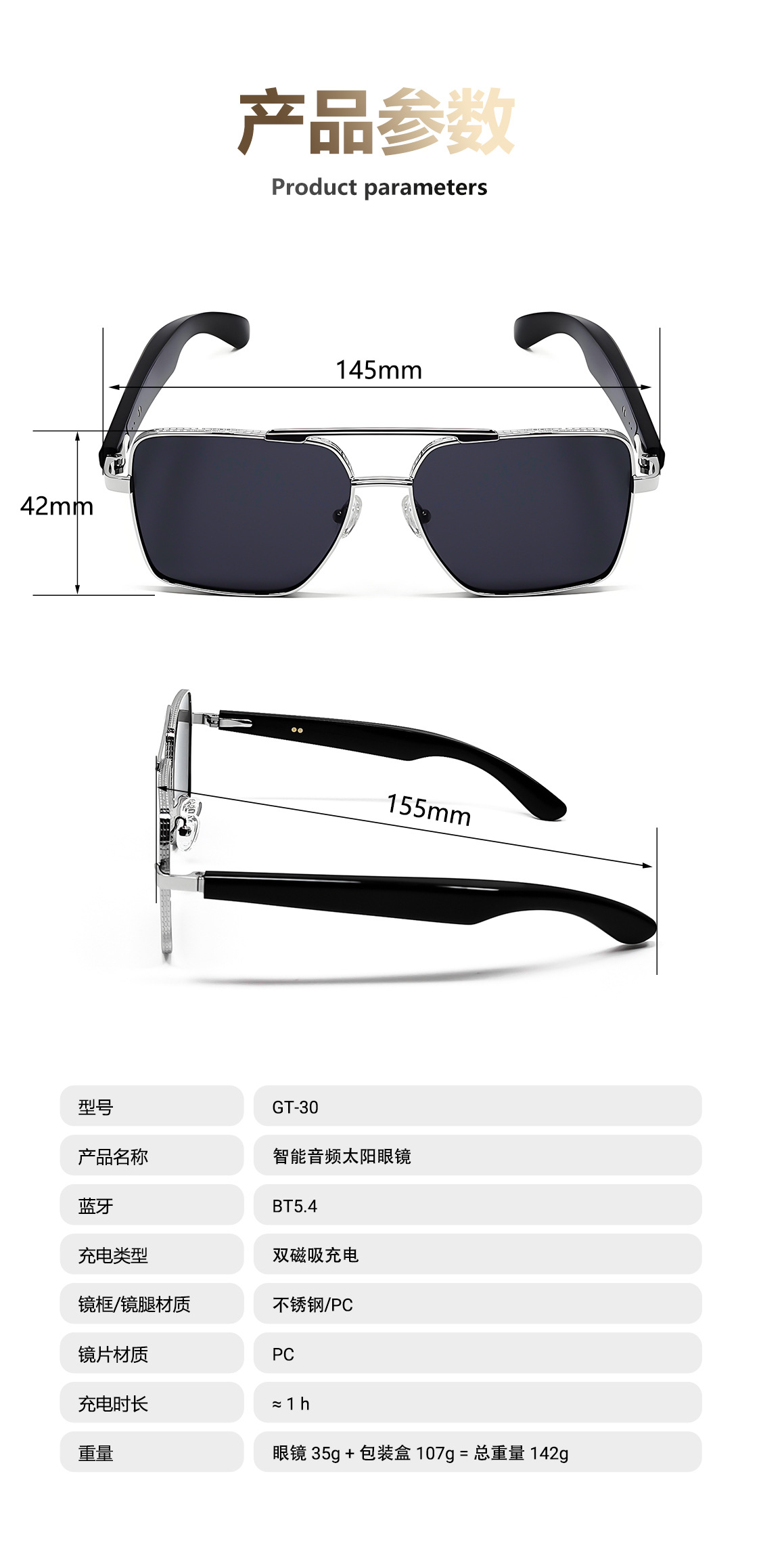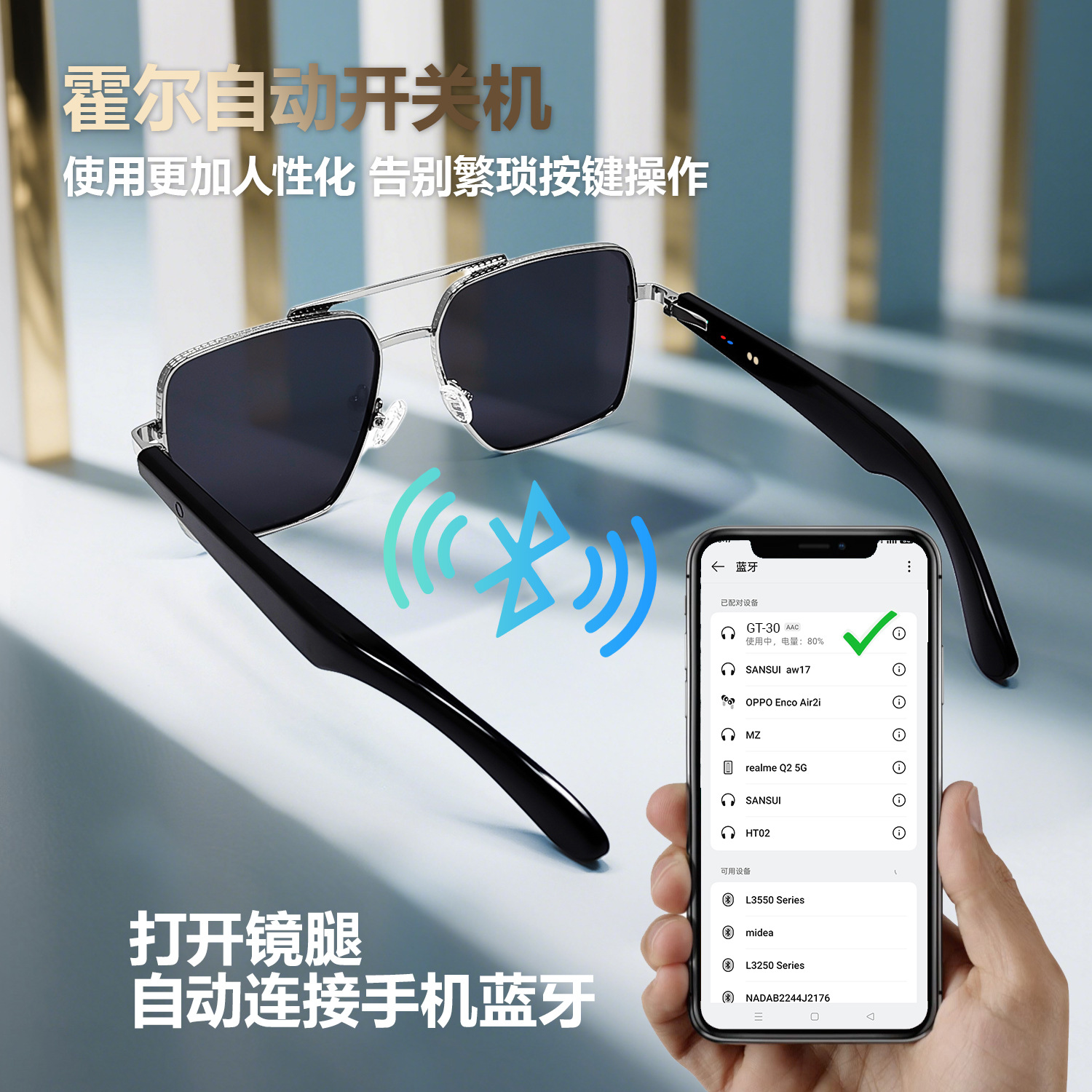 GT30 automatic on/off Bluetooth glasses metal spring hinge design AI smart glasses listening to songs and call glasses
