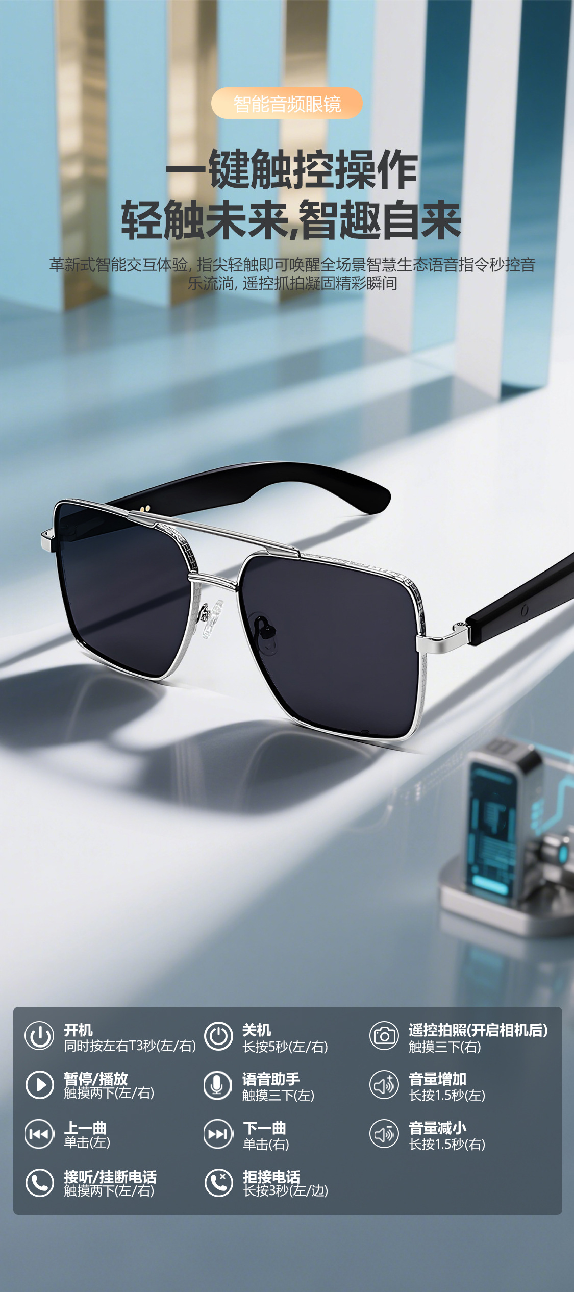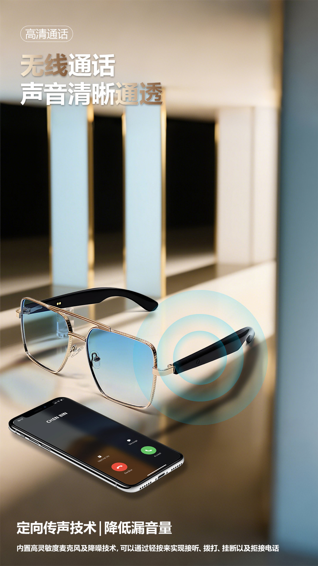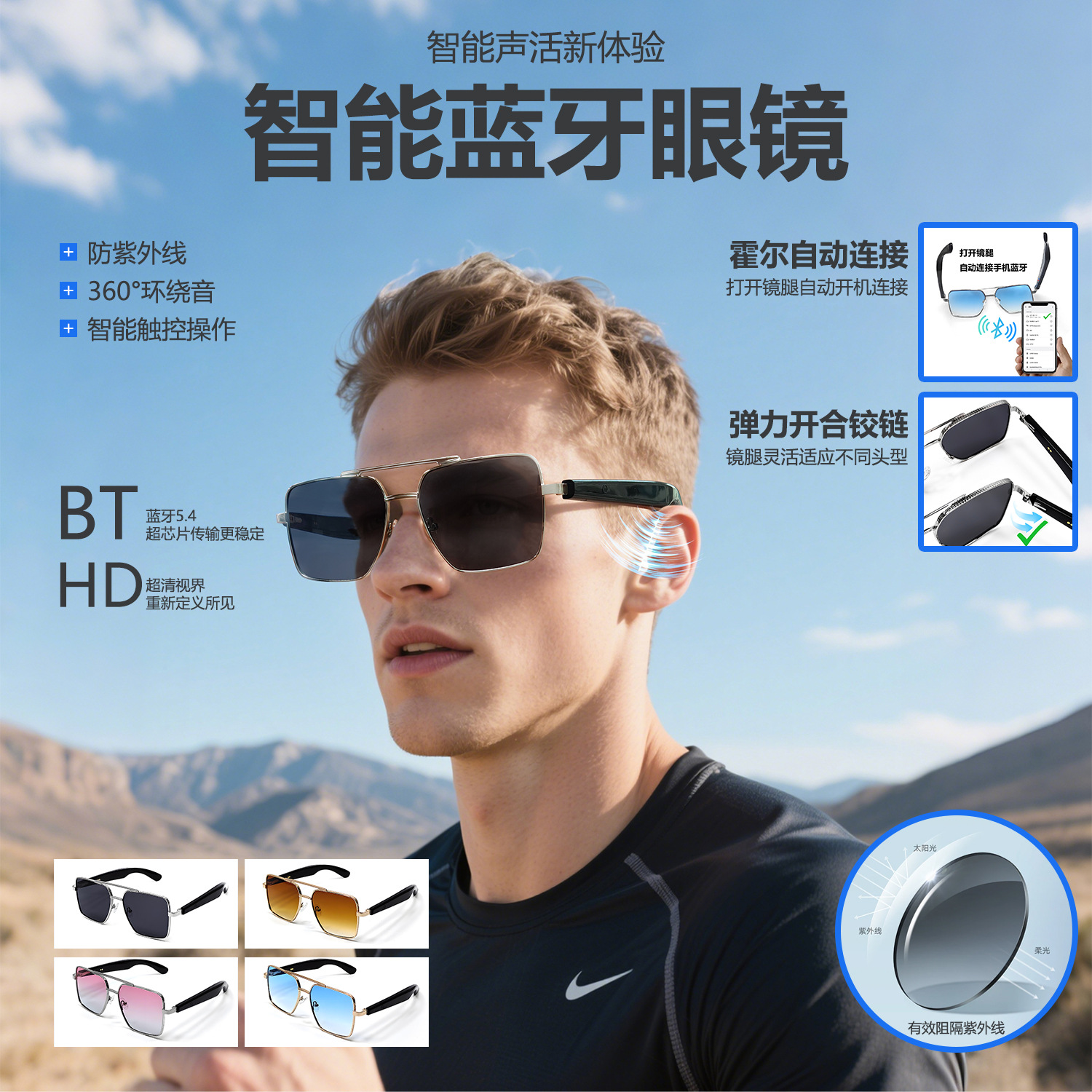 GT30 automatic on/off Bluetooth glasses metal spring hinge design AI smart glasses listening to songs and call glasses