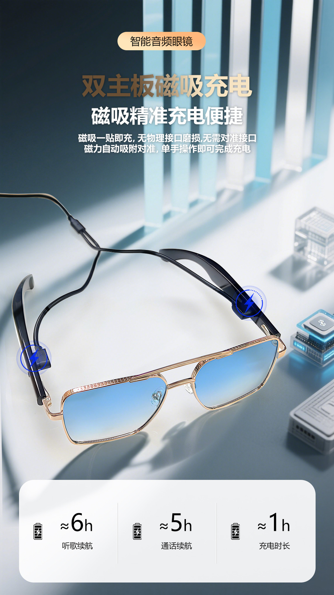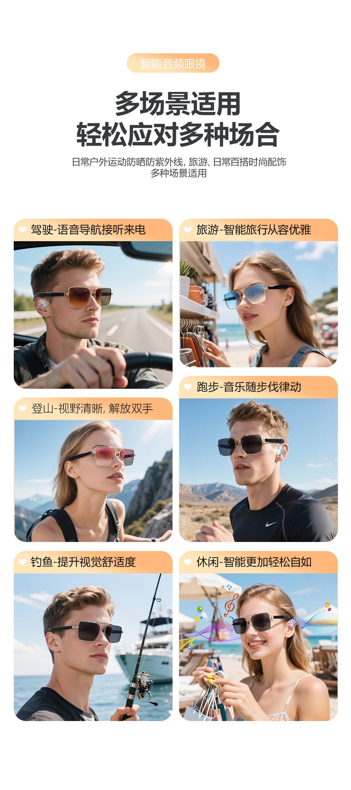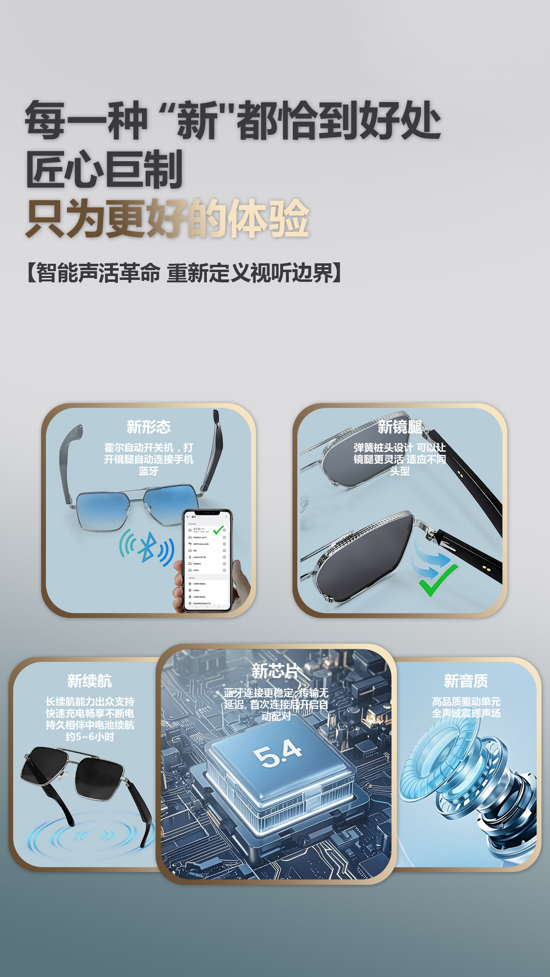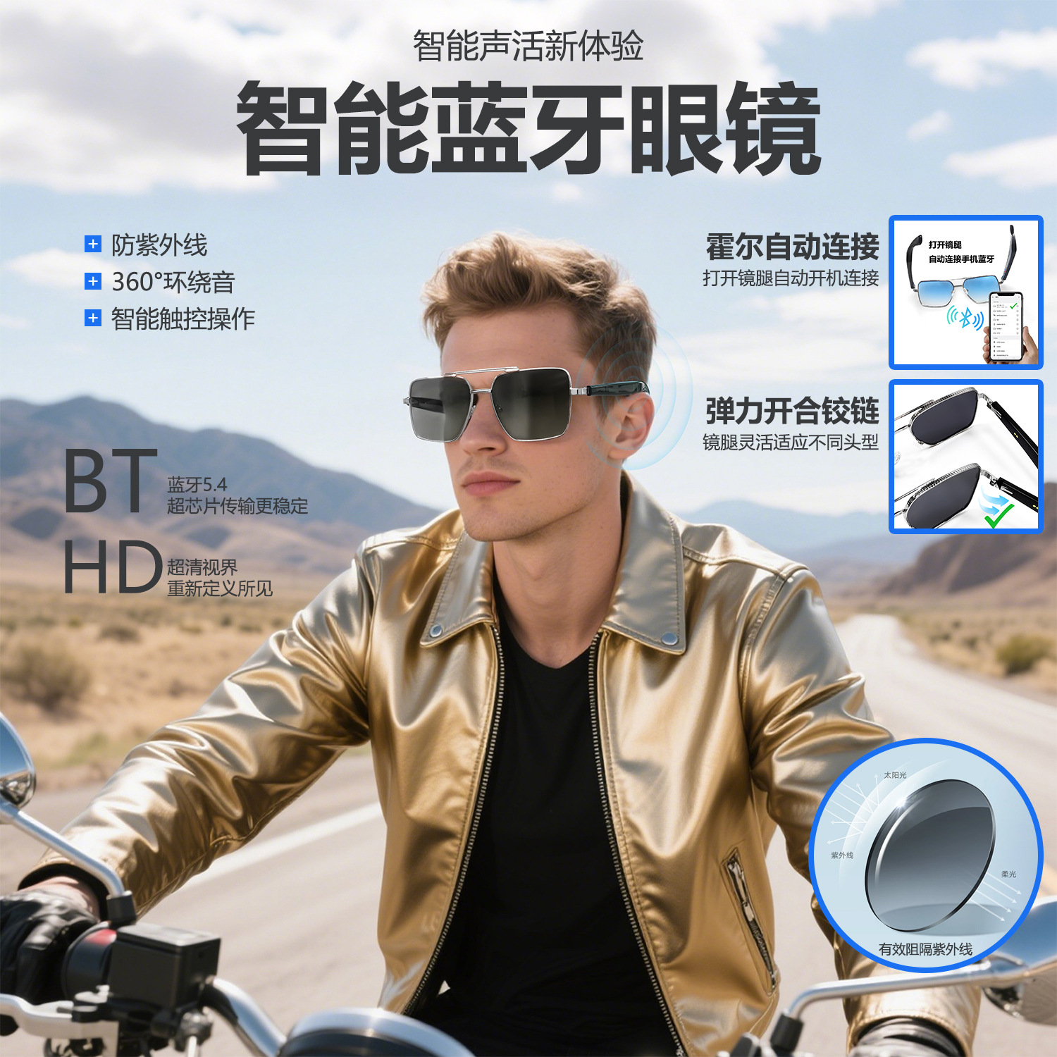 GT30 automatic on/off Bluetooth glasses metal spring hinge design AI smart glasses listening to songs and call glasses