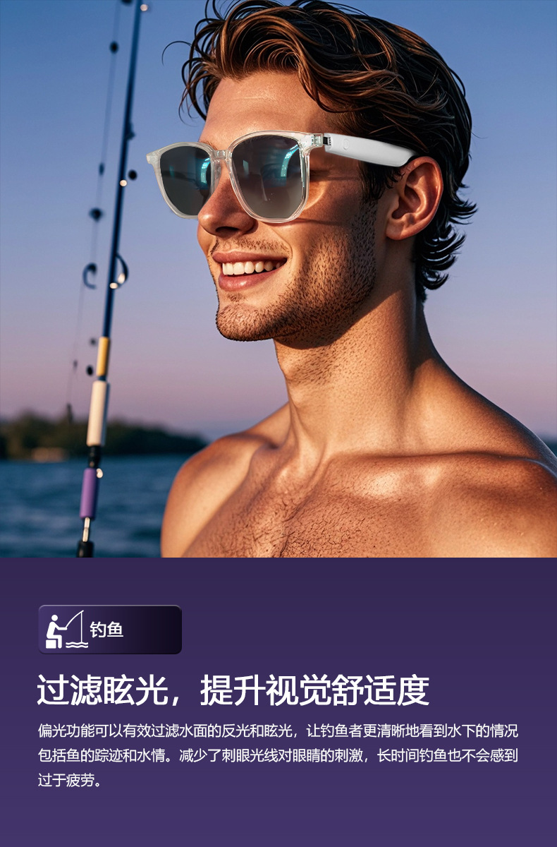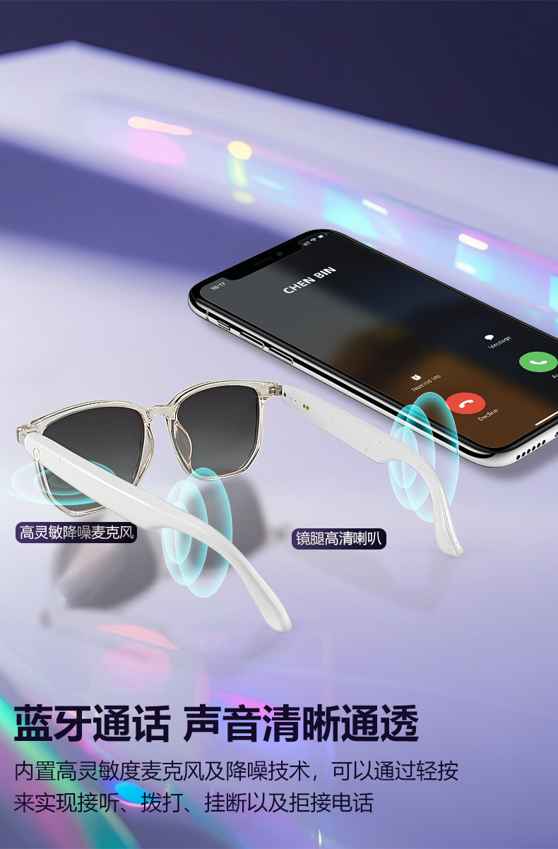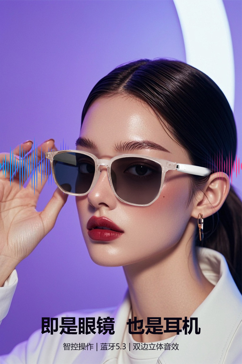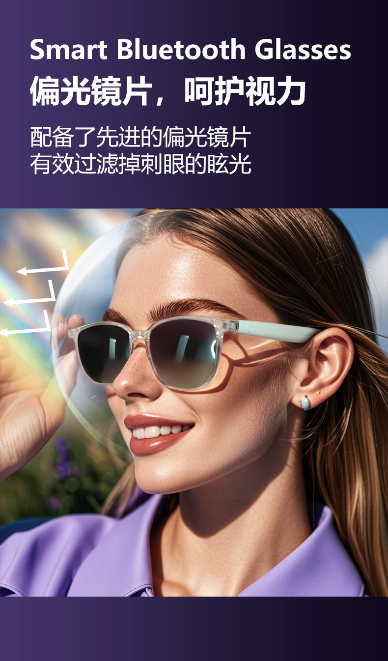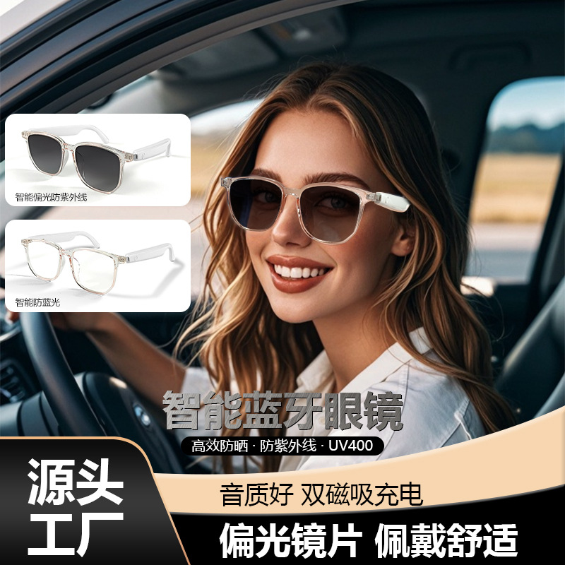 Cross-border smart glasses, Bluetooth glasses, sunglasses, polarized anti-ultraviolet and anti-blue light, listening to songs, calling, transparent lens change