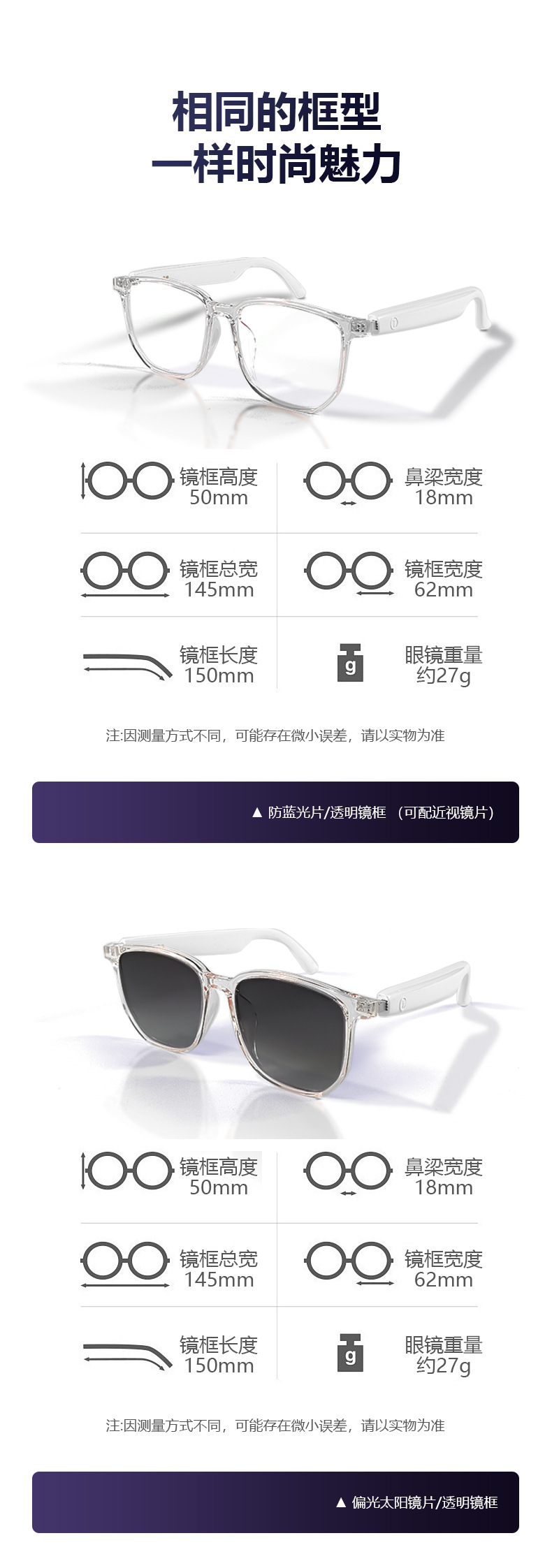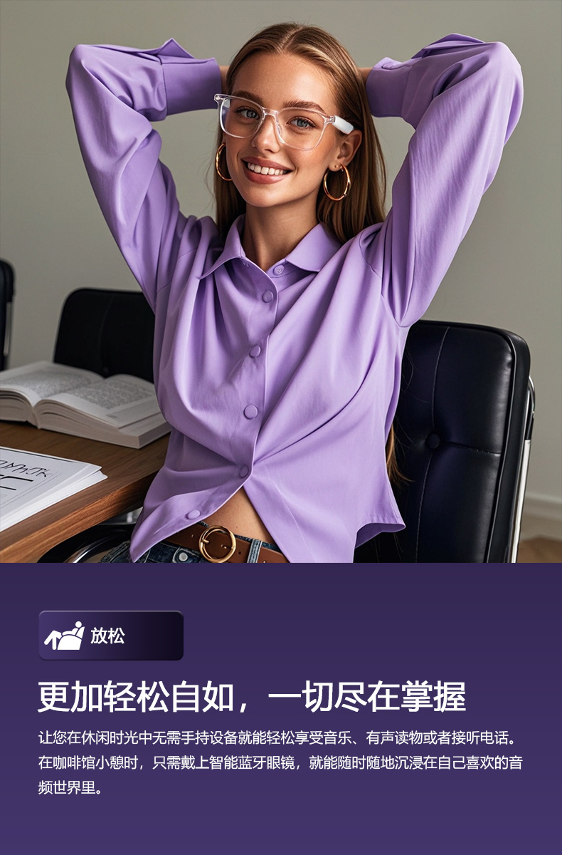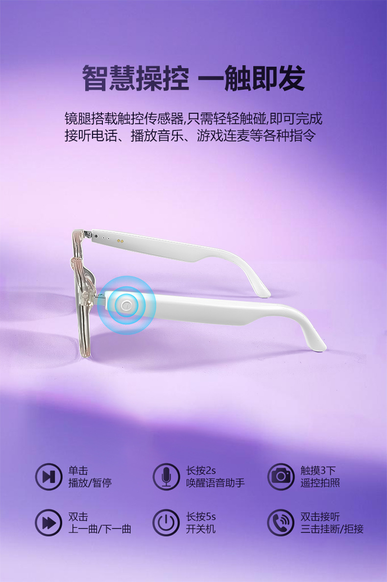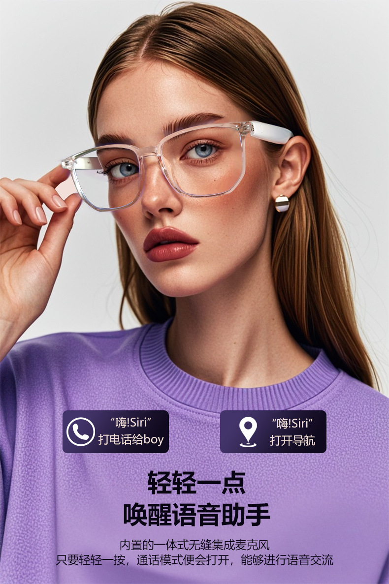 Cross-border smart glasses, Bluetooth glasses, sunglasses, polarized anti-ultraviolet and anti-blue light, listening to songs, calling, transparent lens change