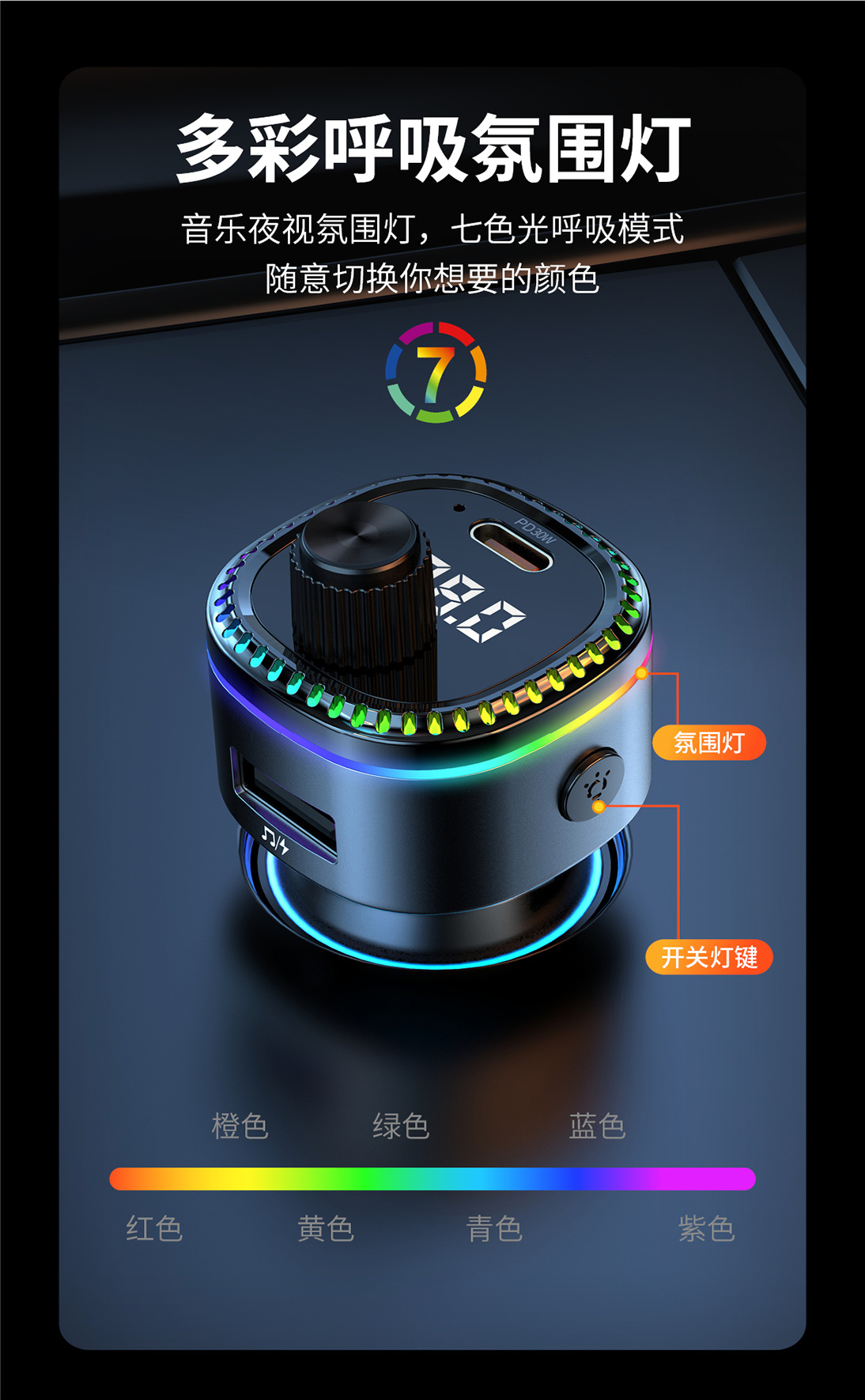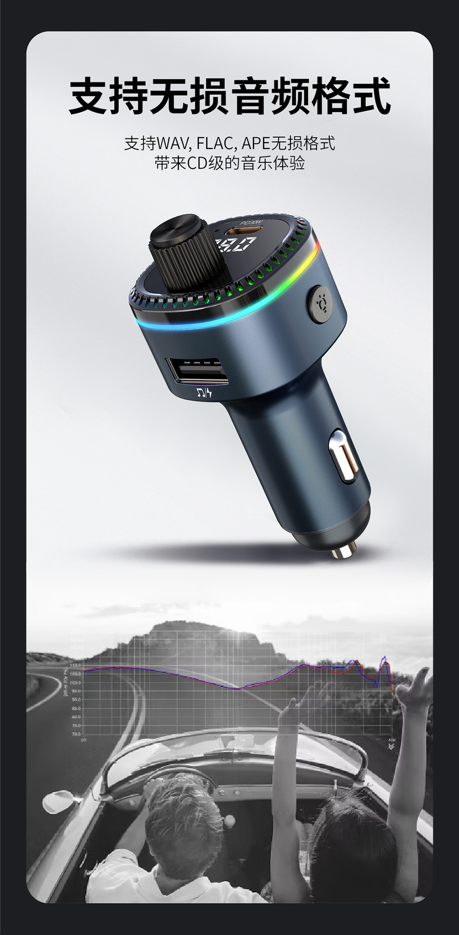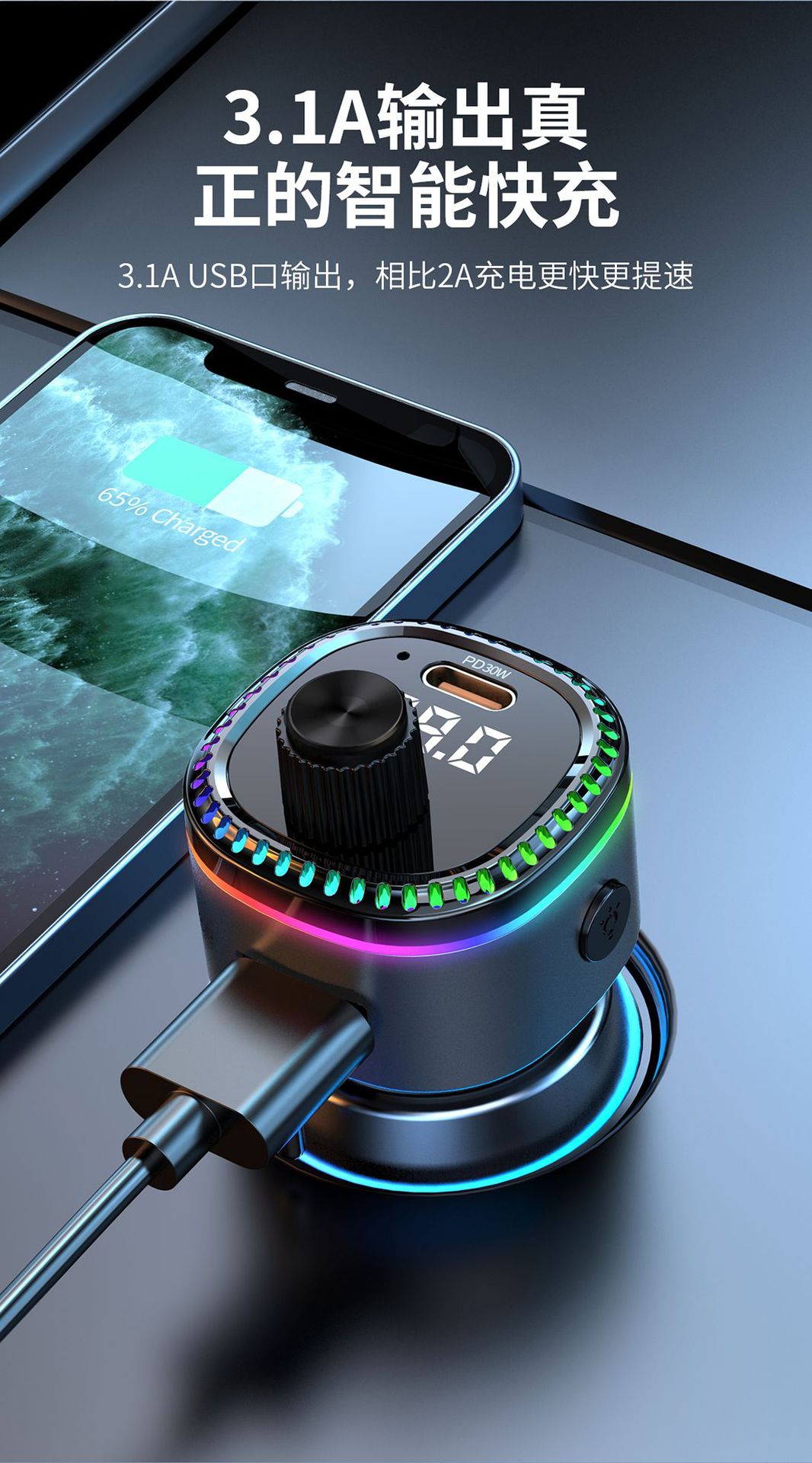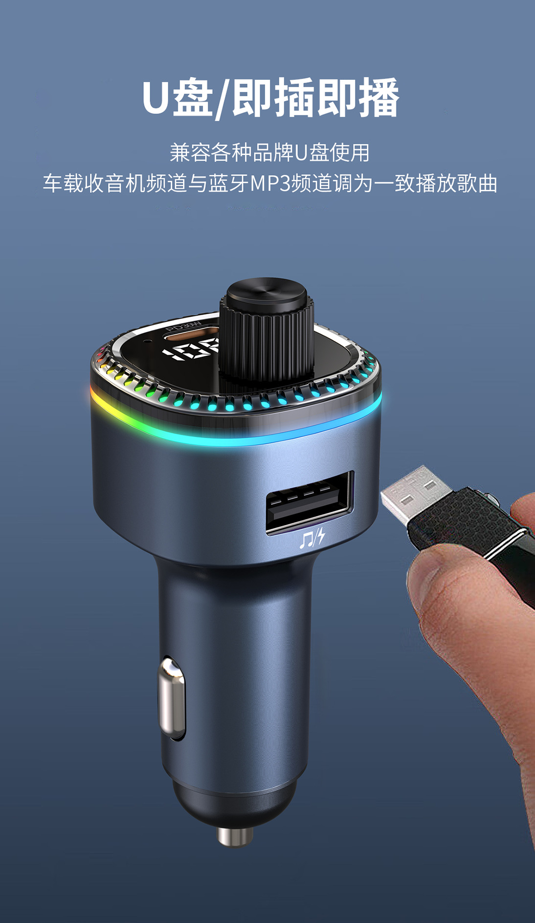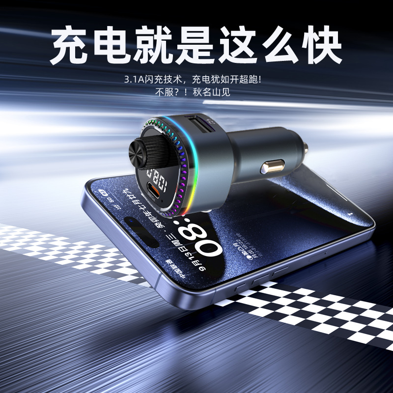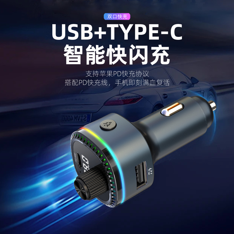 12V universal car charger fast charging Bluetooth mp3 player car cigarette lighter with digital display TypeC