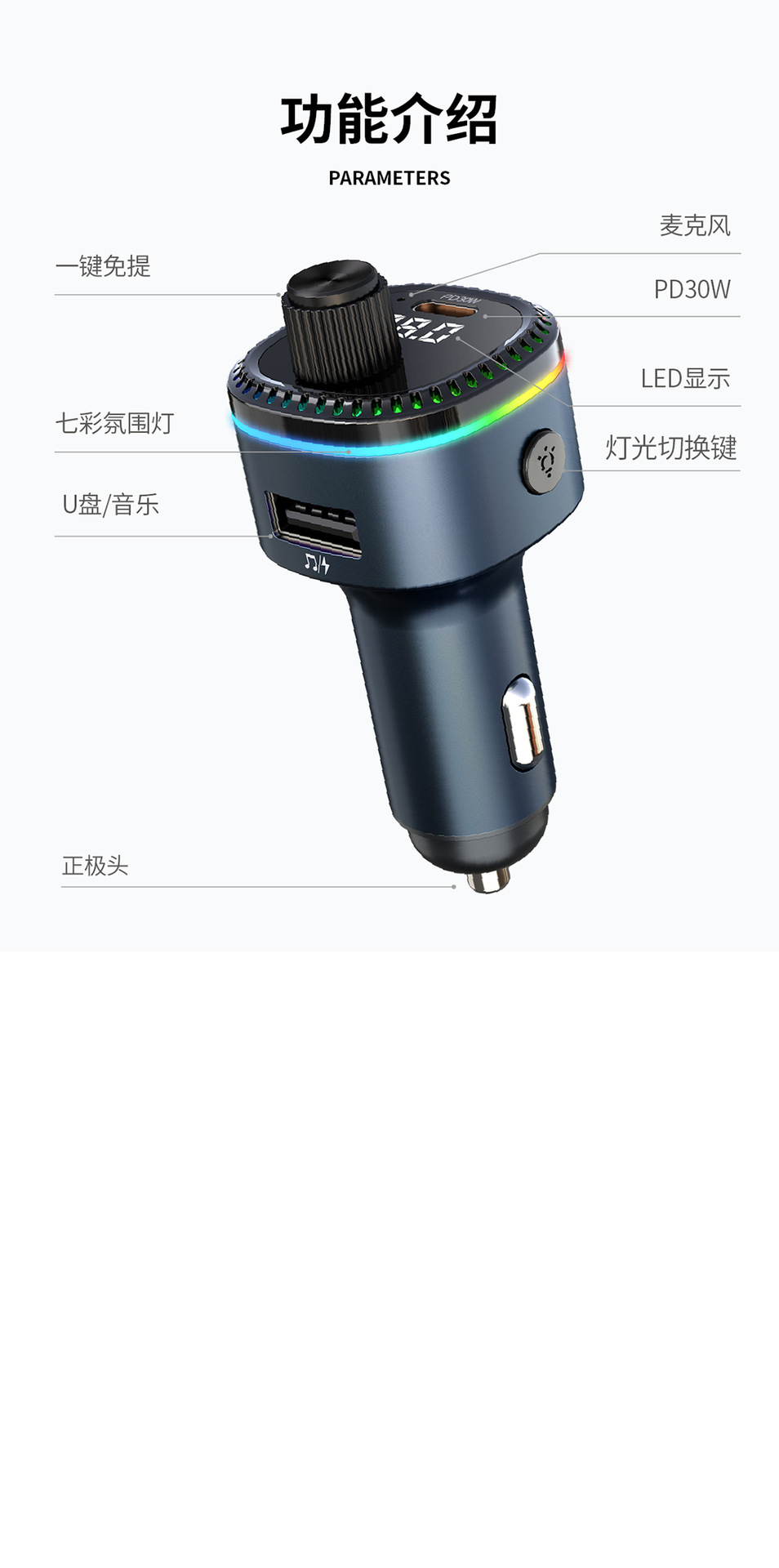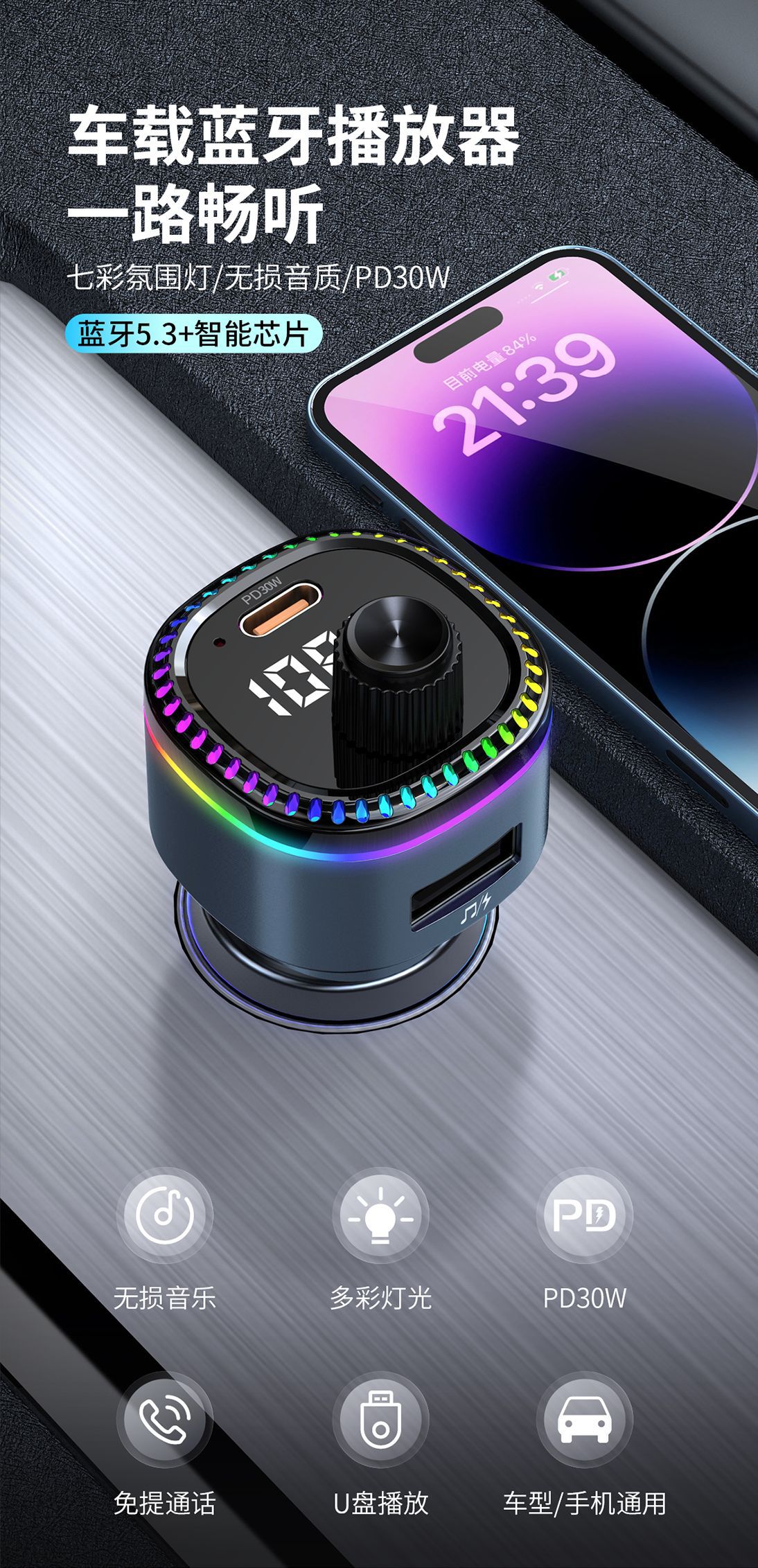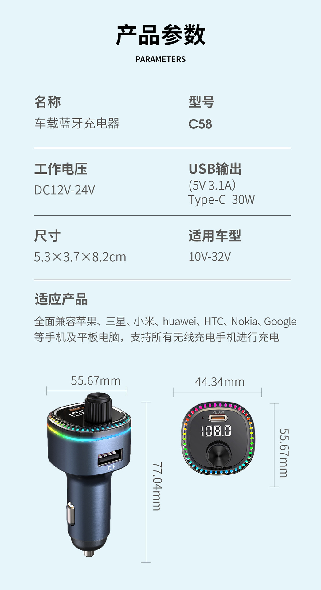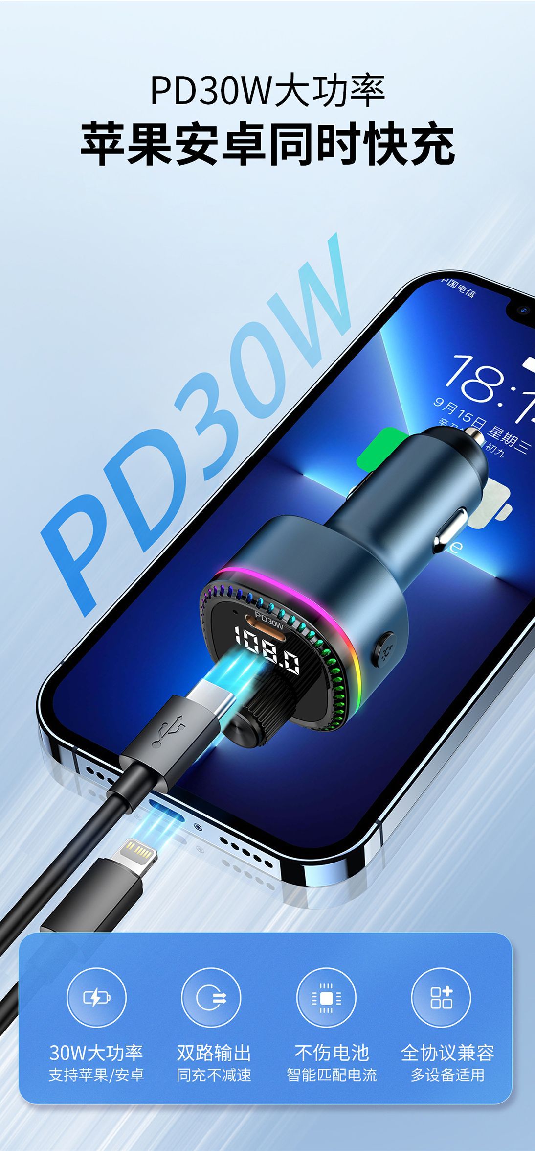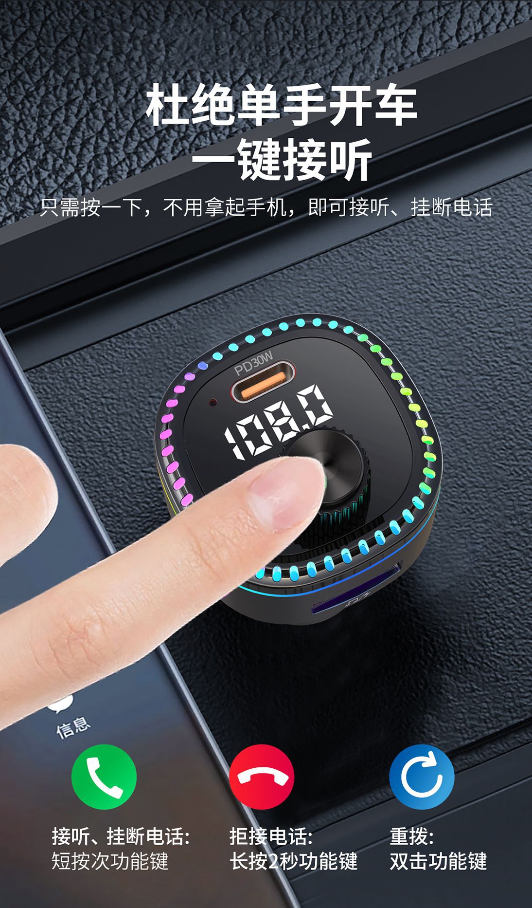 12V universal car charger fast charging Bluetooth mp3 player car cigarette lighter with digital display TypeC