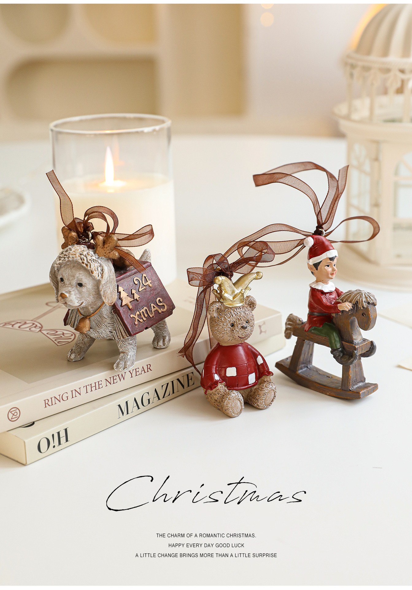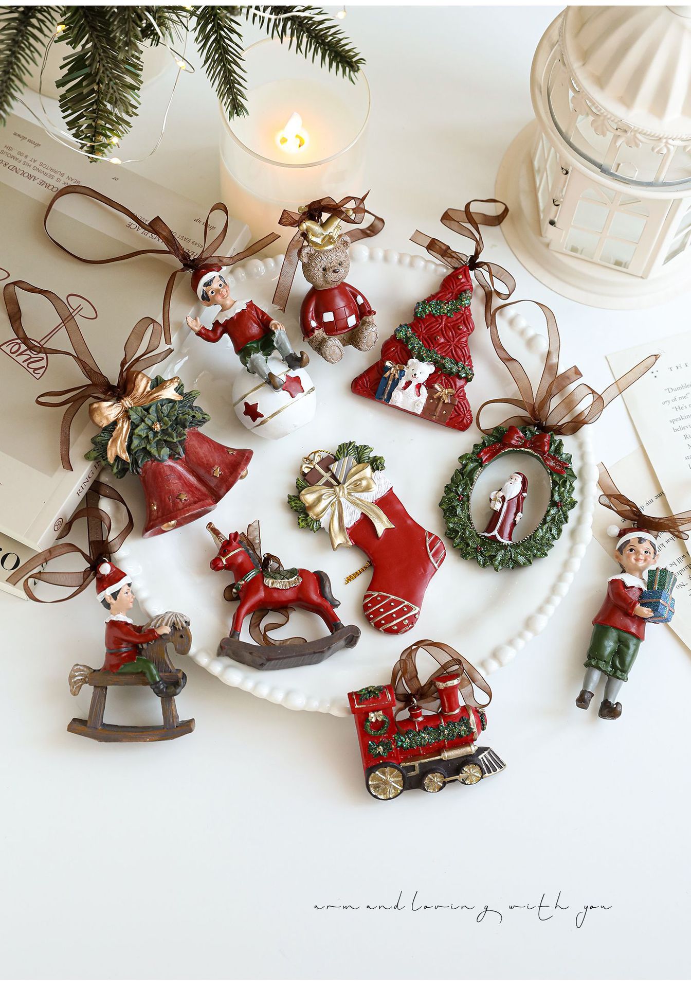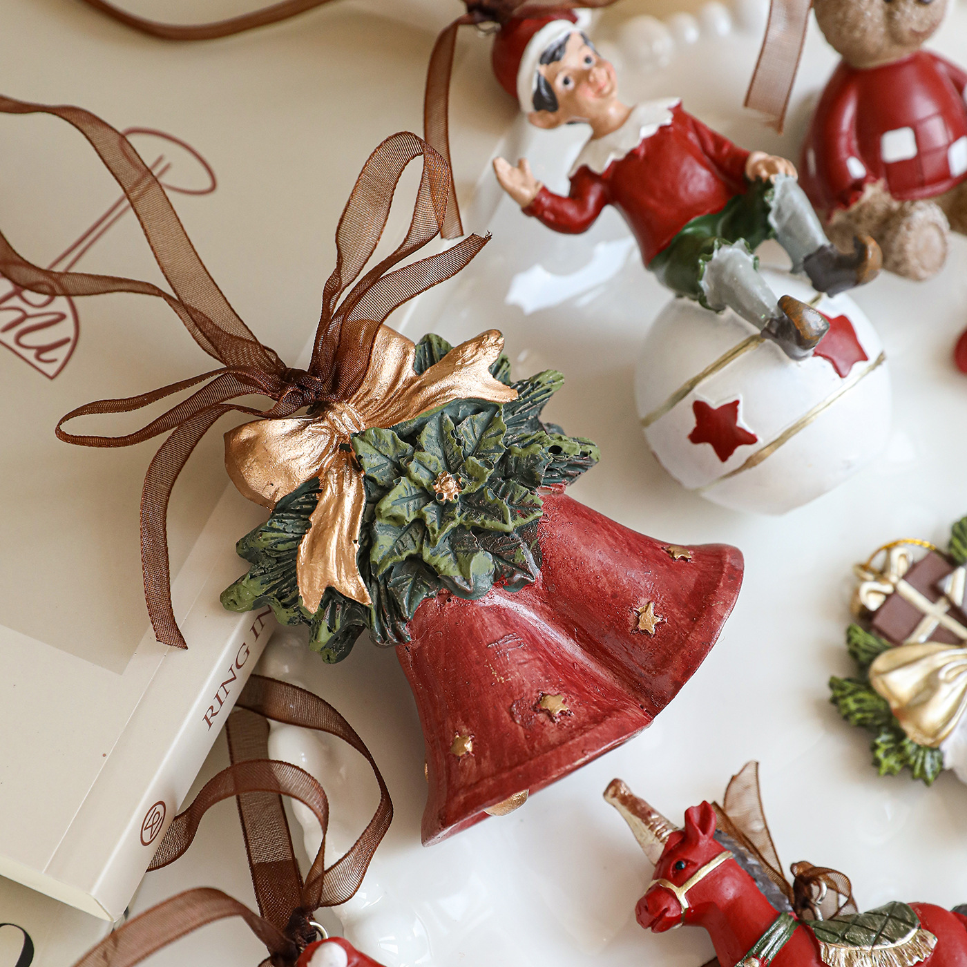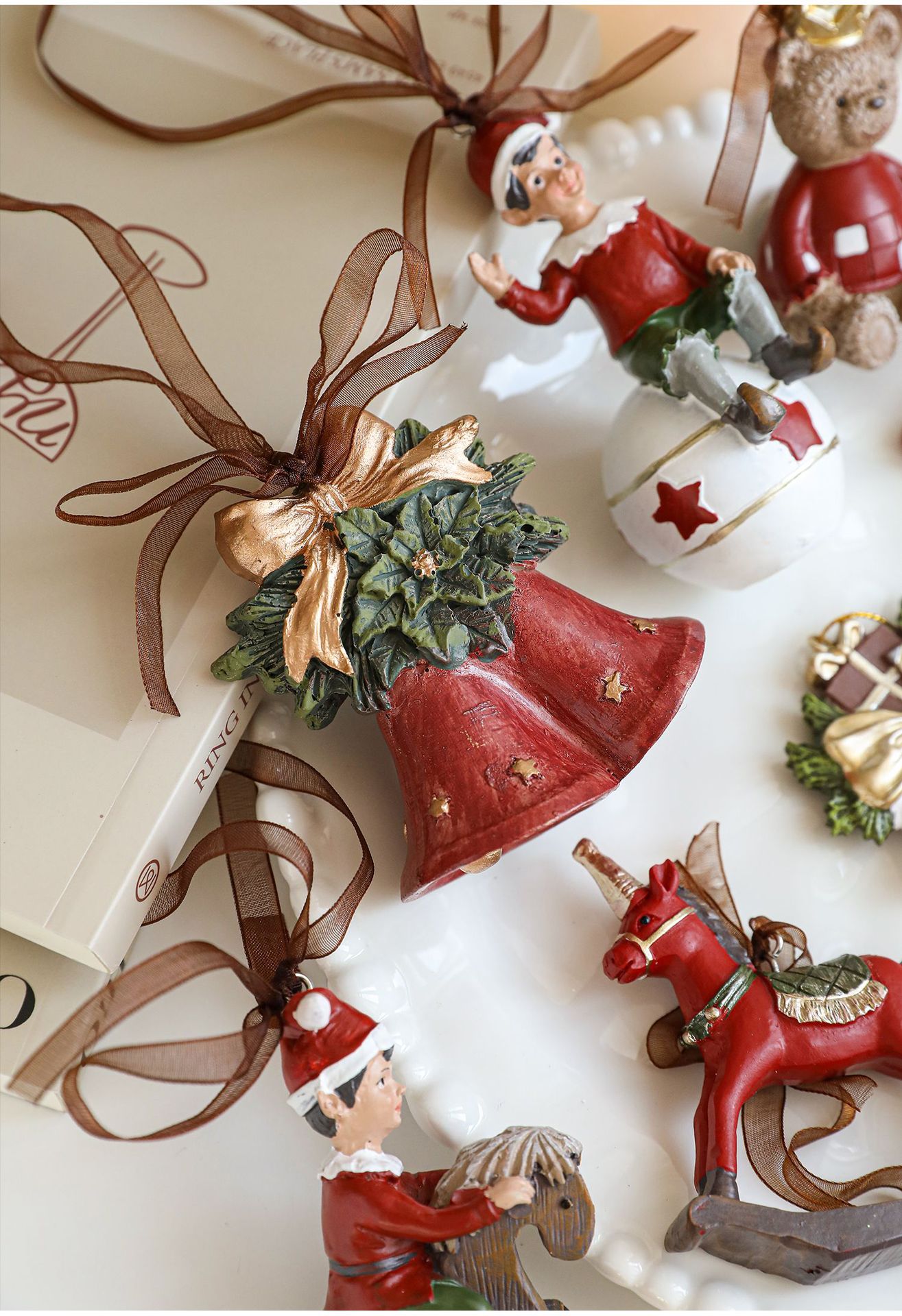 New resin painted pendant Christmas tree decoration color retro three-dimensional bell American cartoon ornament in stock