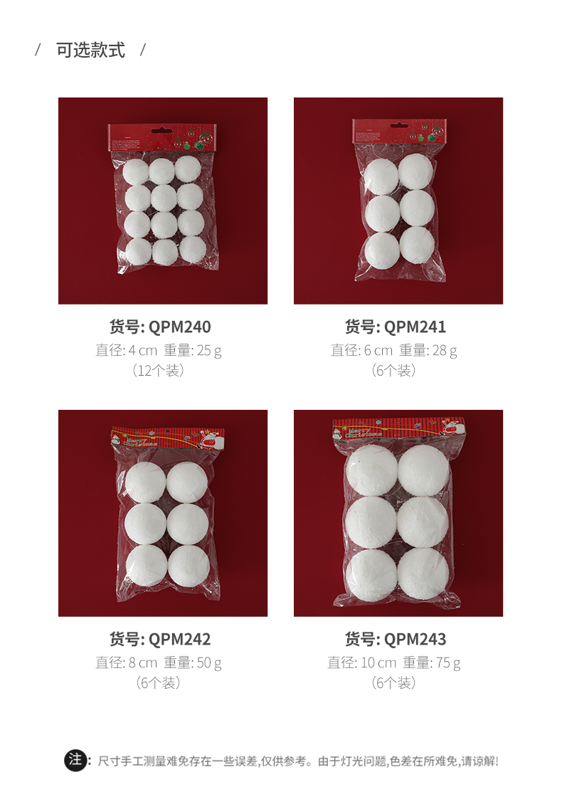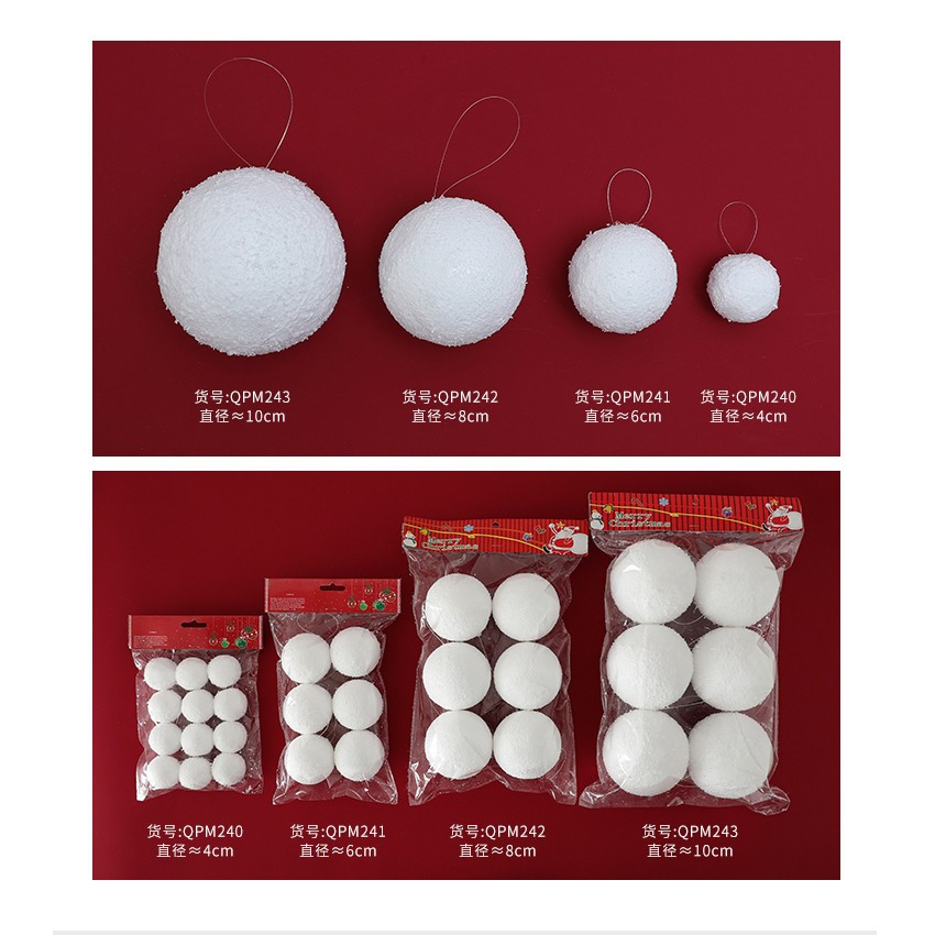 Christmas White Foam Ball Snowball Christmas Tree Decoration Pendant Pendant Hanging Ball Ornament Party Atmosphere Supplies Wholesale