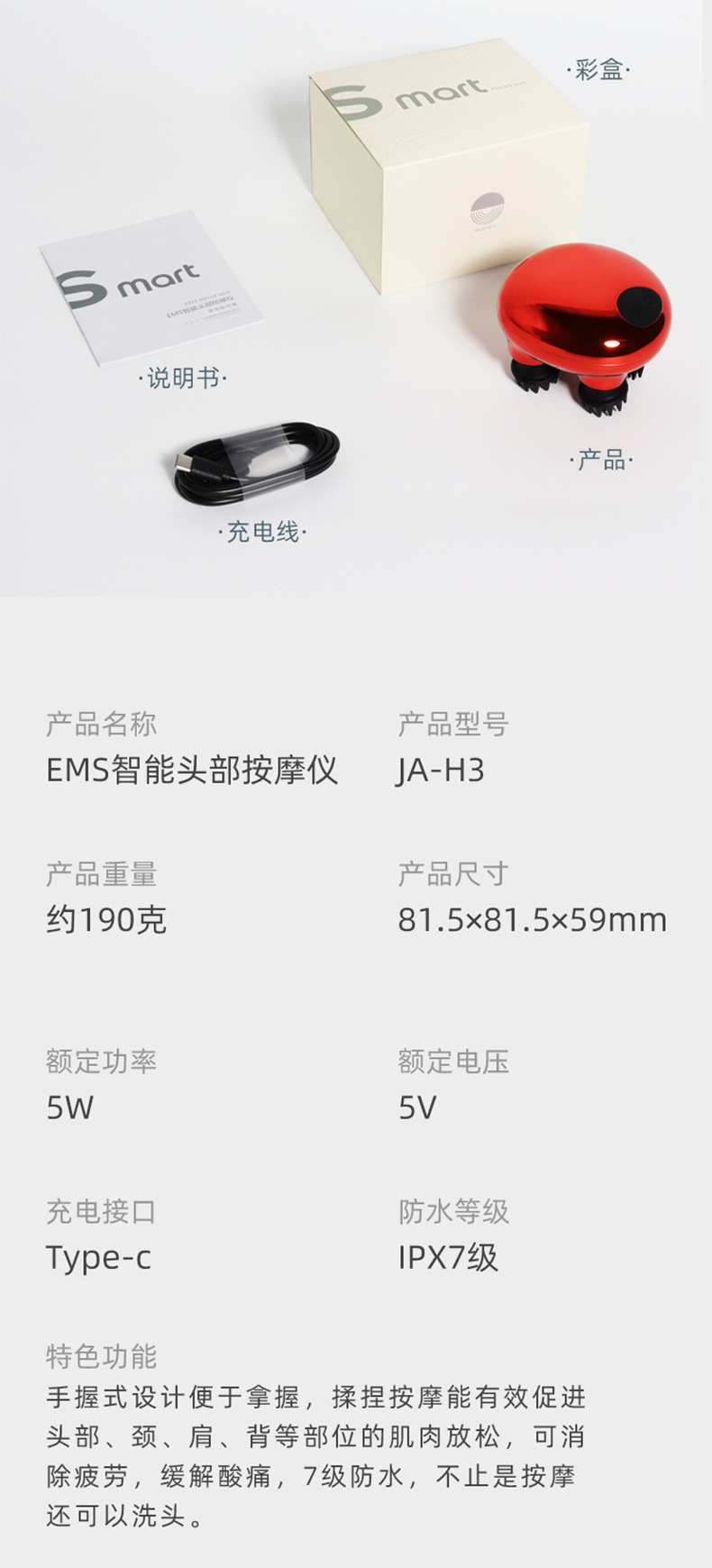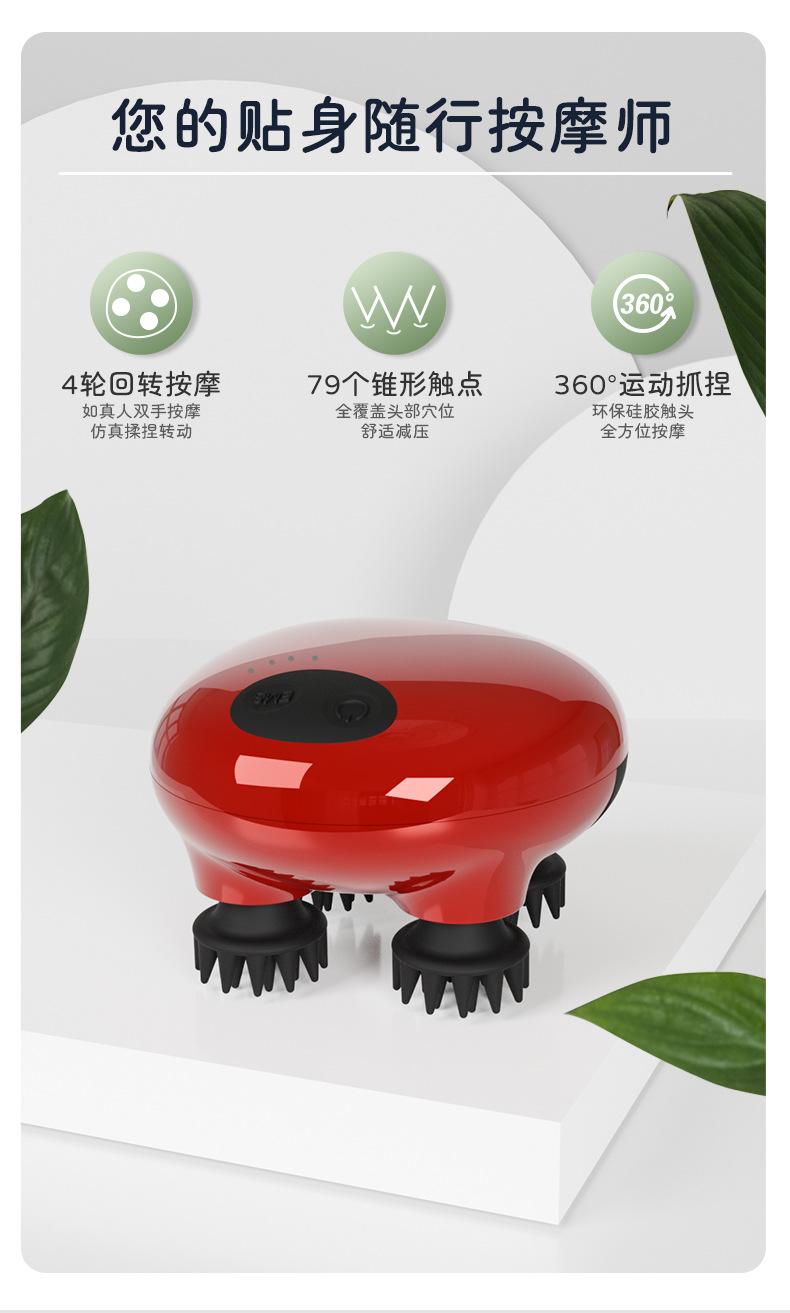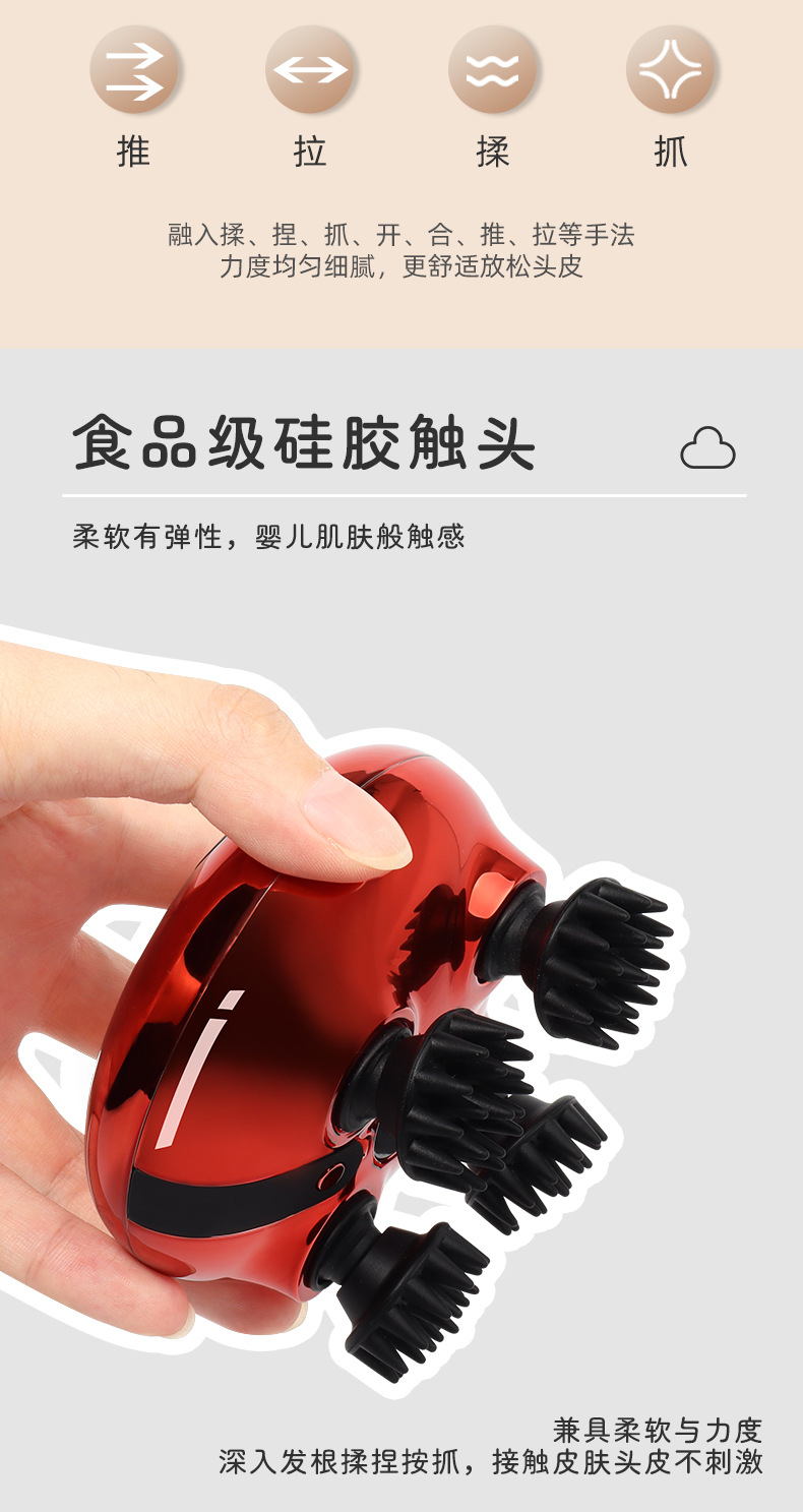 Pulse Head Massager EMS Microcurrent Scalp Massager Charging Red Light Massager Paw Head Therapy Massager