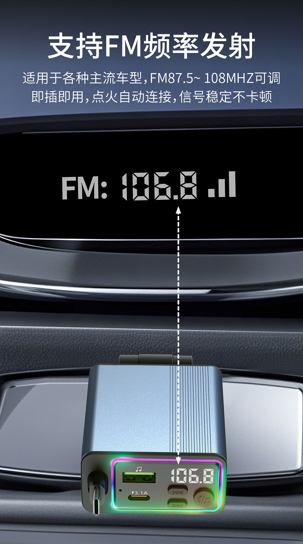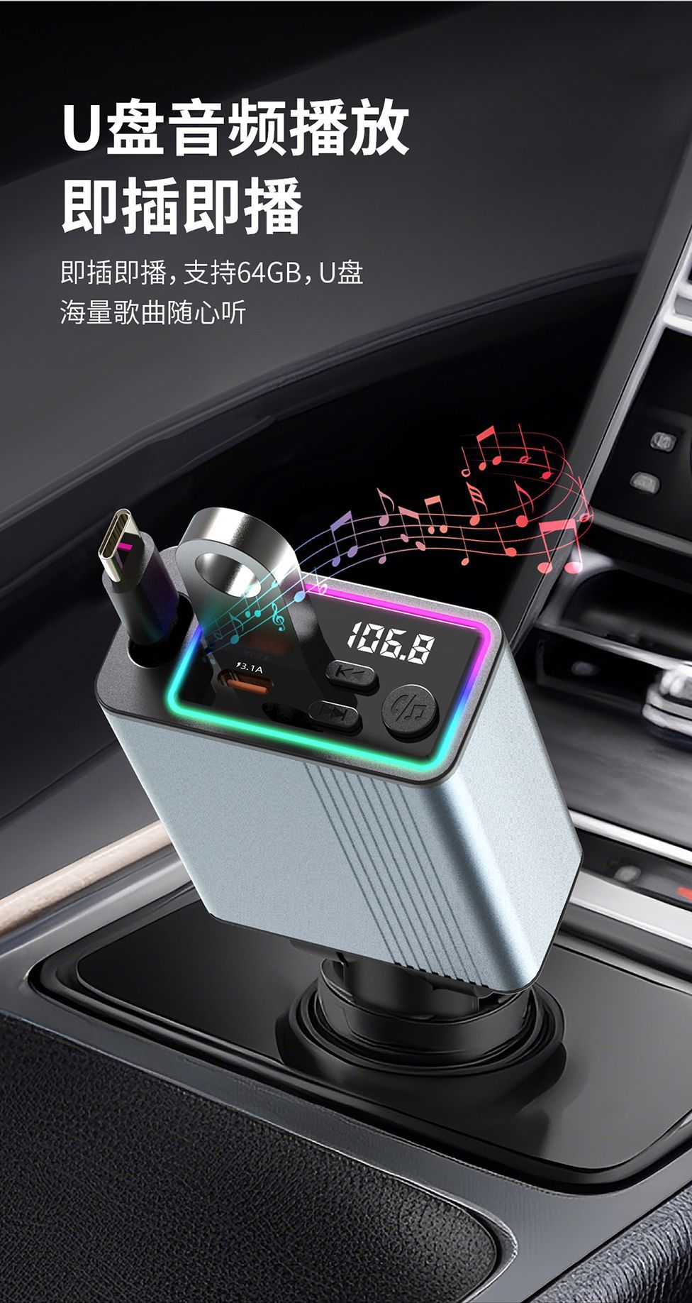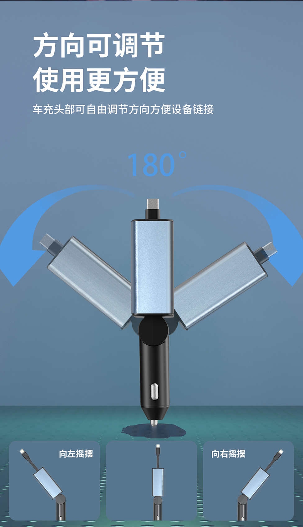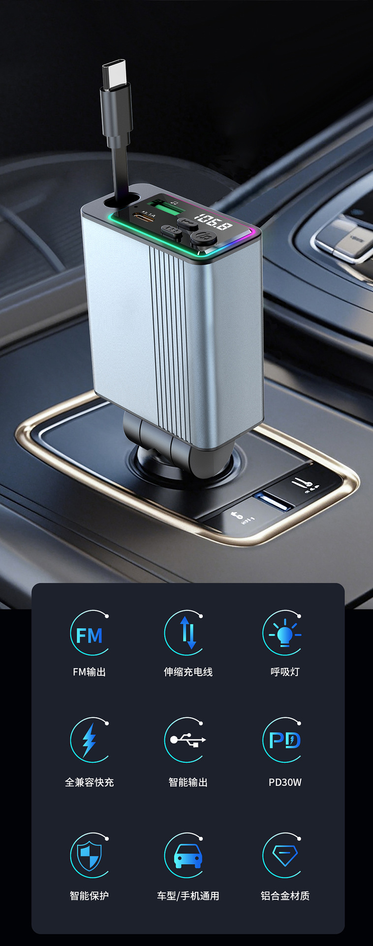 45W car charger car 3-in-1 with retractable cord, mobile phone interface cigarette lighter, Kaiweidi fast charging