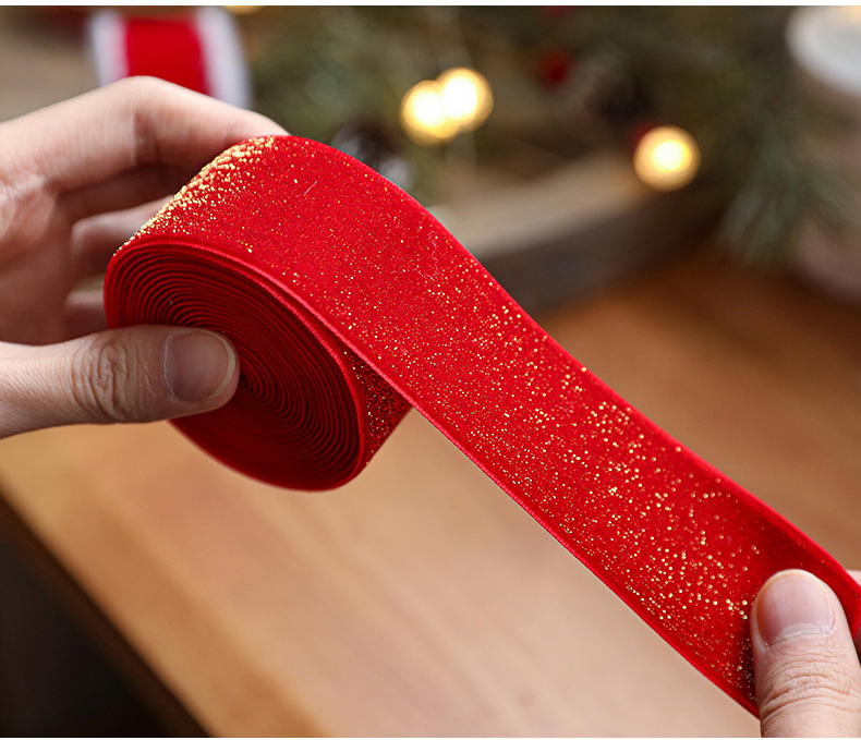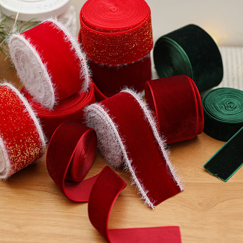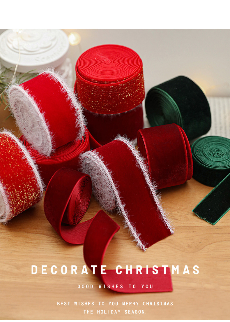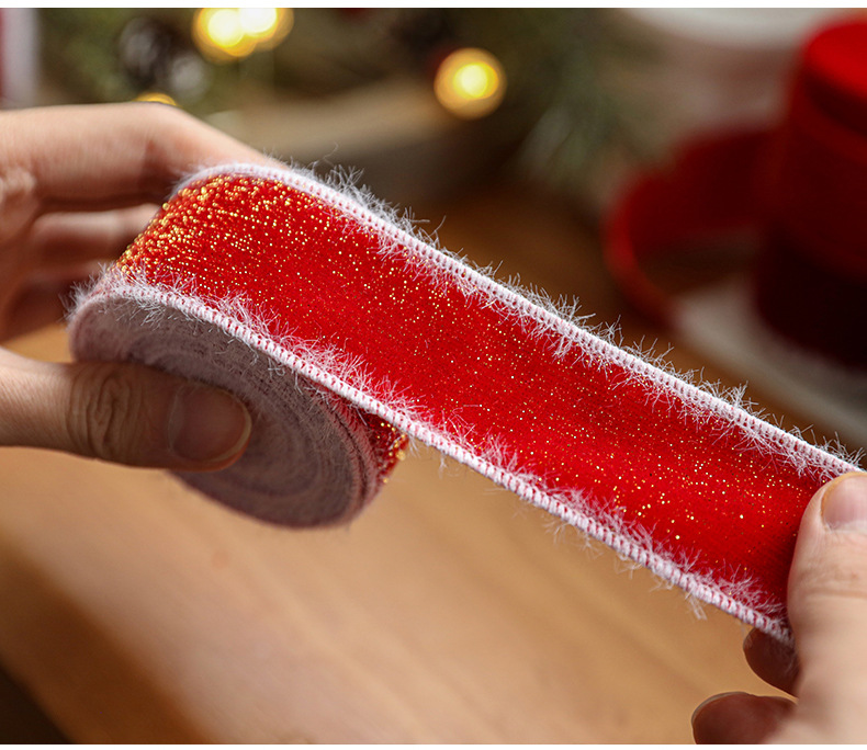 New Red Fleece Christmas Webbing Ribbon White Lock Hem Handmade Bow Gift Wrapping with Ambiance Supplies
