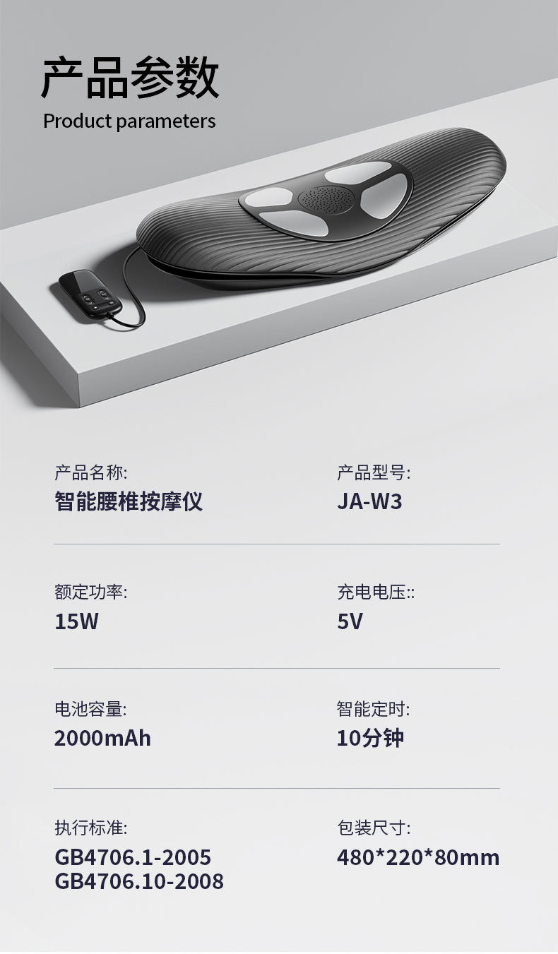 Lumbar spine massager, EMS, lumbar traction, red light irradiation, hot compress, waist physiotherapy device, intelligent lumbar massager