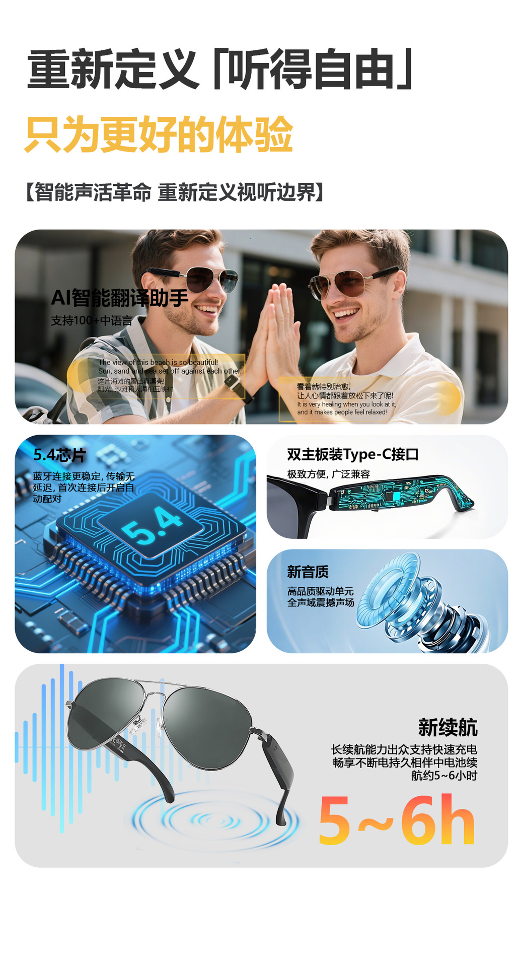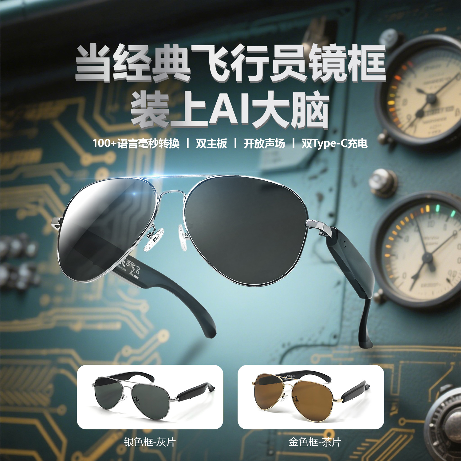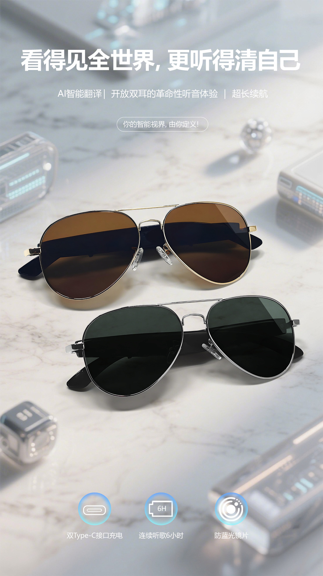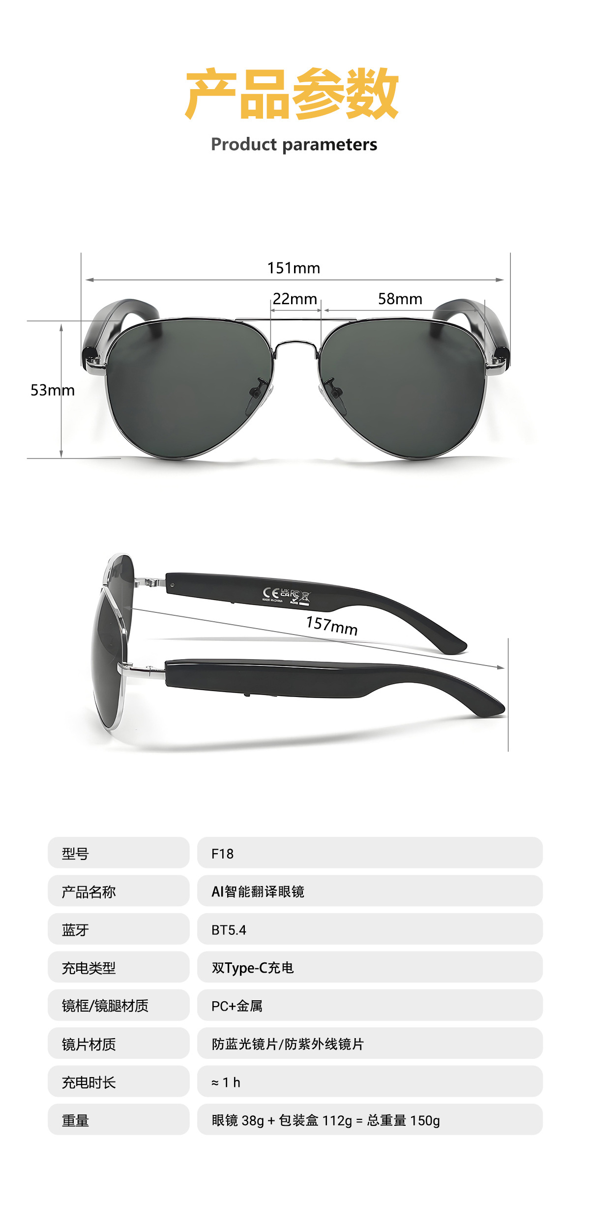 F18 new AI translation Bluetooth glasses, more than 100 languages real-time translation glasses, listening to songs and calls, smart glasses