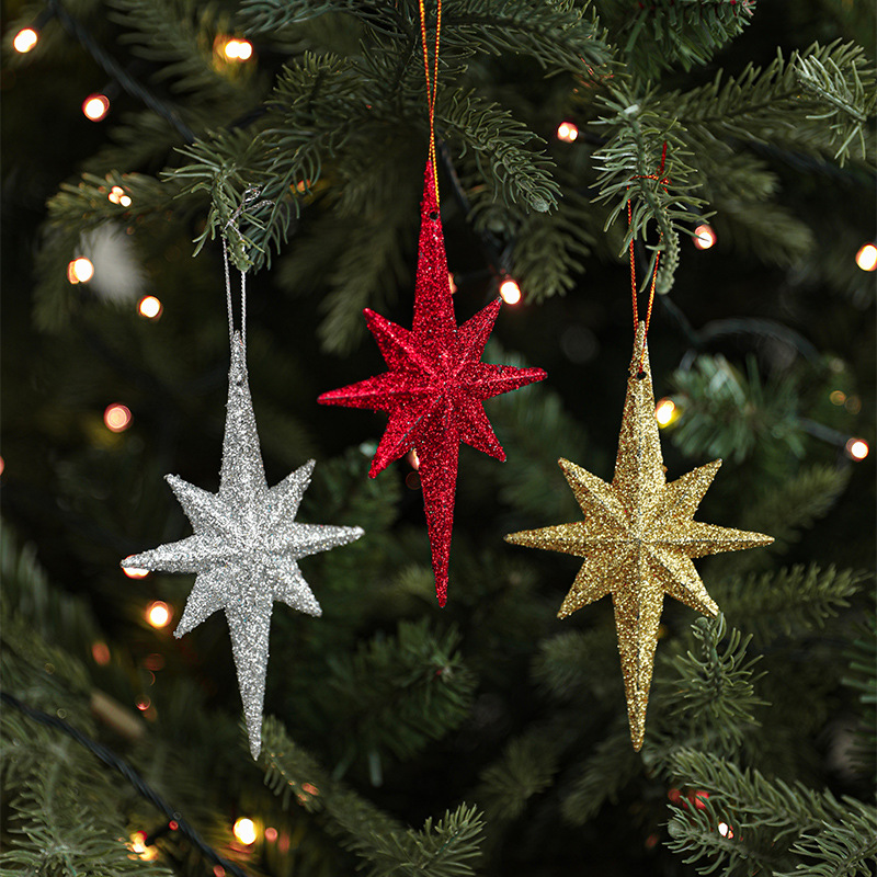 Sticky powder explosive star pendant, special-shaped octagonal star star Christmas tree ornament, door hanging charm, Christmas decoration