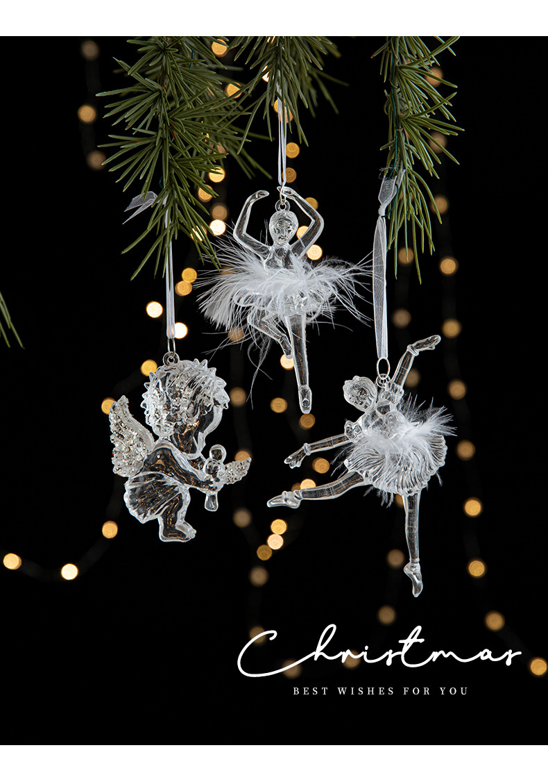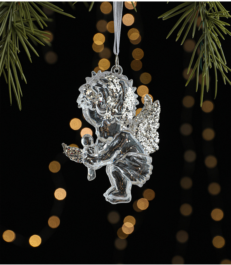 Christmas ice crystal pendant, Christmas tree pendant, transparent acrylic, angel, light luxury decoration, scene decoration props