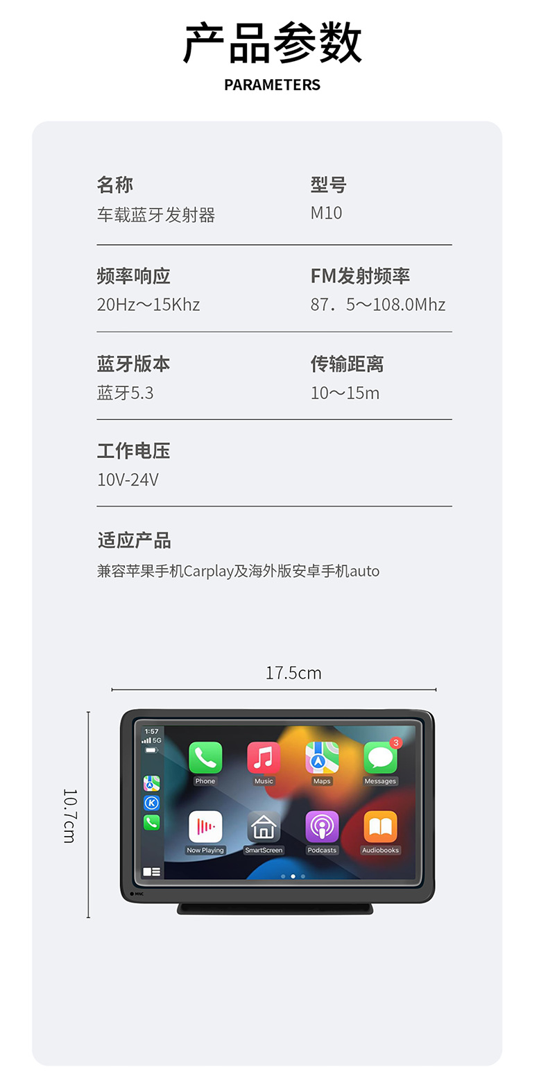 7-inch carplay convenient screen wireless and wired Bluetooth FM transmit high-definition reversing image