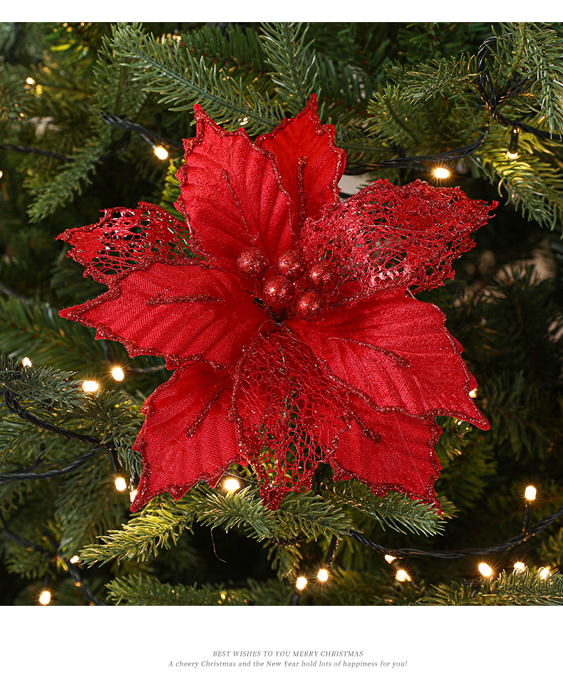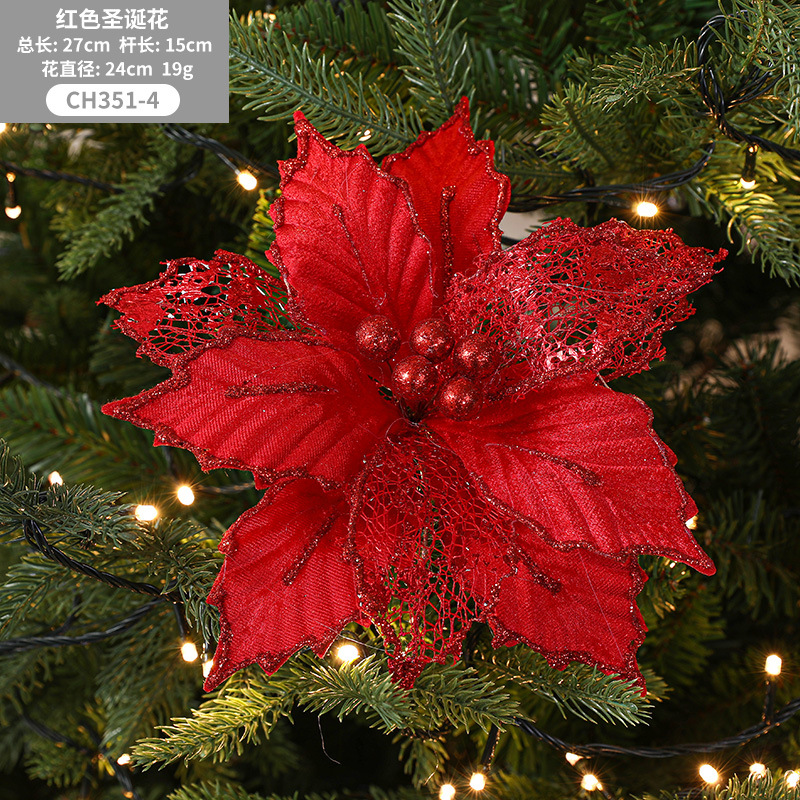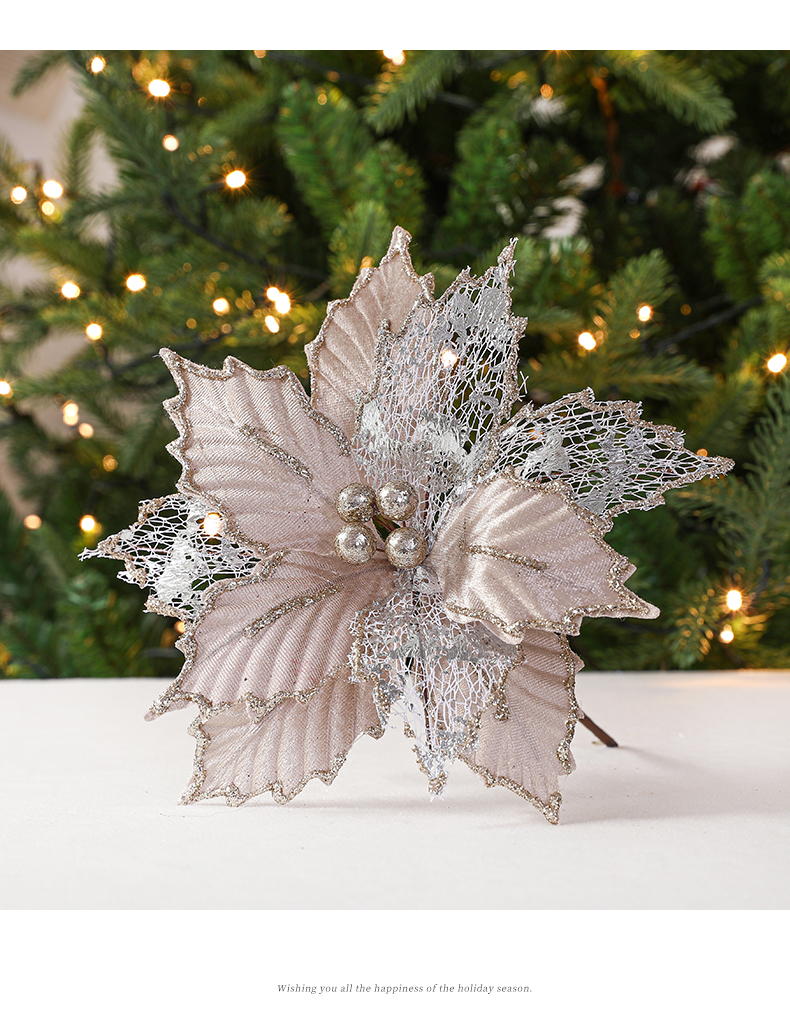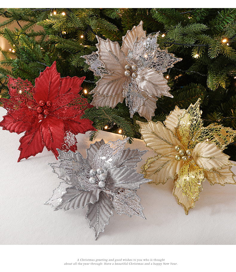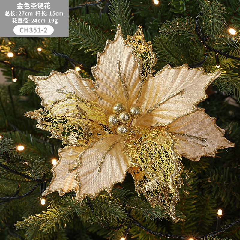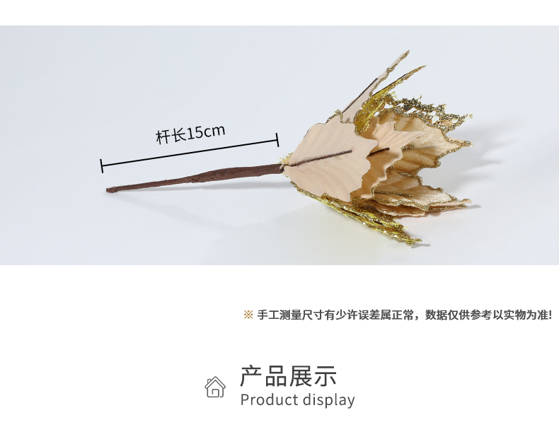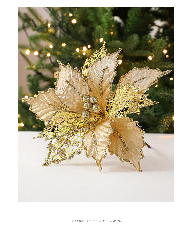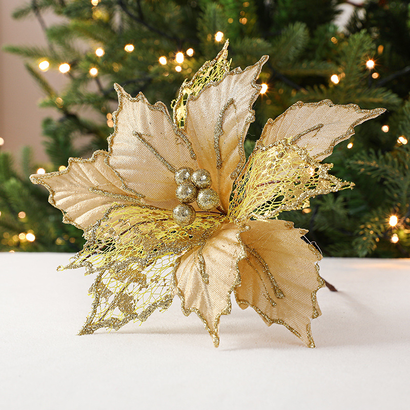 Christmas 24cm Golden Red Champagne Color Simulated Christmas Flower Mixed Leaf Handmade Maple Leaf Type Decorative Flower