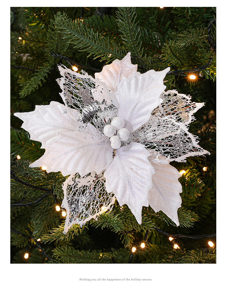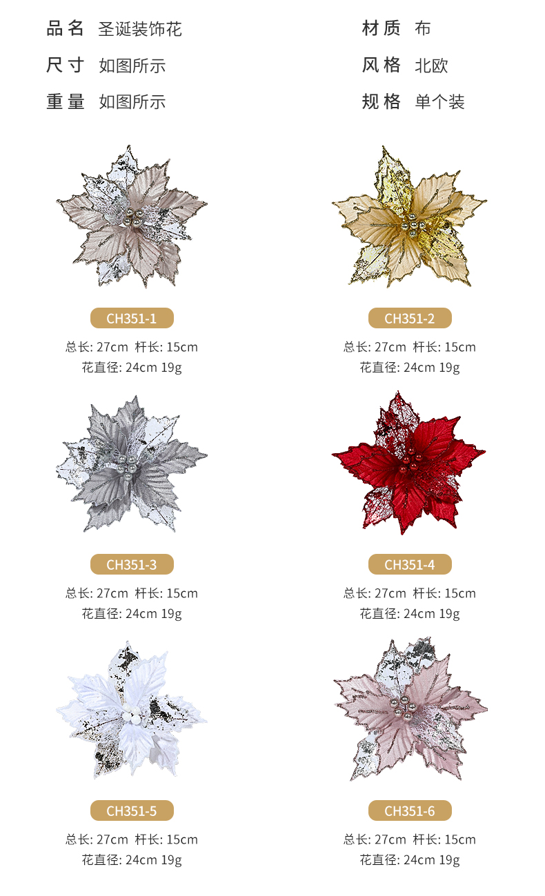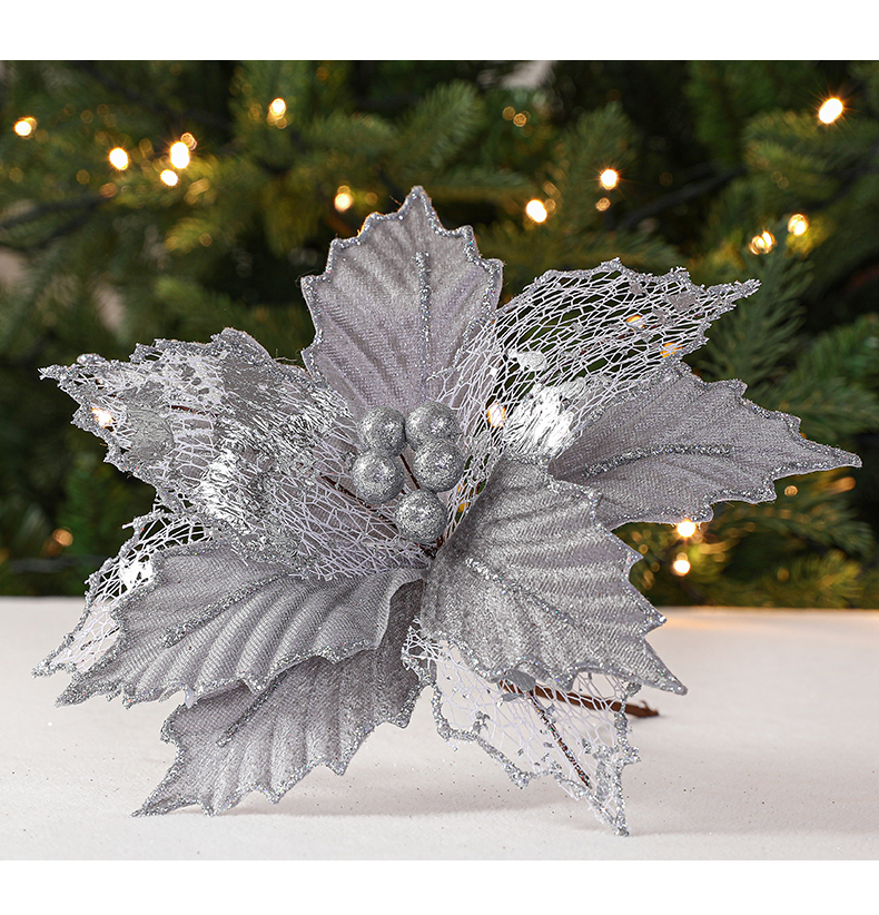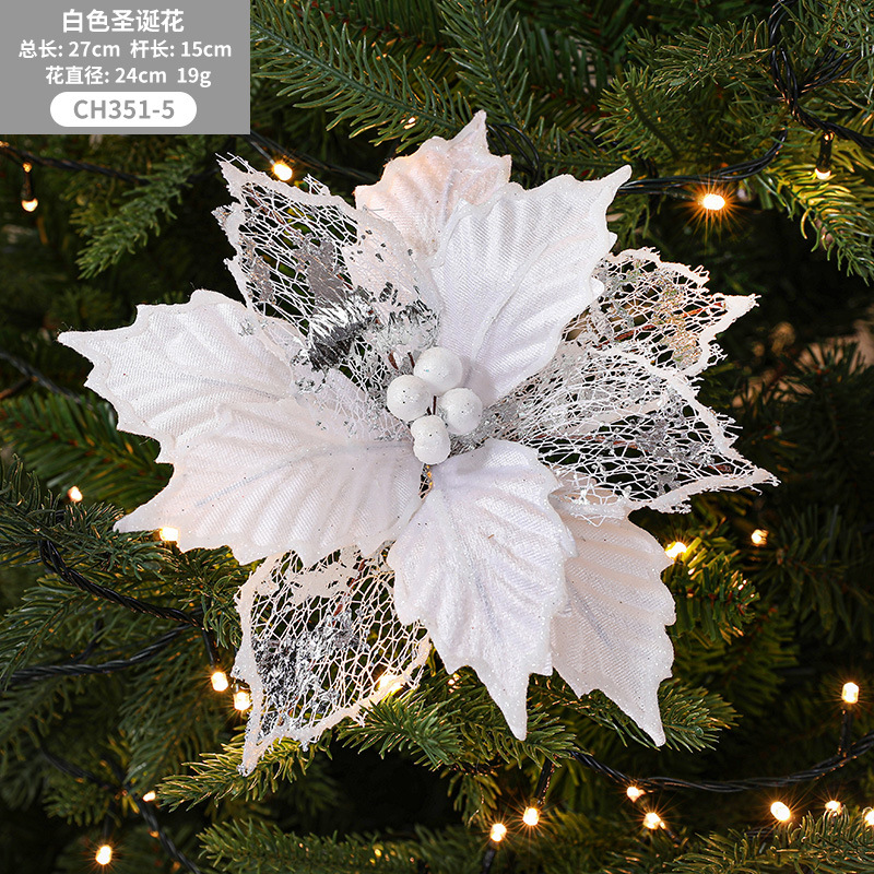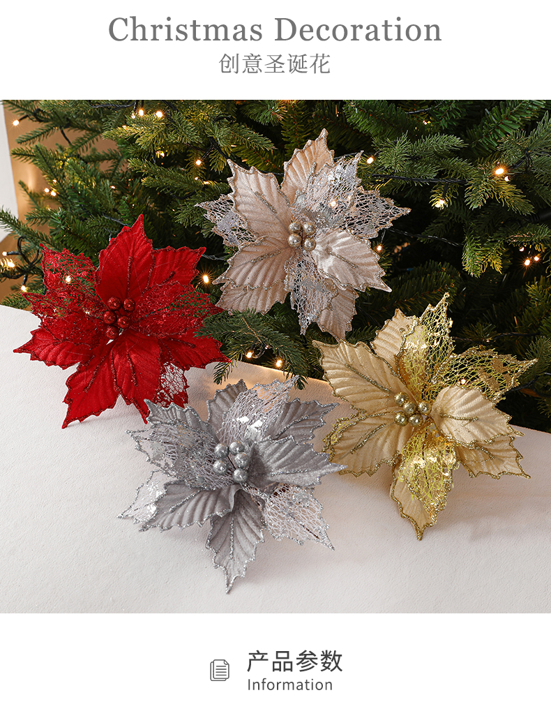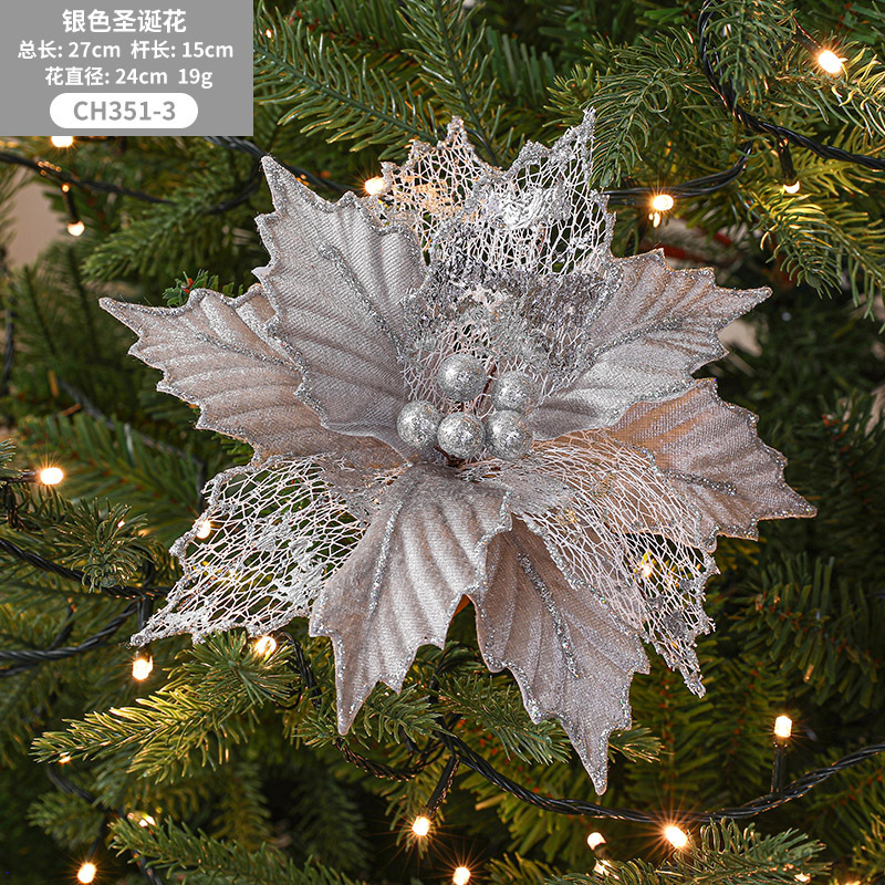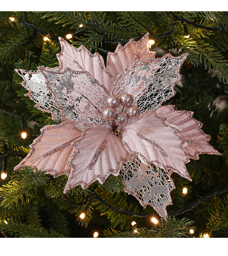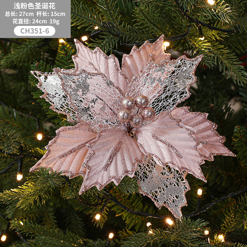 Christmas 24cm Golden Red Champagne Color Simulated Christmas Flower Mixed Leaf Handmade Maple Leaf Type Decorative Flower