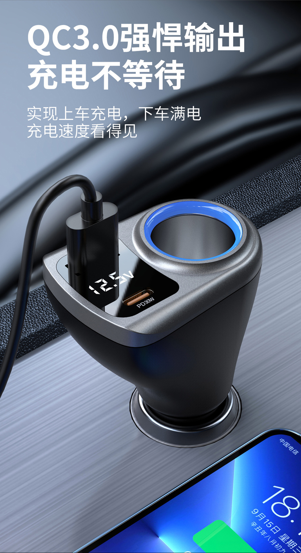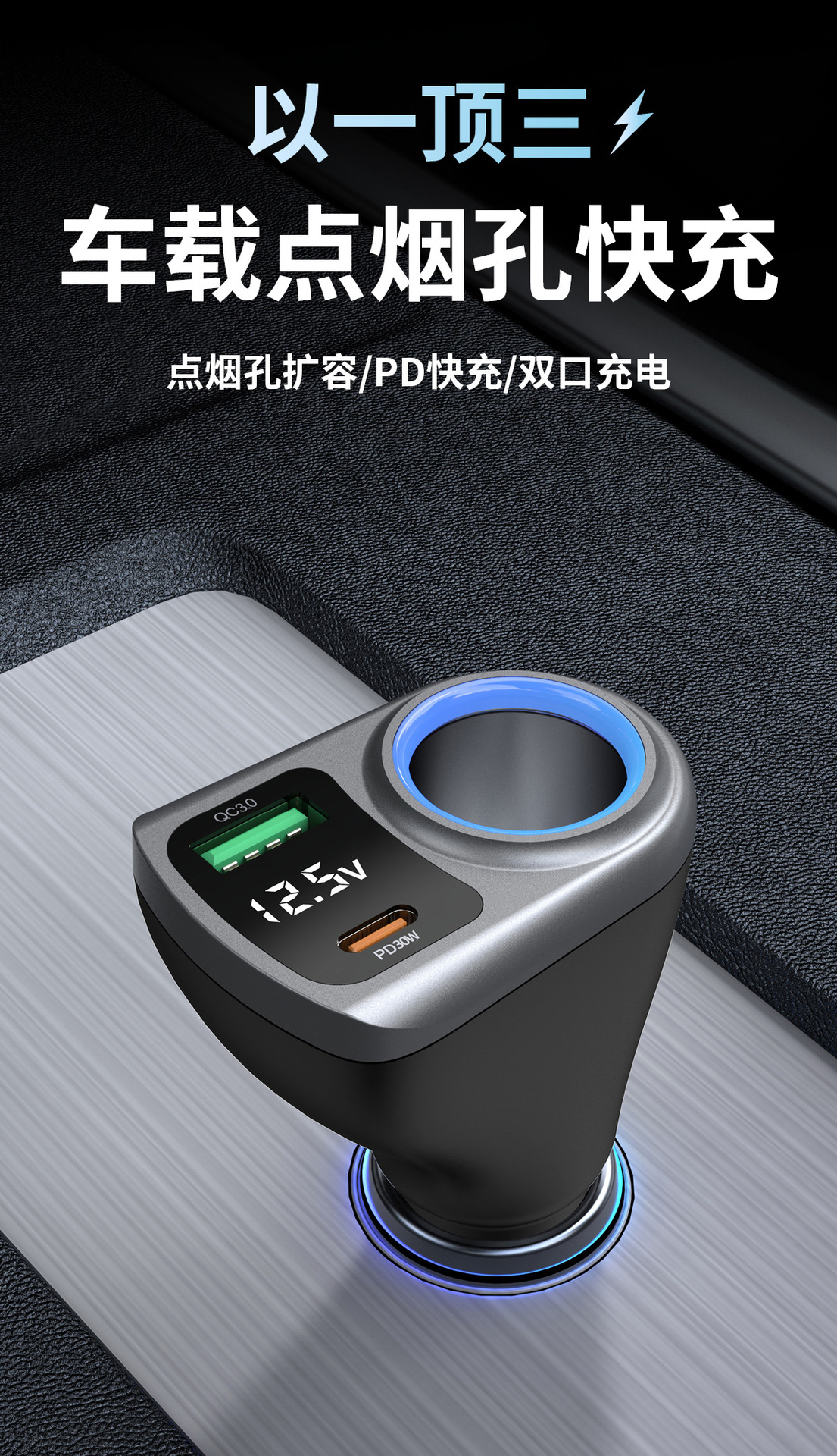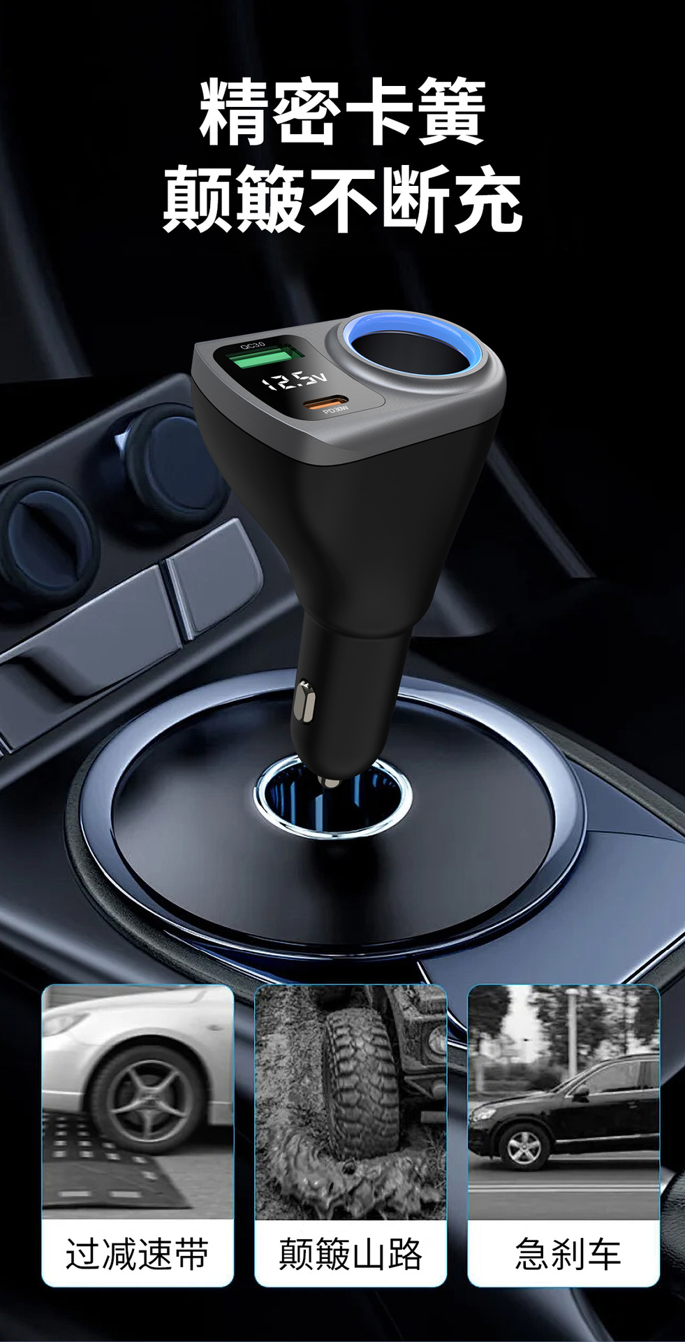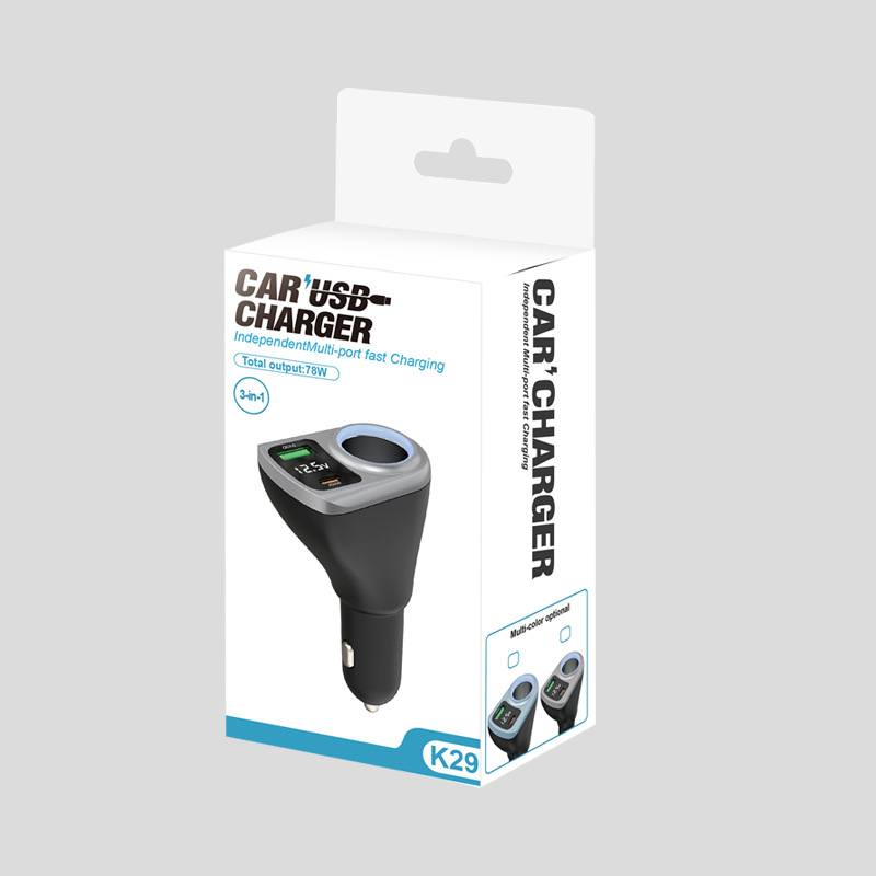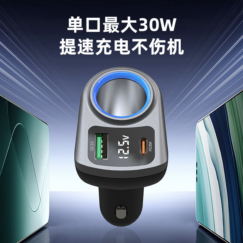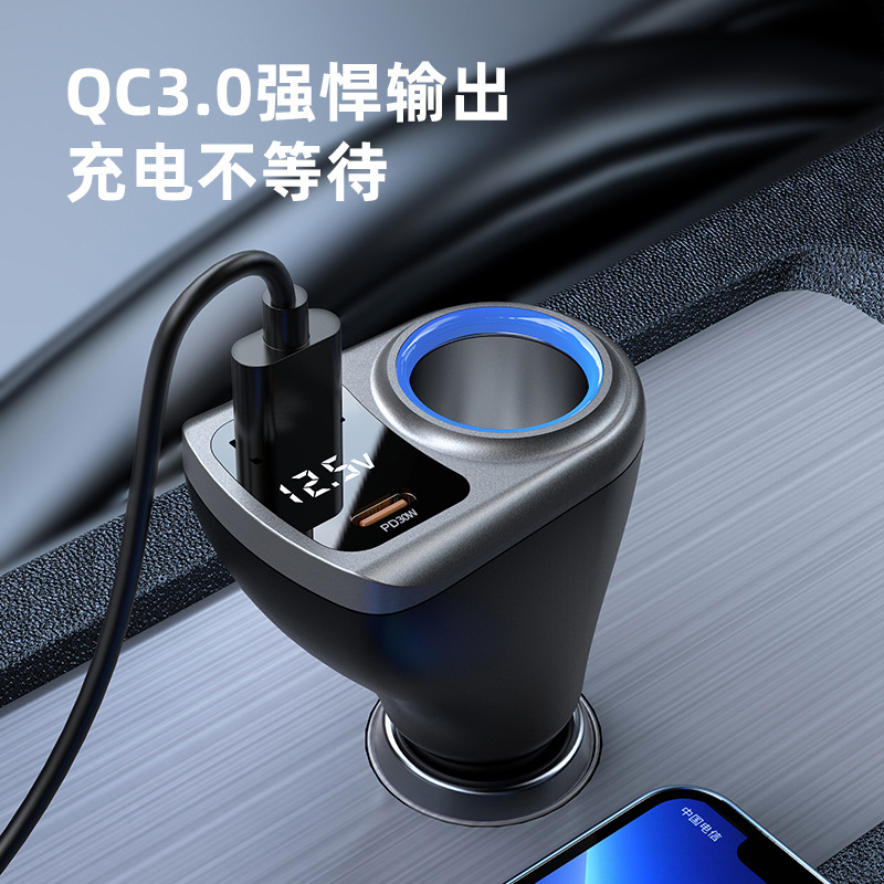 Expandable car charger, super fast charging, digital display, one drag, three cigarette lighters, plug conversion plug, fast socket charging