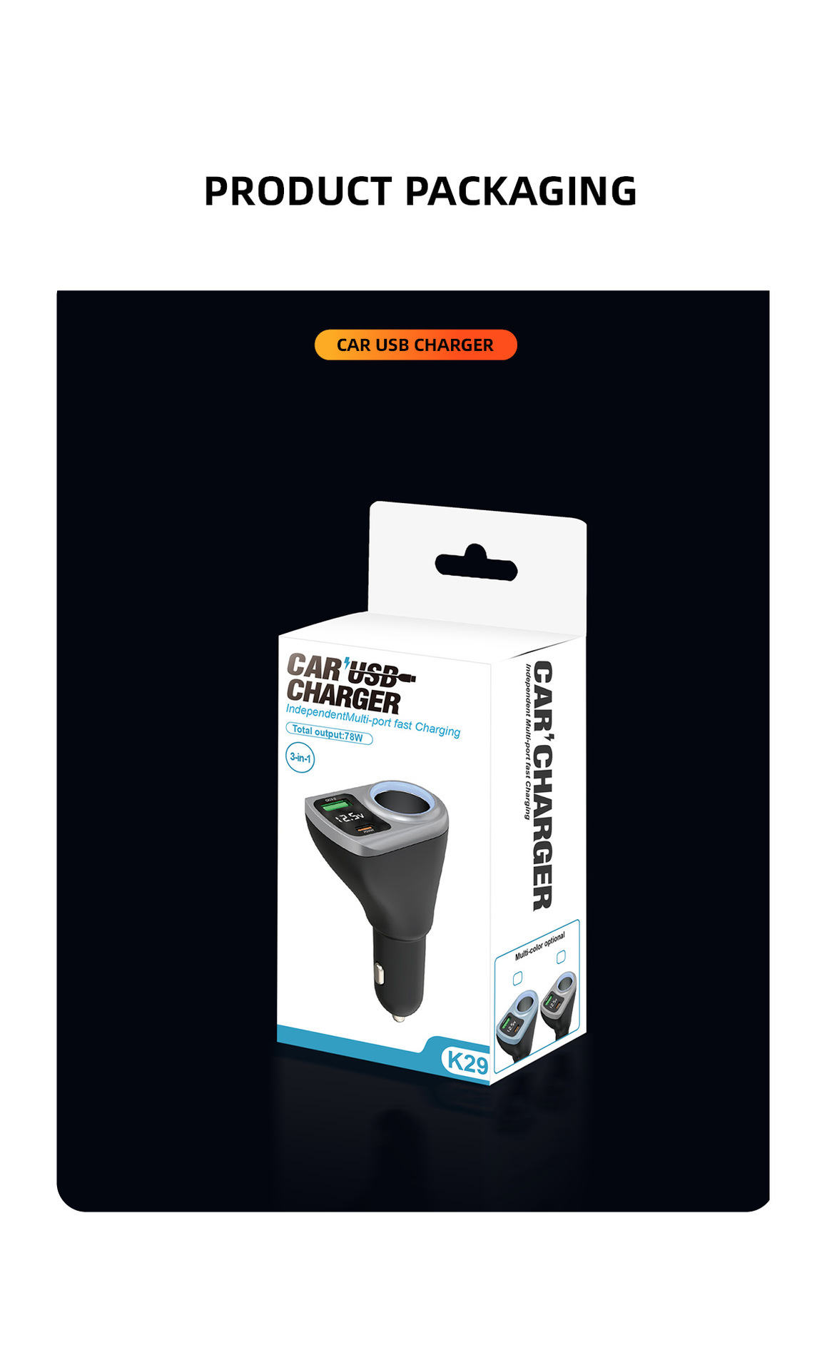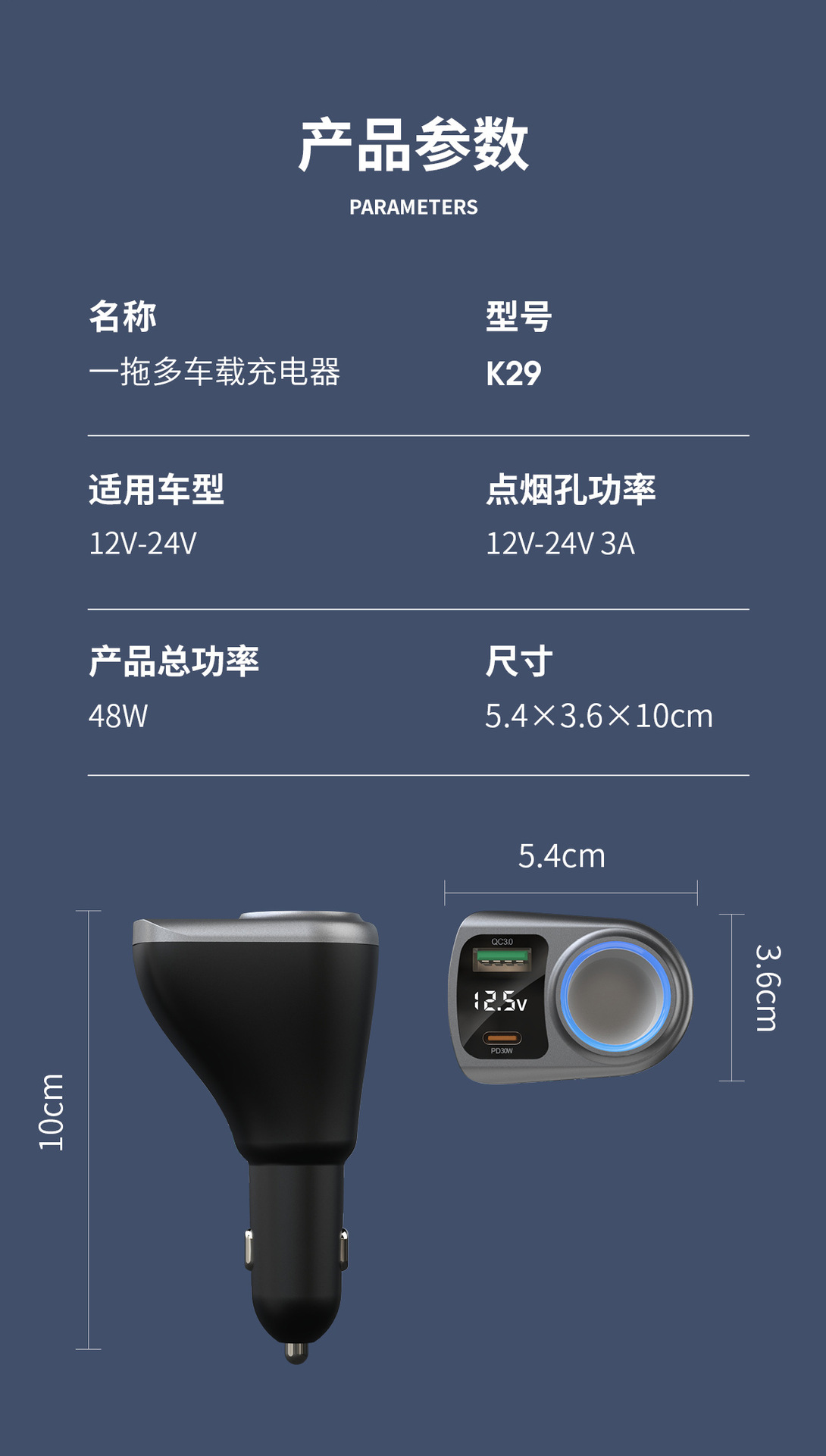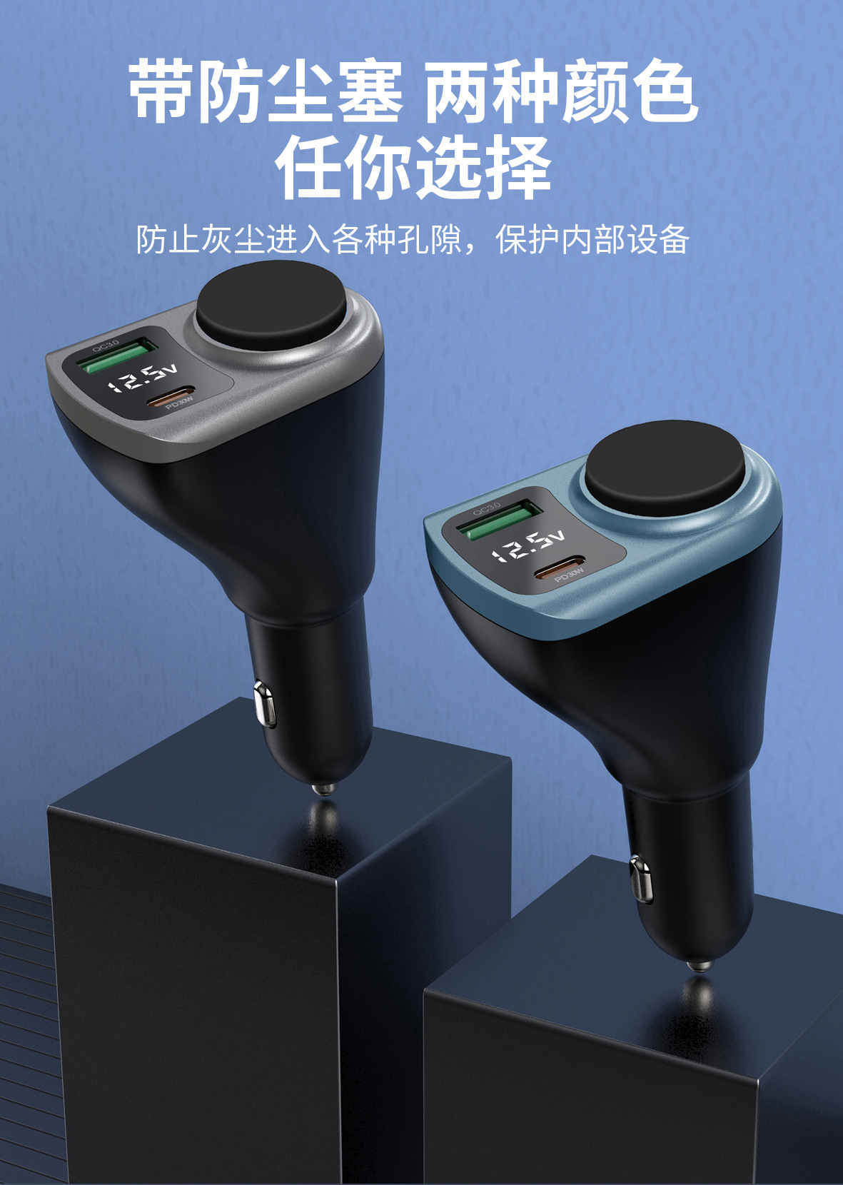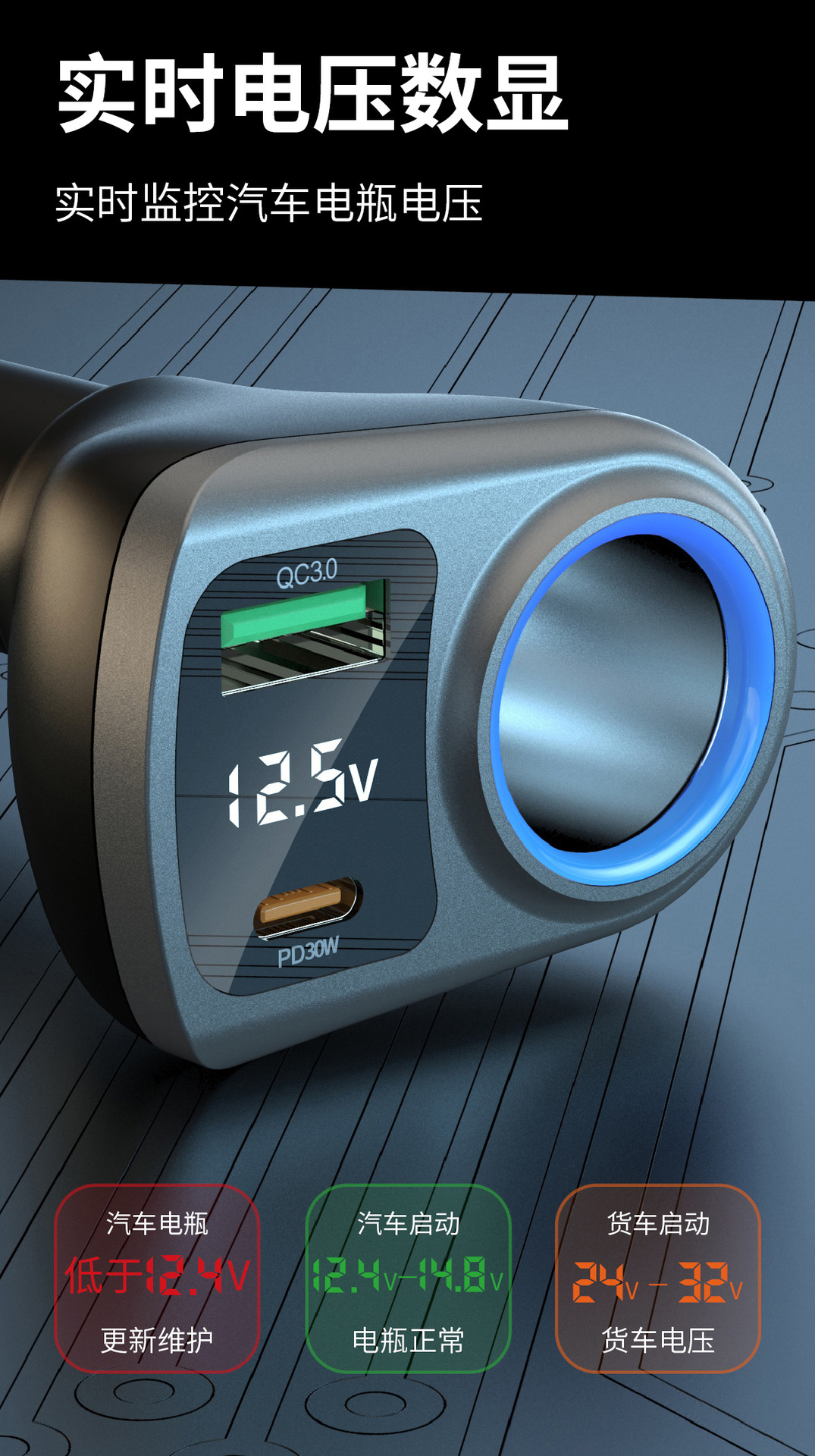 Expandable car charger, super fast charging, digital display, one drag, three cigarette lighters, plug conversion plug, fast socket charging