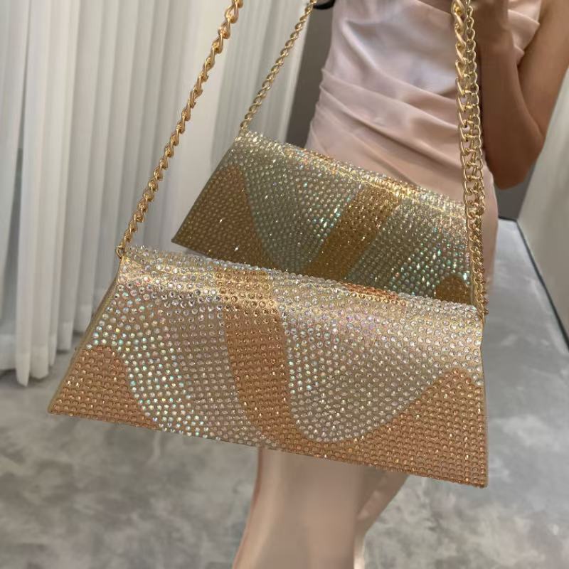 Cross-border new dinner bag rhinestone bag European and American women's chain bag high-end magnetic buckle handbag evening bag