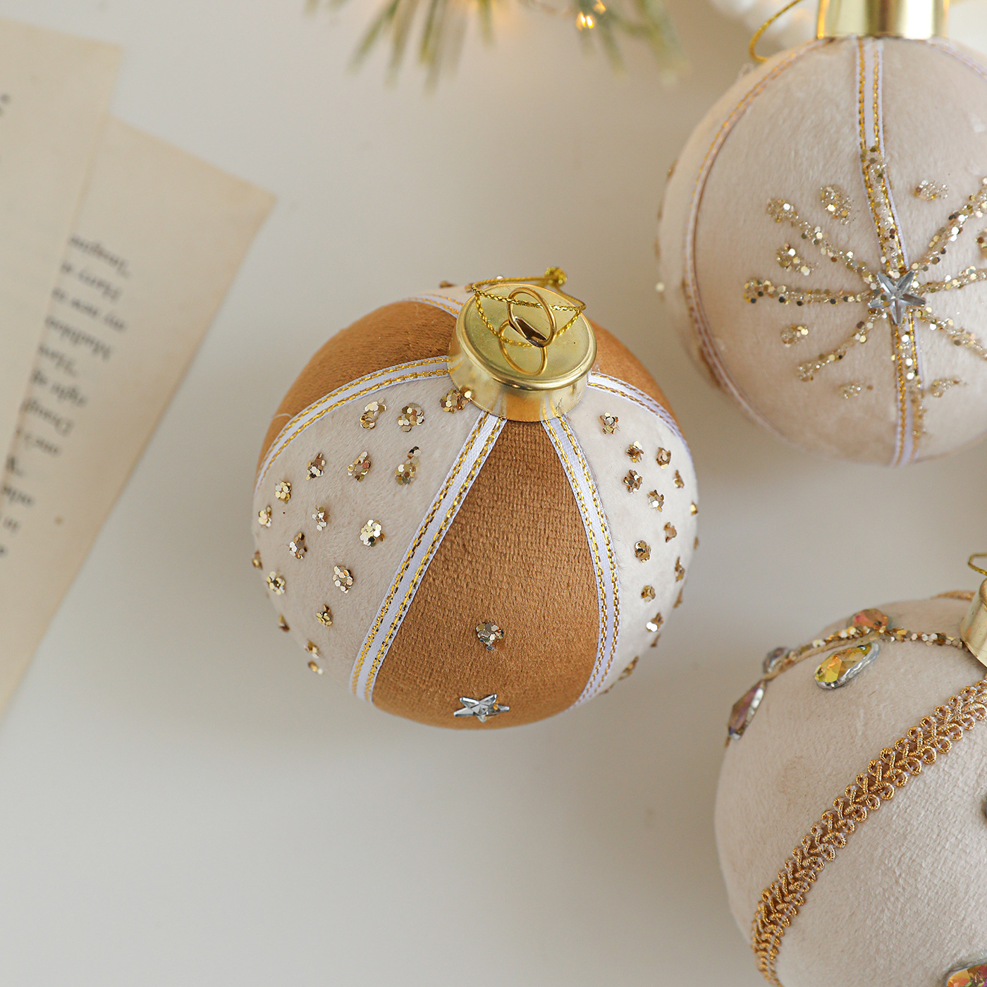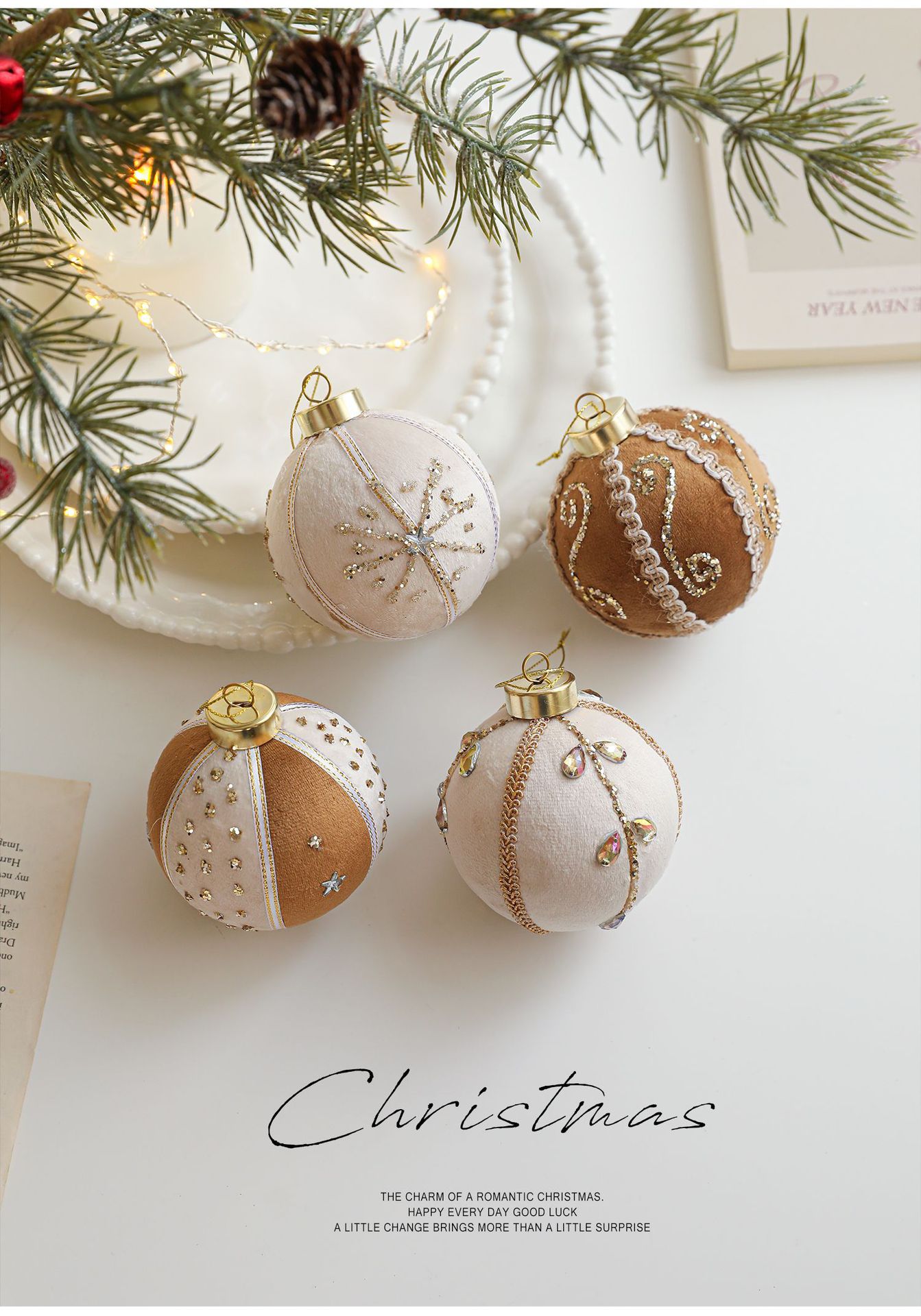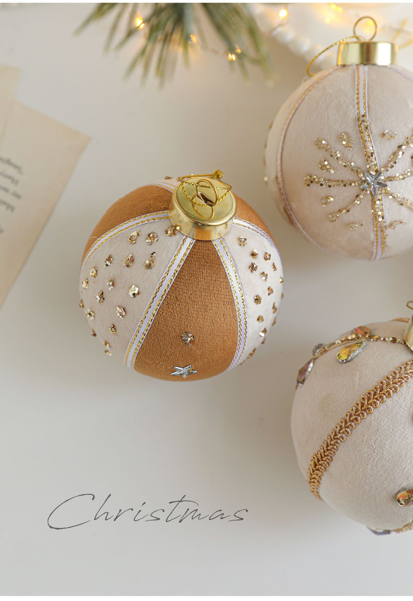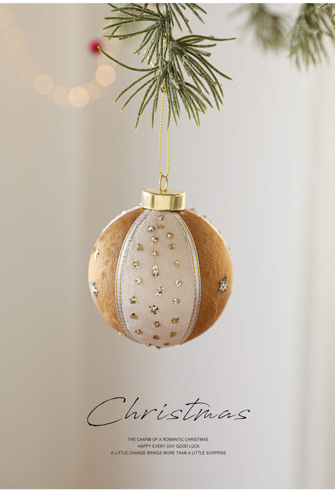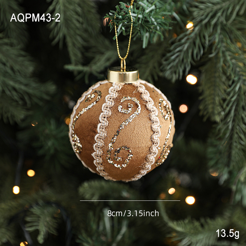 8CM coffee color patch ball, foam ball, sticky powder, gold powder, high-end fabric Christmas tree ornament, decoration, hanging ball decoration