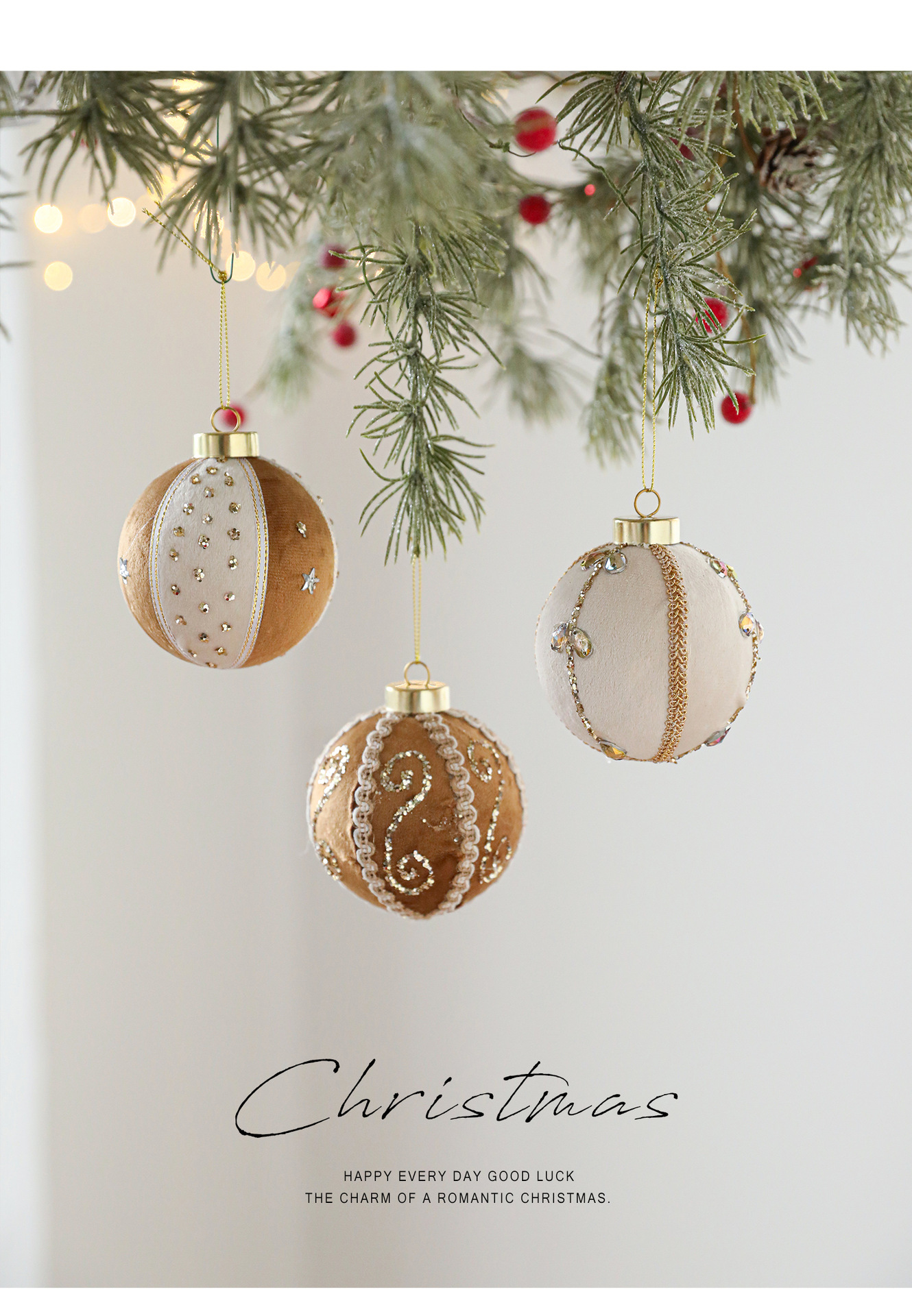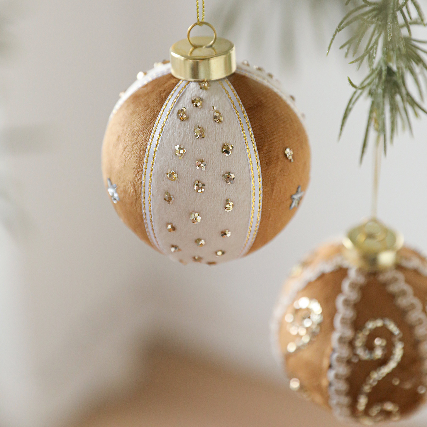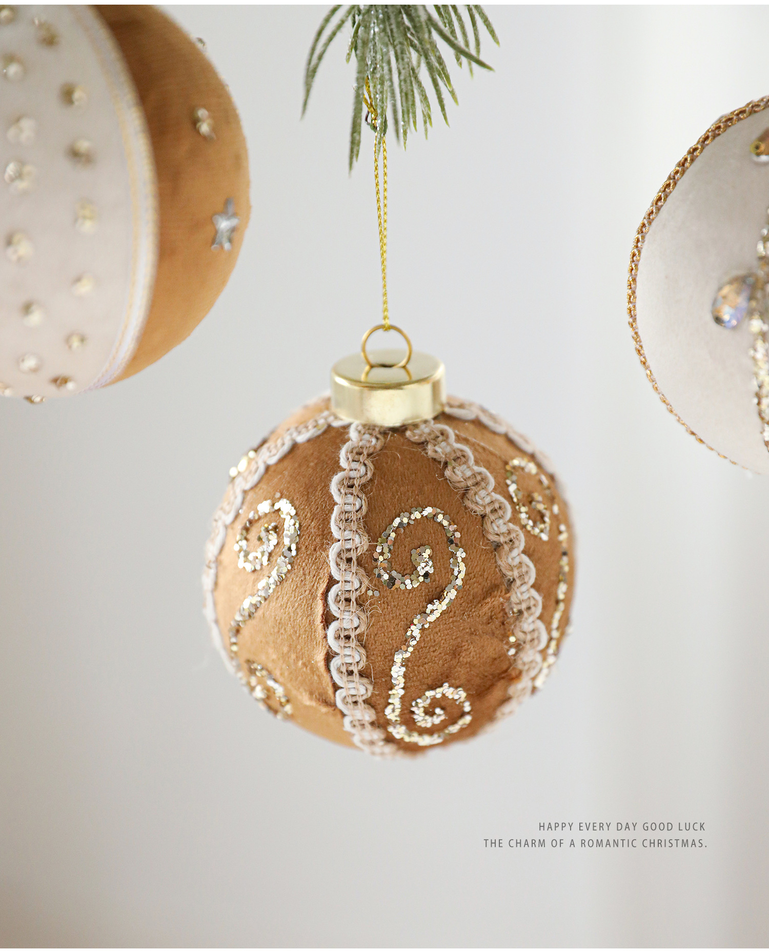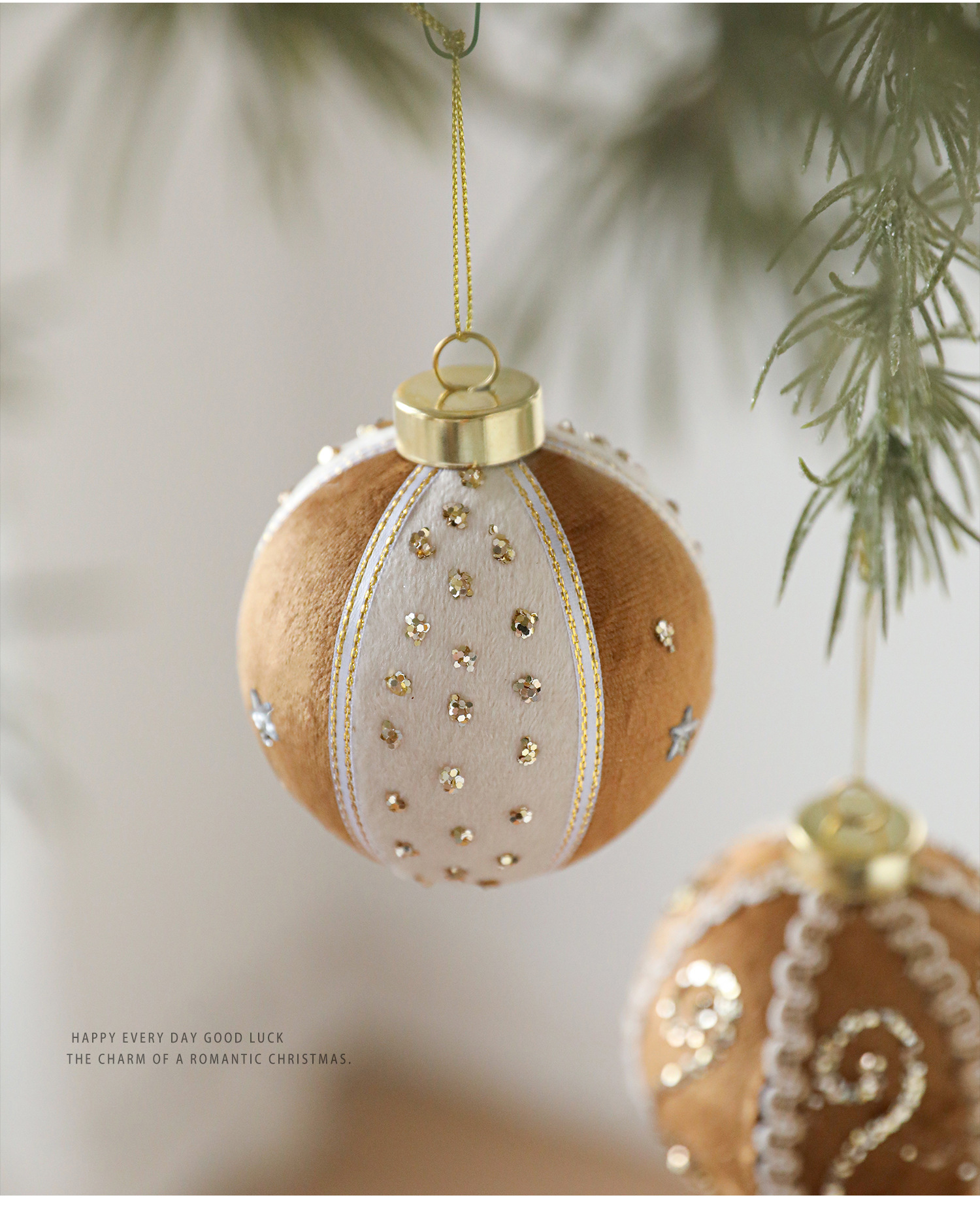 8CM coffee color patch ball, foam ball, sticky powder, gold powder, high-end fabric Christmas tree ornament, decoration, hanging ball decoration