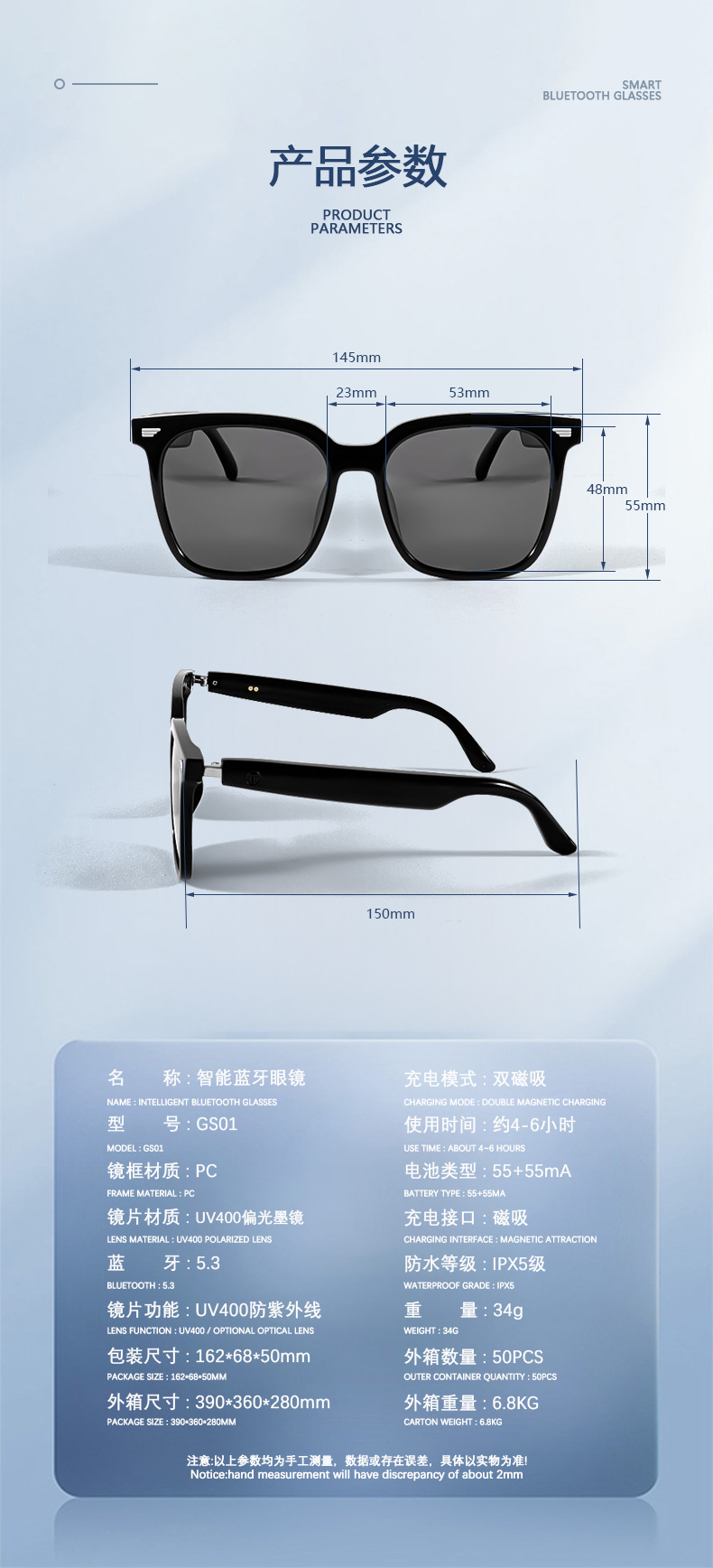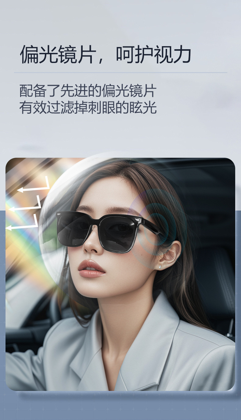 Cross-border smart Bluetooth glasses, listening to songs, calls, driving navigation, anti-ultraviolet polarized lenses, comfortable sunglasses to wear