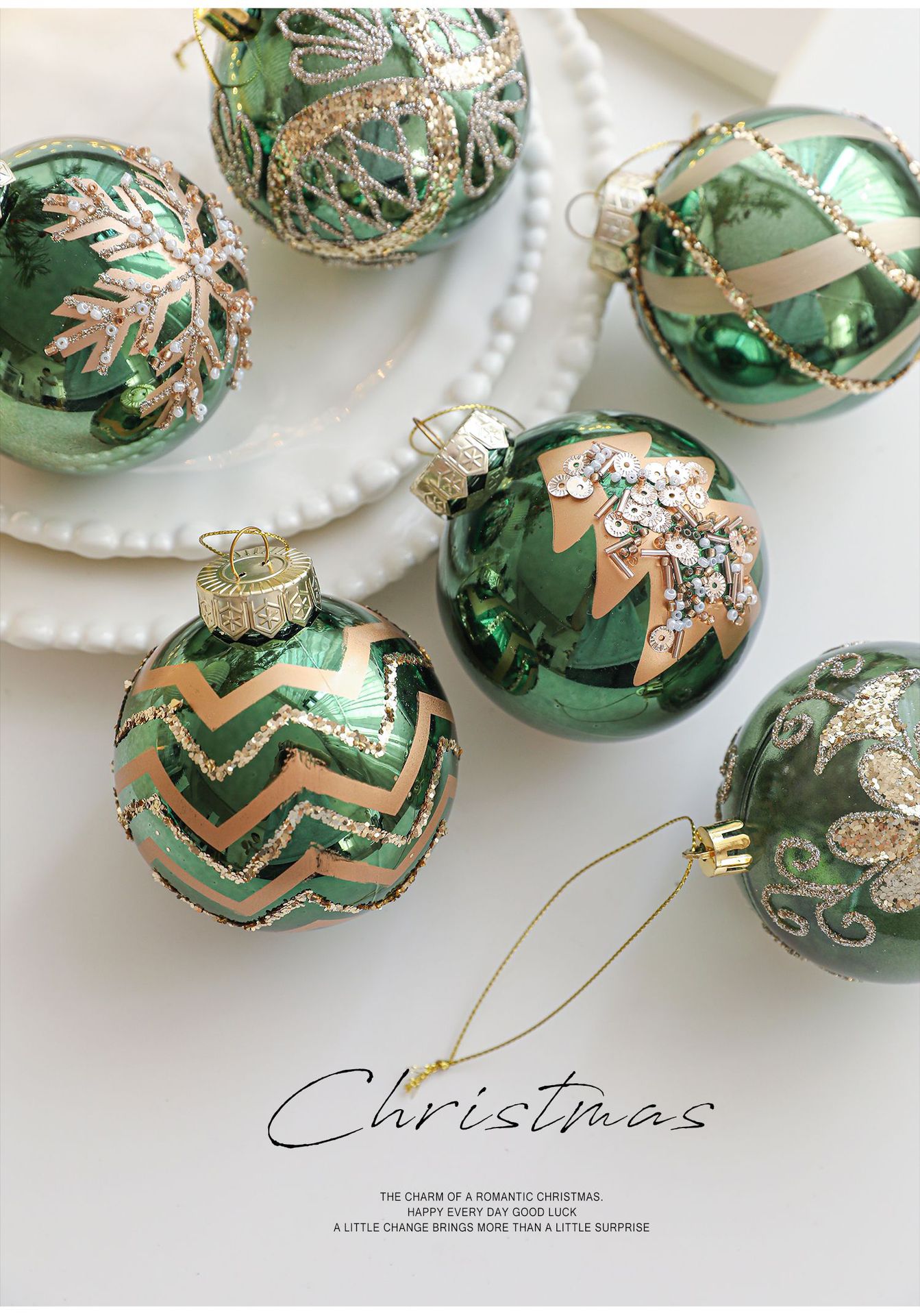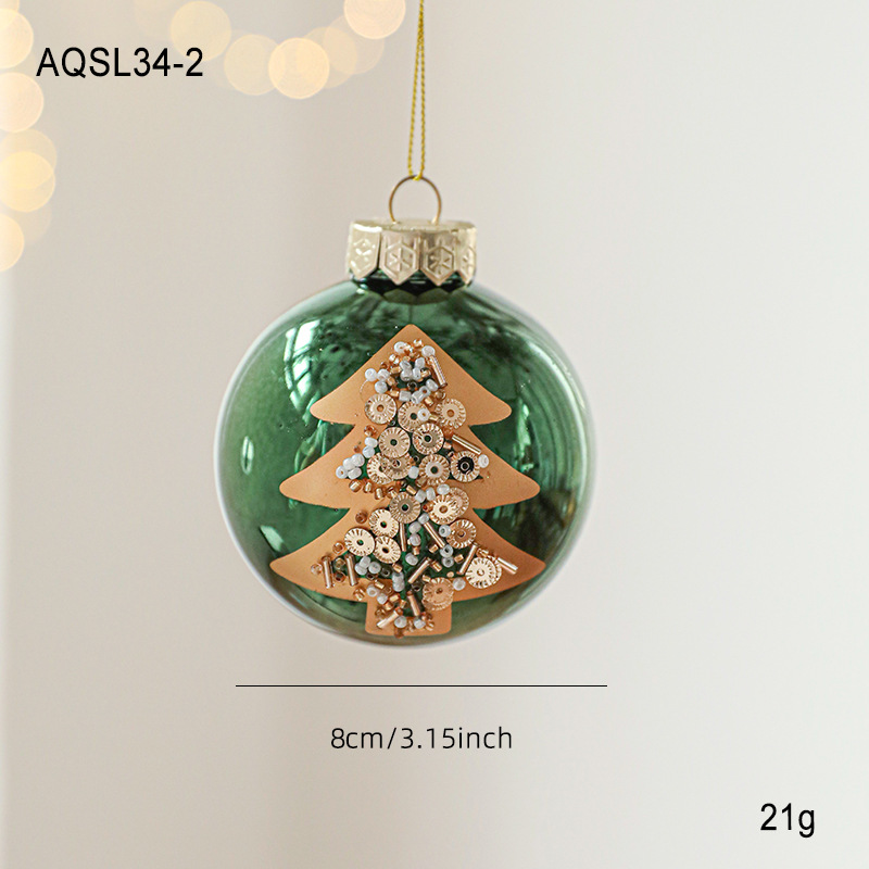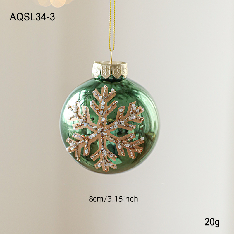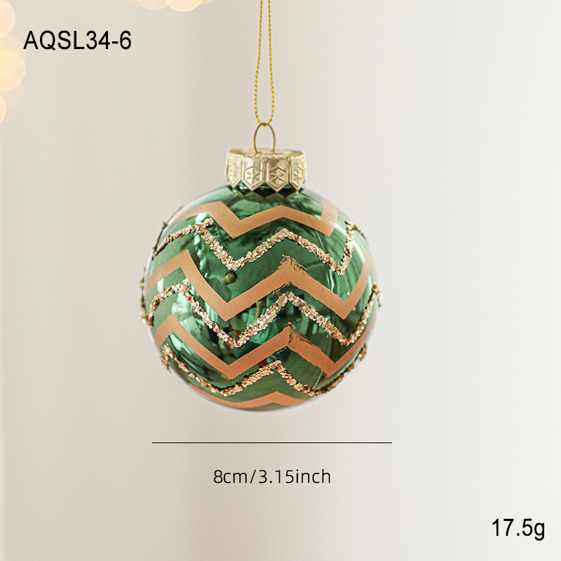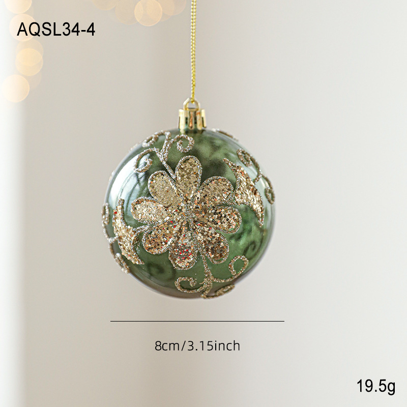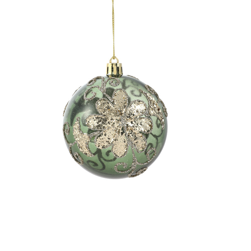 Green glossy Christmas ball sticky powder gold powder high-grade electroplating ball pearlescent hand-painted pattern Christmas tree decoration arrangement