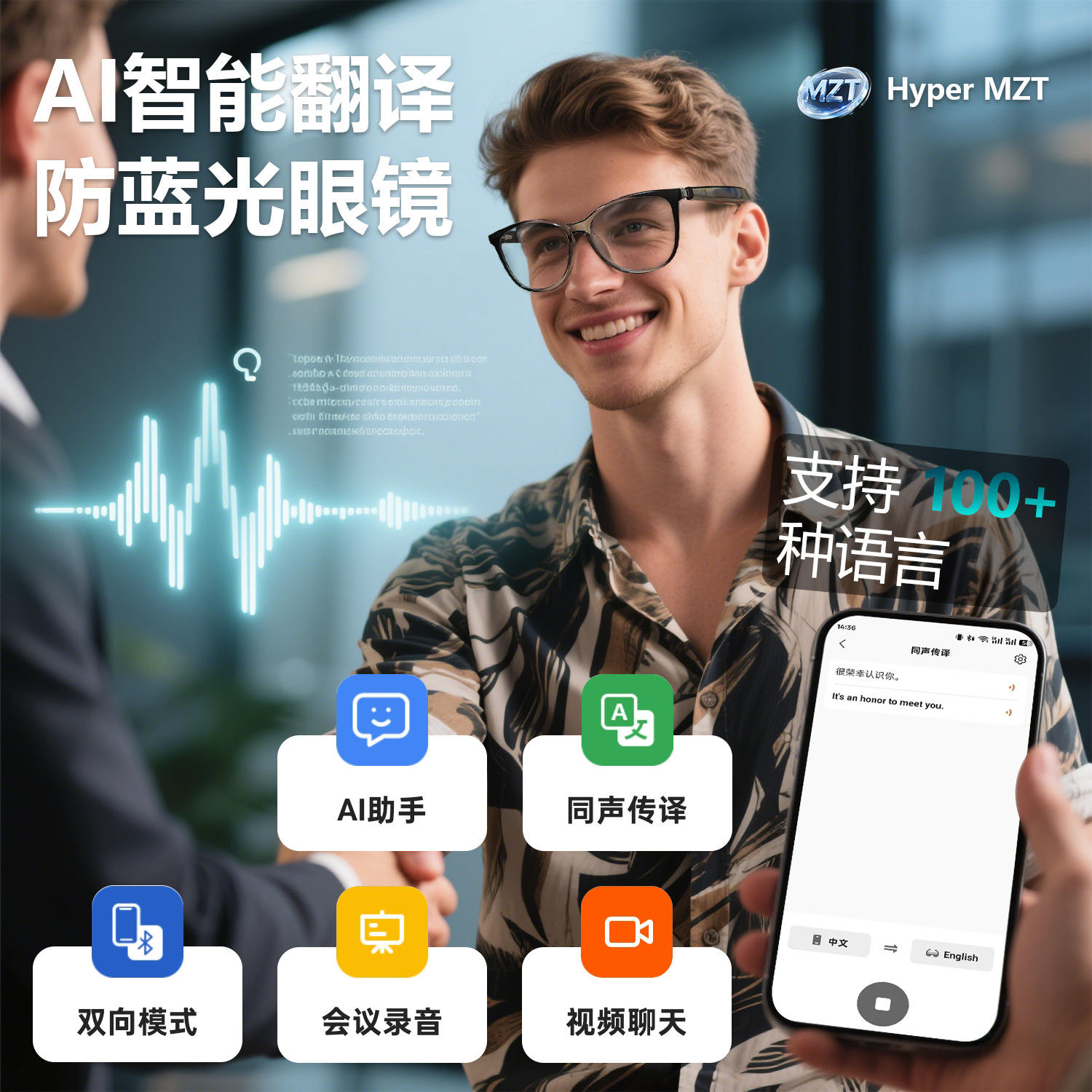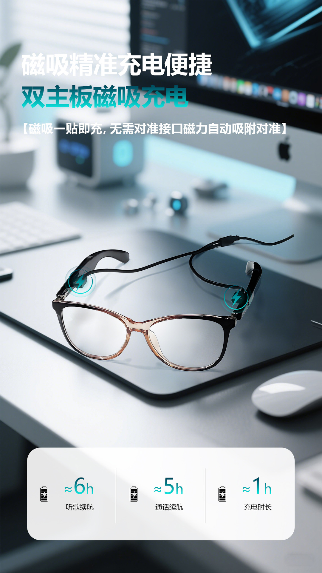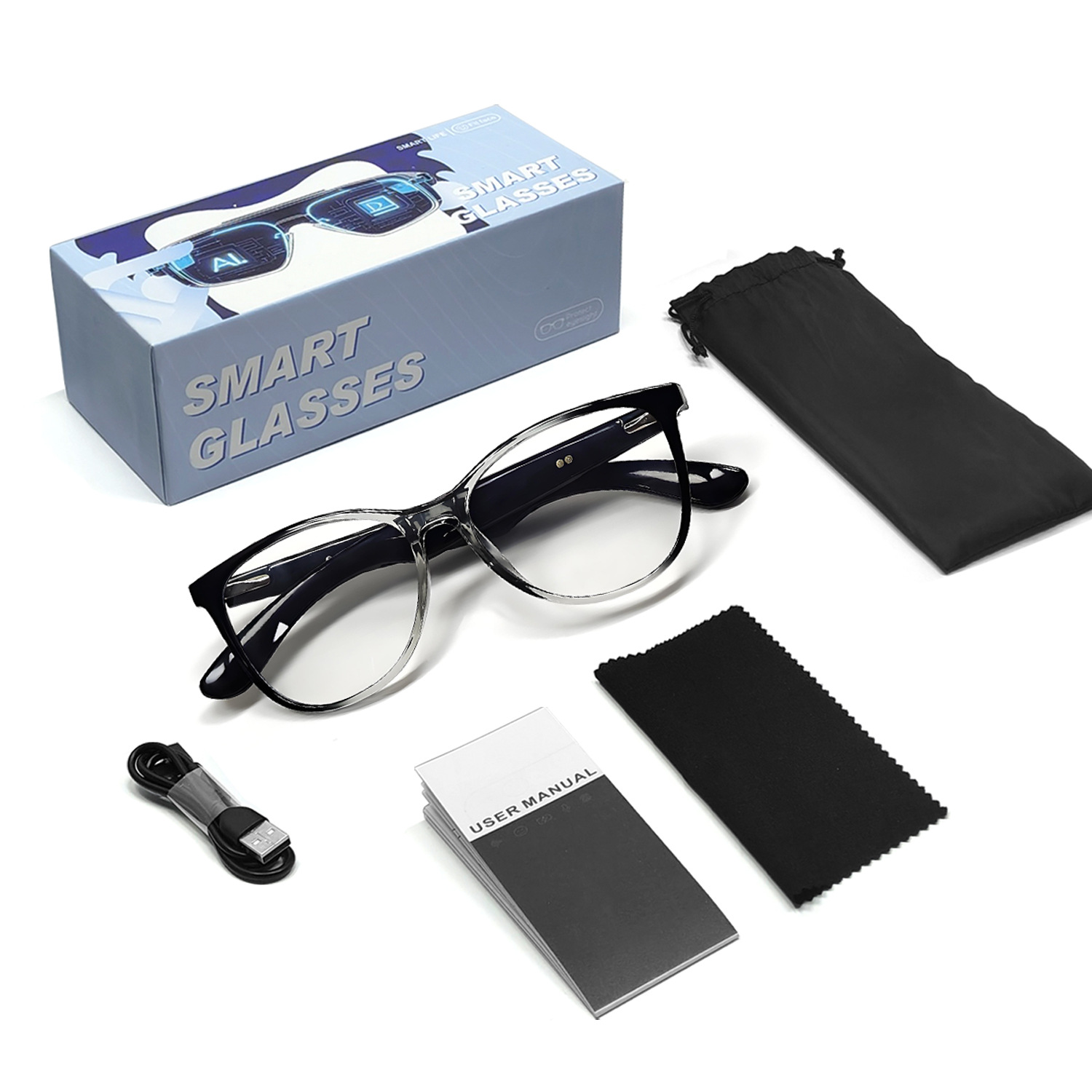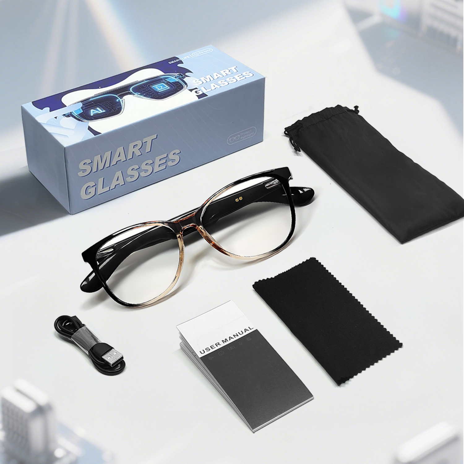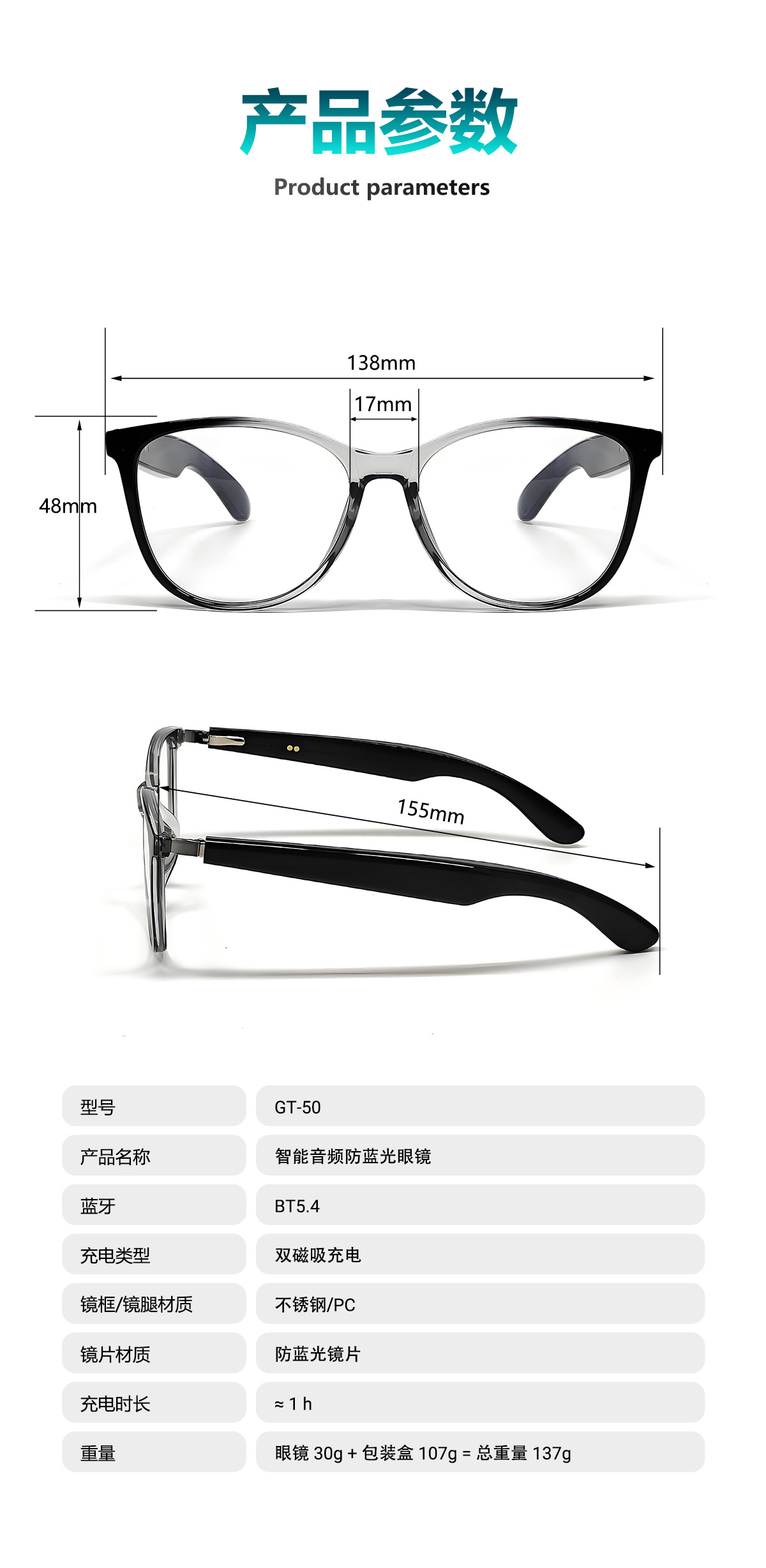 GT50 automatic on/off Bluetooth glasses metal spring hinge design AI smart glasses listening to songs and call glasses